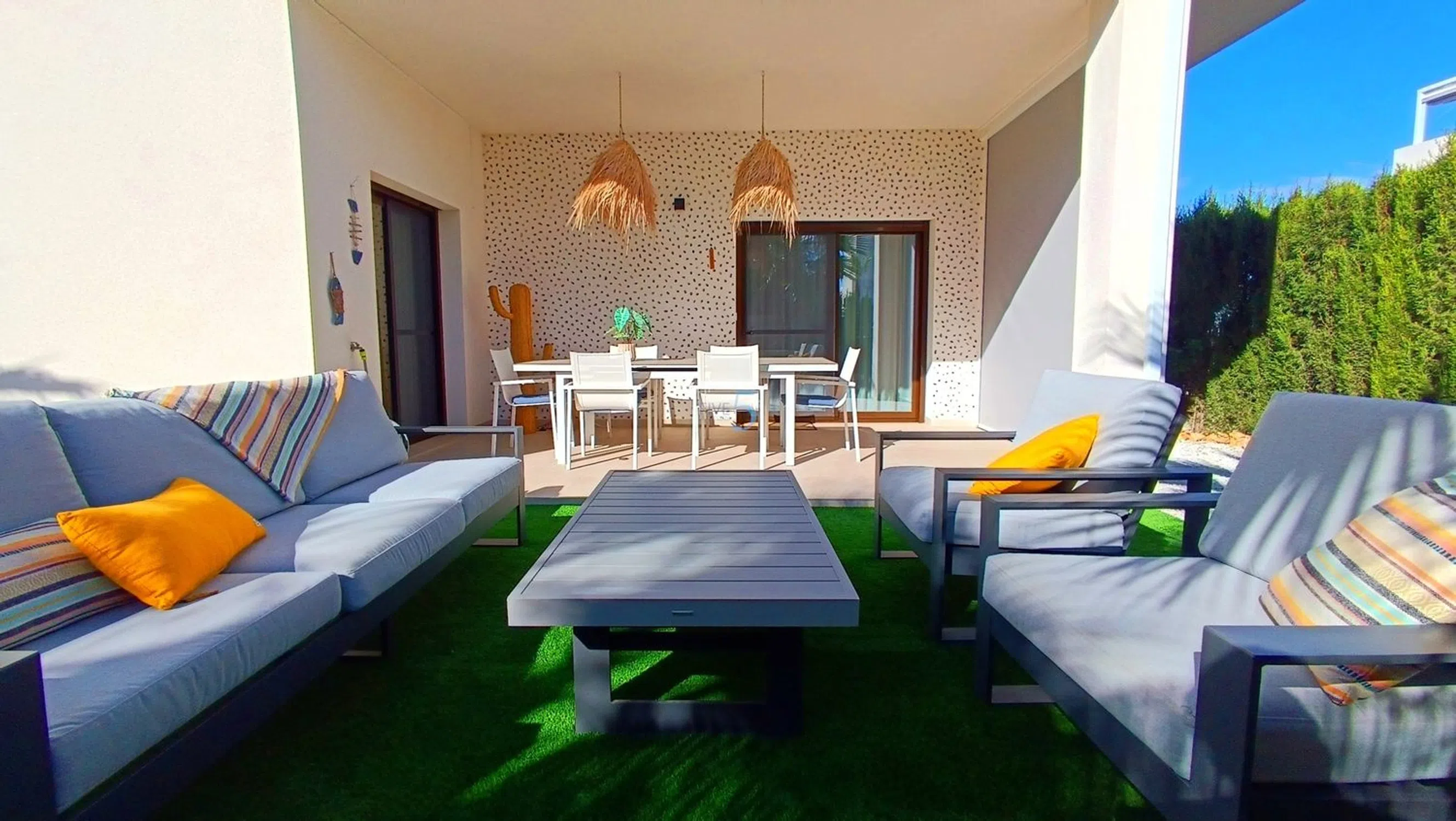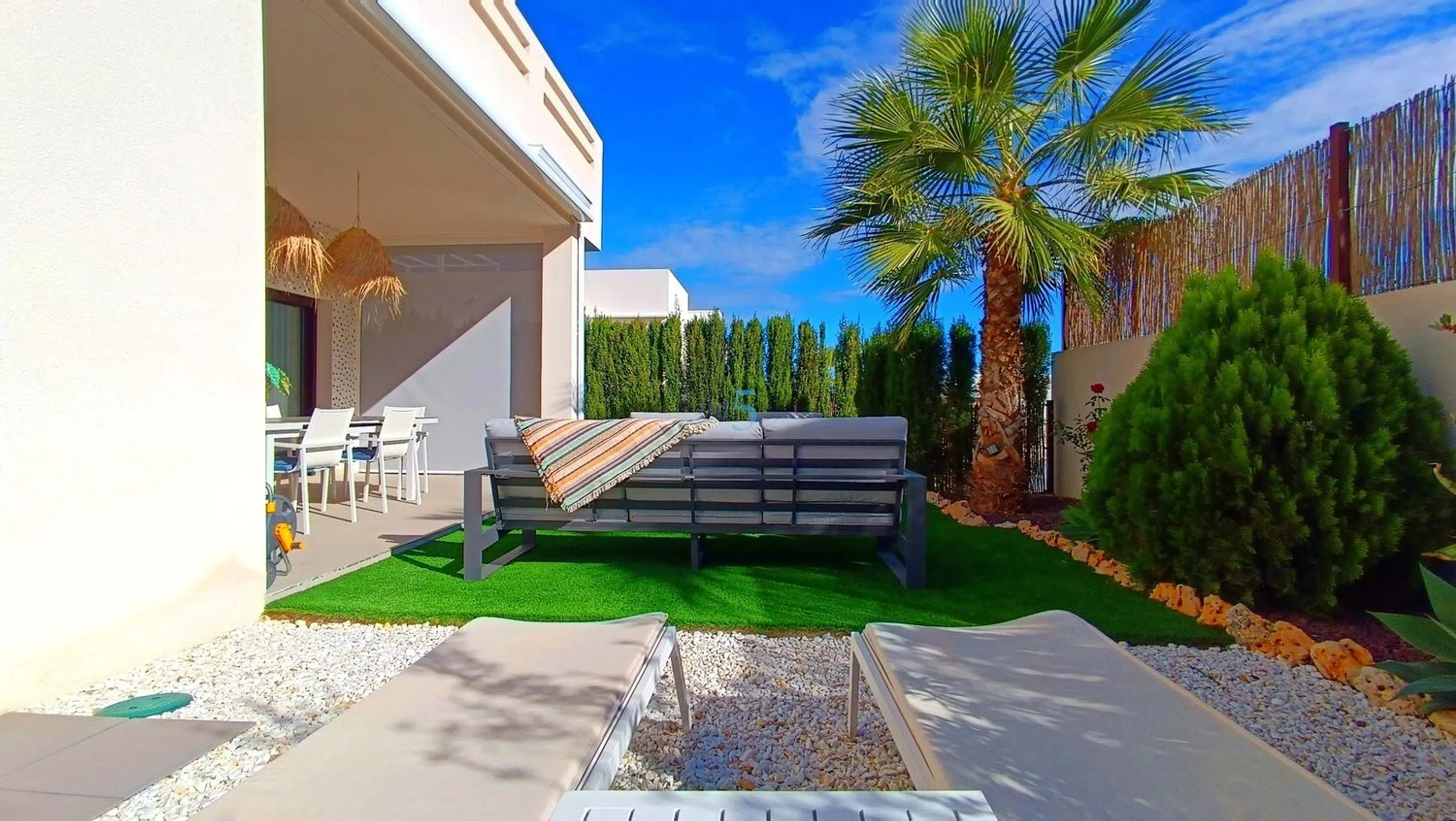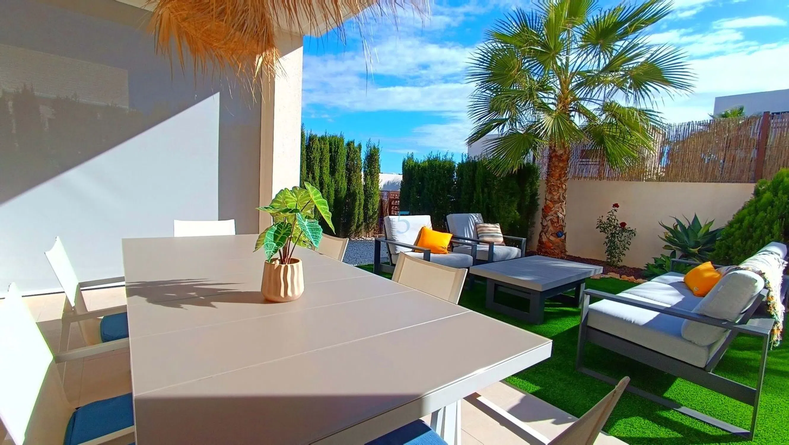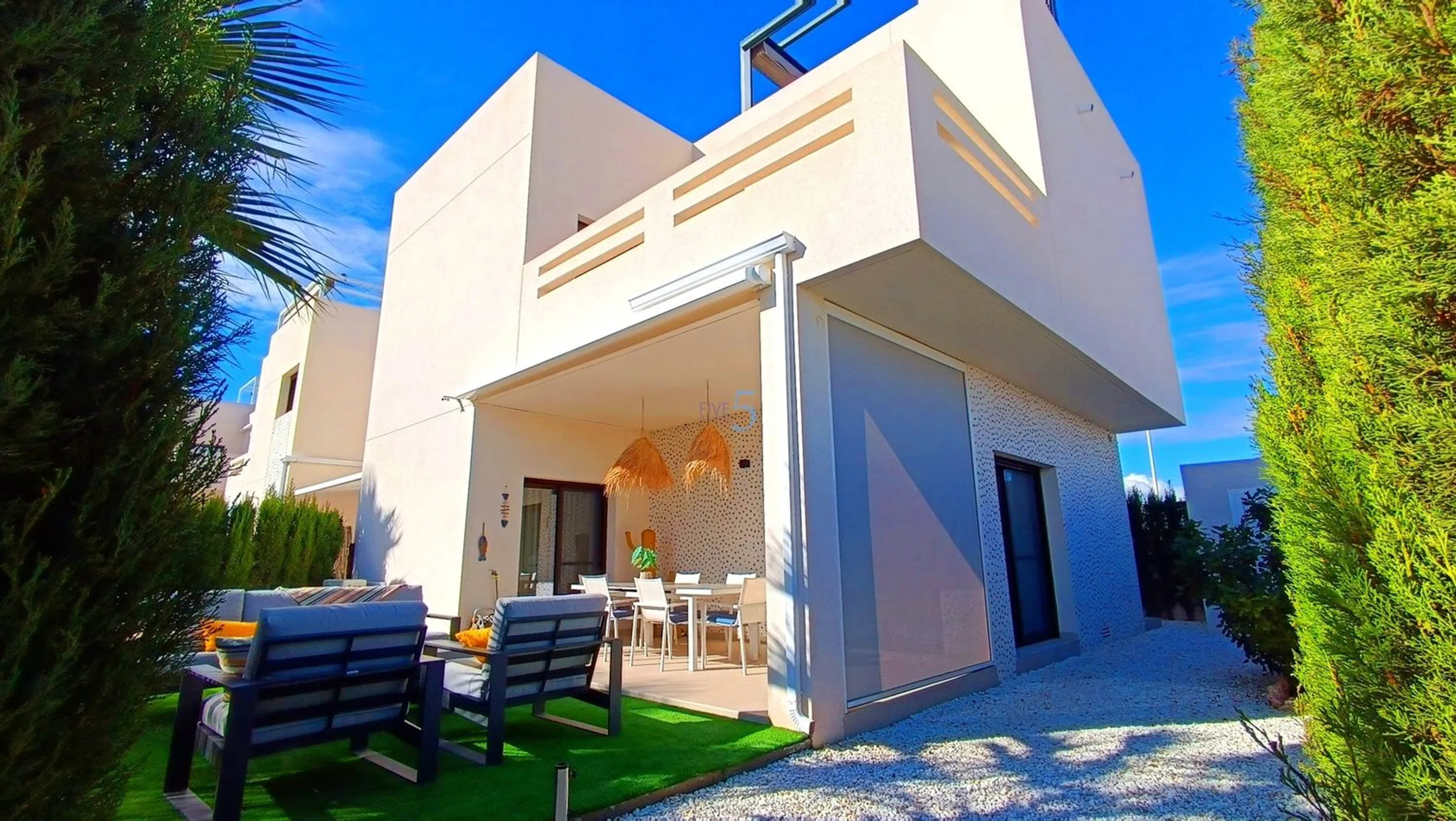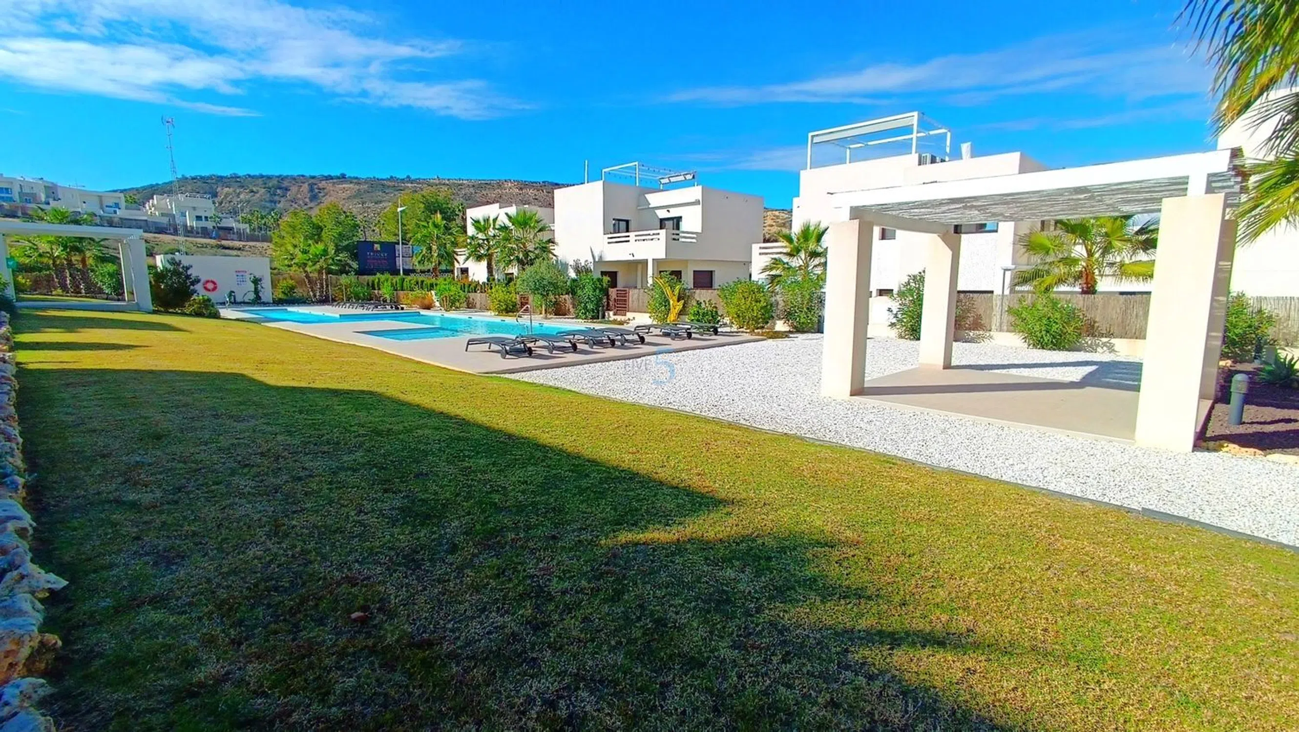 ¡Nos complace presentar este Impecable Moderno Apartamento de Esquina de 2 Habitaciones con Gran Jardín y Acceso Directo a la Piscina en La Finca Golf! Este impresionante apartamento de esquina en la planta baja de dos dormitorios y dos baños, idealmente ubicado dentro del prestigioso La Finca Golf Resort. Construida hace solo dos años, la propiedad ofrece un estilo elegante y contemporáneo en todo el país y ha sido mantenida con un estándar excepcional, realmente una oportunidad llave en mano. Situado en una envidiable parcela en la esquina, el apartamento se beneficia de un aspecto más luminoso y abierto y de un espacio exterior más grande de lo habitual, proporcionando el entorno perfecto tanto para relajarse como para recibir invitados. Las amplias zonas de jardín y terraza disfrutan de sol durante todo el día, realzado por dos toldos eléctricos, que te permiten crear sombra y comodidad siempre que lo necesites. Este espacio exterior es ideal para comer al aire libre, tomar el sol o simplemente disfrutar del tranquilo entorno residencial. En el interior, el apartamento impresiona con una zona de estar y comedor de planta abierta, luminosa y aireada, conectada de forma impecable a una cocina moderna y elegante, equipada con electrodomésticos de alta calidad y amplio espacio de almacenamiento. Ambos dormitorios son de gran tamaño, con el dormitorio principal con una ducha privada con baño privado bellamente acabado. El dormitorio de invitados es igualmente acogedor y cuenta con una lujosa sala de duchas familiar, terminada con el mismo alto nivel. Entre otras características se incluyen una sala de servicios dedicada dentro de la propiedad, ideal para almacenamiento extra y comodidad, junto con una sala de almacenamiento exterior adicional, añadida cuidadosamente por los actuales propietarios para maximizar la practicidad. En la parte trasera del apartamento encontrarás una zona de aparcamiento privada con espacio para dos coches, que ofrece tanto seguridad como fácil acceso. Uno de los beneficios más destacados de esta casa es el acceso directo a la impresionante piscina común, que cuenta con césped natural exuberante, jardines bellamente cuidados y amplias zonas de descanso, perfecta para refrescarse durante los meses cálidos o disfrutar de una tarde tranquila al aire libre. Esta exclusiva comunidad es famosa por su tranquilidad, presentación impecable y ubicación inigualable dentro del La Finca Golf Resort. Los residentes se benefician de la proximidad a las excepcionales instalaciones del complejo, incluyendo el famoso campo de golf, la sede club de lujo, restaurantes, bares, spa y tiendas locales, todo a solo un corto paseo o en coche. Tanto si buscas una residencia permanente en un entorno prestigioso, una escapada vacacional de lujo o una opción de inversión sólida, este apartamento en la esquina en la planta baja ofrece la combinación ideal de vida moderna, ubicación privilegiada y un espacio exterior excepcional. Lista para mudarse y presentada con belleza, esta es una propiedad que no te puedes perder. 5 Real Estate es la agencia inmobiliaria internacional de servicio completo y tarifa fija de más rápido crecimiento en España, con numerosas oficinas en el norte y sur de Costa Blanca, así como en la región de Murcia. Estamos comprometidos a ofrecer un servicio transparente y de primera clase a todos nuestros clientes, ya sean compradores o vendedores. Desde el momento en que nos contactes por primera vez te darás cuenta de la diferencia que ofrecemos y promovemos como estándar. Puedes estar seguro de que tratas con profesionales eficientes y fiables con muchos años de experiencia en bienes raíces españoles. En 5 Real Estate solo vendemos propiedades que están directamente listadas a nuestro nombre, lo que significa que conocemos personalmente a cada uno de los vendedores, sus casas y las zonas donde se encuentran. Dado nuestro extenso portafolio de.