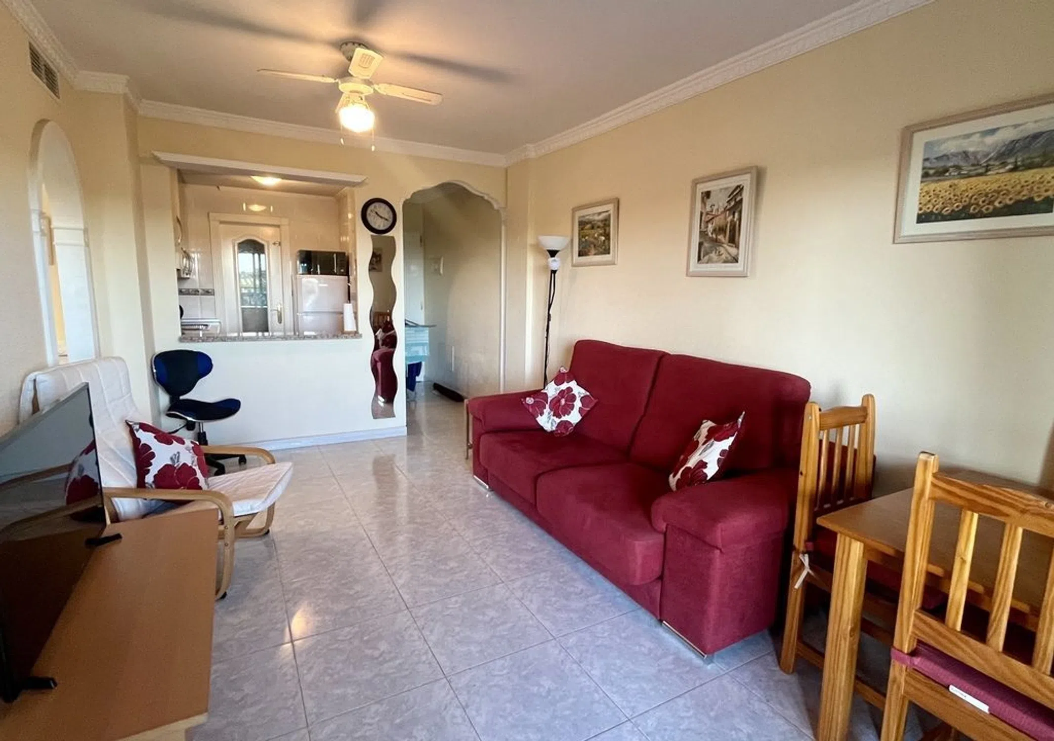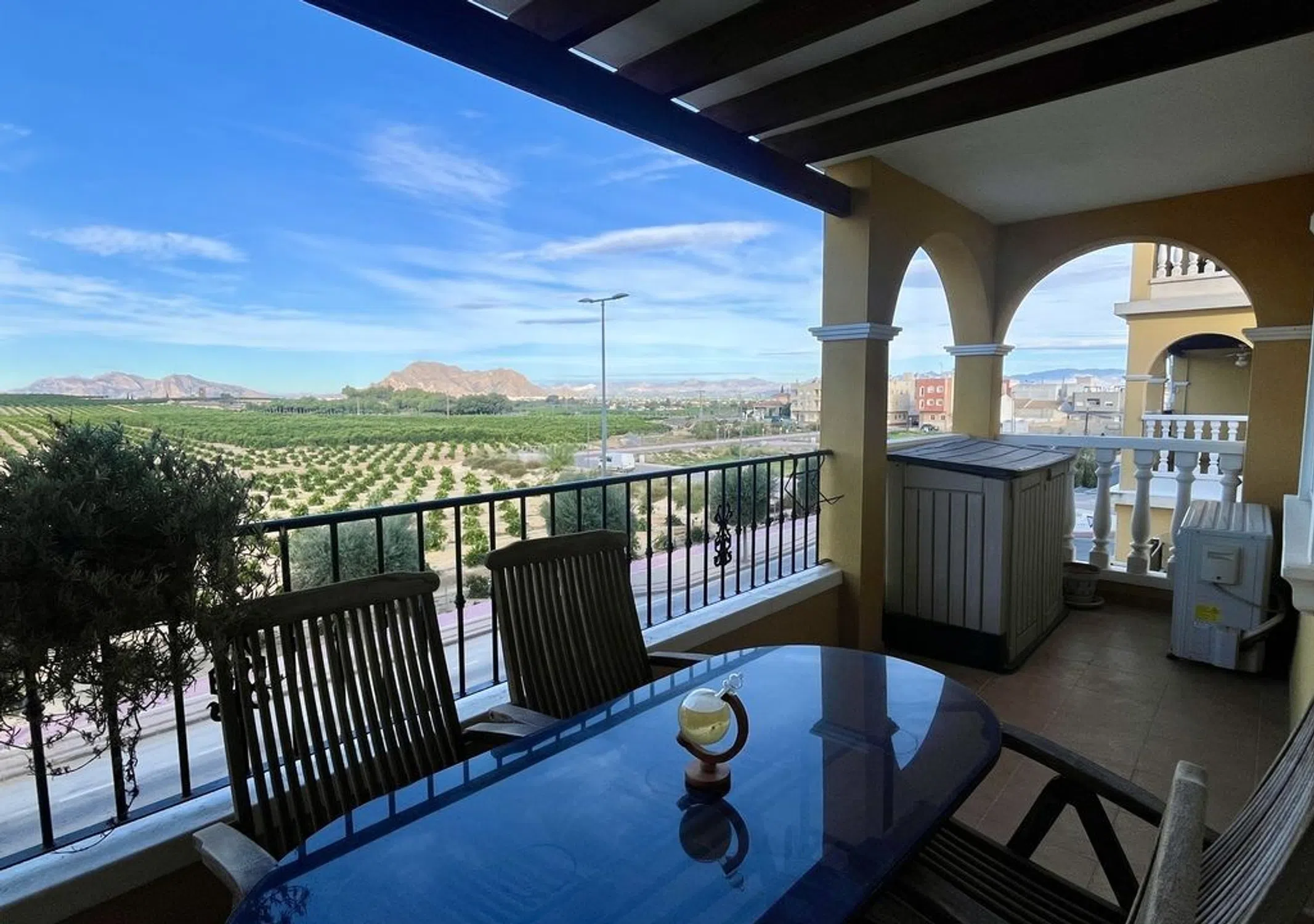 Impresionante apartamento con orientación oeste y vistas espectaculares. Este fantástico apartamento con orientación oeste ofrece vistas realmente espectaculares que se extienden sobre fragantes naranjales y limoneros, guiando la mirada hacia la majestuosa montaña Callosa y la encantadora iglesia de la Ermita. Con una ubicación perfecta para disfrutar de cada puesta de sol, el amplio balcón privado ofrece un lugar privilegiado para contemplar el espectáculo de la naturaleza al atardecer: un sitio ideal para relajarse o recibir invitados. Ubicado en un complejo residencial cerrado con un mantenimiento impecable, este inmueble cuenta con excelentes servicios comunitarios, como ascensor, una piscina reluciente y zonas comunes en perfecto estado. El apartamento también incluye una plaza de aparcamiento subterráneo asignada para mayor comodidad y seguridad. En el interior, el apartamento es luminoso y espacioso, con zonas de estar confortables y grandes ventanales que aprovechan al máximo las vistas panorámicas. La ubicación es inmejorable: justo enfrente del polideportivo local y a un paso de tiendas, restaurantes y otros servicios. El complejo de golf La Finca está a solo 5 minutos, la preciosa costa a tan solo 15 minutos en coche y el aeropuerto de Alicante a 35 minutos en coche. Tanto si busca una vivienda permanente, un refugio vacacional o una inversión para alquiler, esta propiedad combina comodidad, conveniencia y un paisaje cautivador.