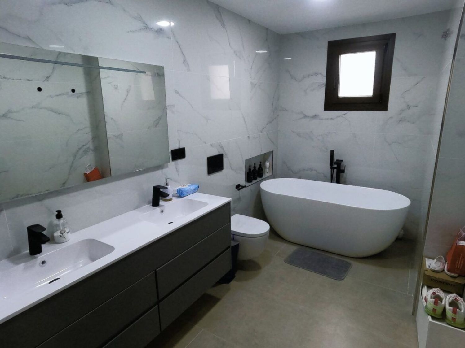 El acceso a la propiedad se realiza a través de una puerta de entrada privada, garantizando intimidad. Al ingresar, una escalera nos conduce a un espacio habitable de 172 m², que alberga tres amplios dormitorios dobles. Uno de ellos dispone de un lujoso cuarto de baño con ducha, además de un impresionante baño equipado con una bañera moderna. La distribución del salón, comedor y cocina es de concepto abierto, adornada con una acogedora chimenea de leña. La carpintería en toda la vivienda es de gran calidad, y las ventanas oscilobatientes están equipadas con doble acristalamiento y mosquiteras.