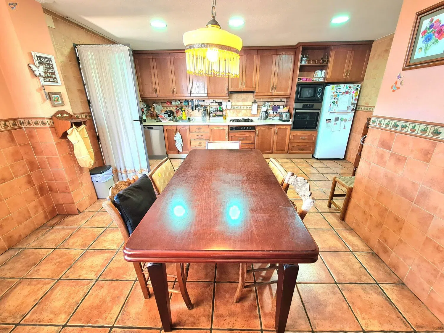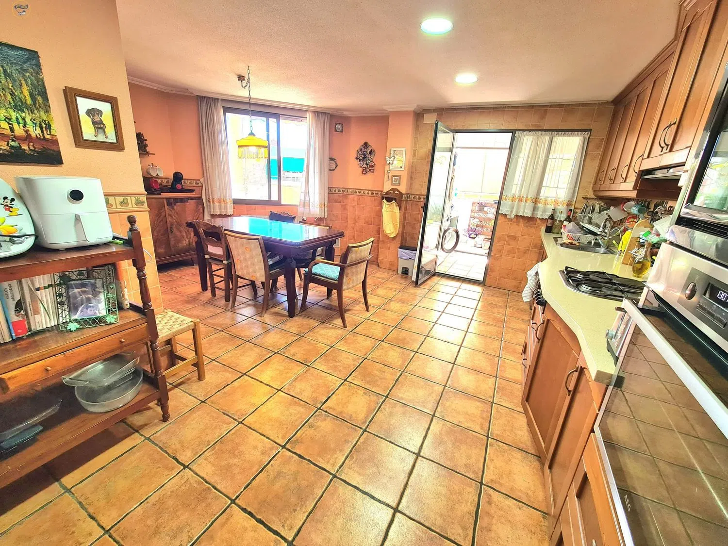El amplio salón-comedor es perfecto para disfrutar de momentos en familia o con amigos, mientras que la cocina independiente está completamente equipada y amueblada, incluyendo una práctica zona de despensa y lavandería. Desde la cocina y el salón, se accede a una terraza de alrededor de 25 m², ideal para relajarse al aire libre.
