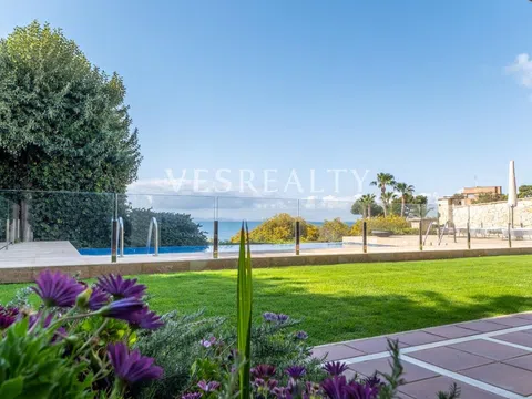 Op het lagere niveau bevindt zich een woonkamer-eetkamer met wijnkelder, een aparte keuken, een bibliotheek en een badkamer, wat de ideale ruimte creëert voor ontspanning of het ontvangen van gasten. Op de bovenste verdiepingen opent de hoofdwoonkamer naar de zee, en biedt dankzij grote ramen een adembenemend uitzicht. De keuken, licht en van eigentijds design, heeft alles wat nodig is om van een gastronomische ervaring te genieten. Bovendien biedt een personeelsruimte met volledige badkamer functionaliteit en privacy.