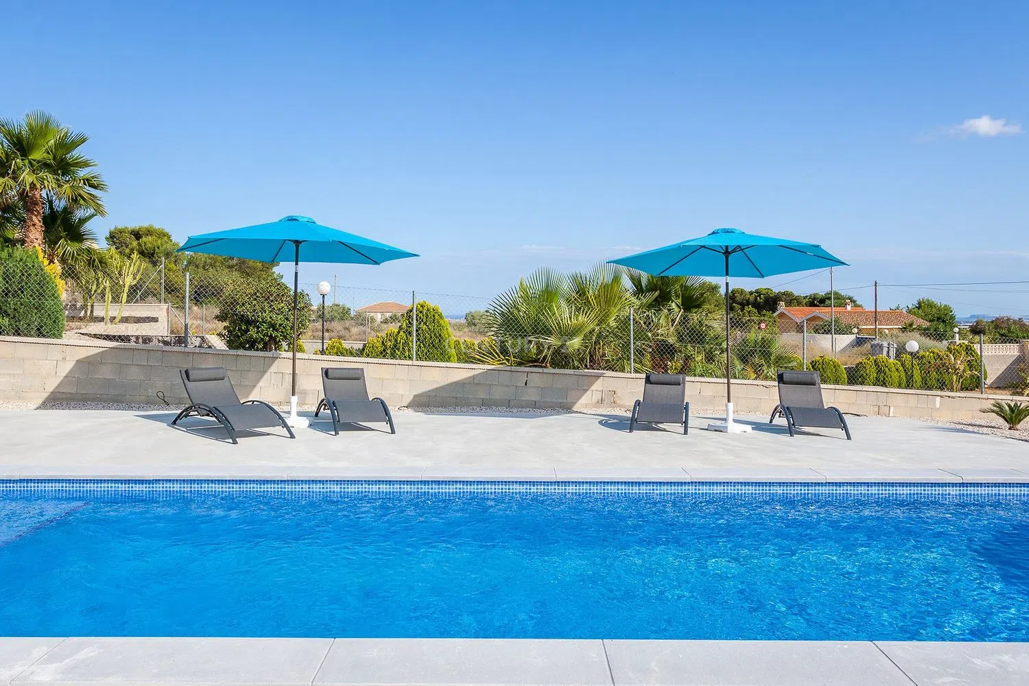 Deze moderne villa zal u overtuigen en is altijd een bezoek waard. Aluminium ramen van hoge kwaliteit met veiligheidsglas, hoogwaardige en prestatiegerichte vloeren, nieuwe zonnepaneelinstallatie, ingebouwde MDF-kasten van hoge kwaliteit, uitzicht op de bergen, gedeeltelijk overdekt terras, rustige en privé locatie, grote tuin met prachtig ontwerp en veel planten, mediterrane bomen, met automatische irrigatie en zeer ruime terrassen.