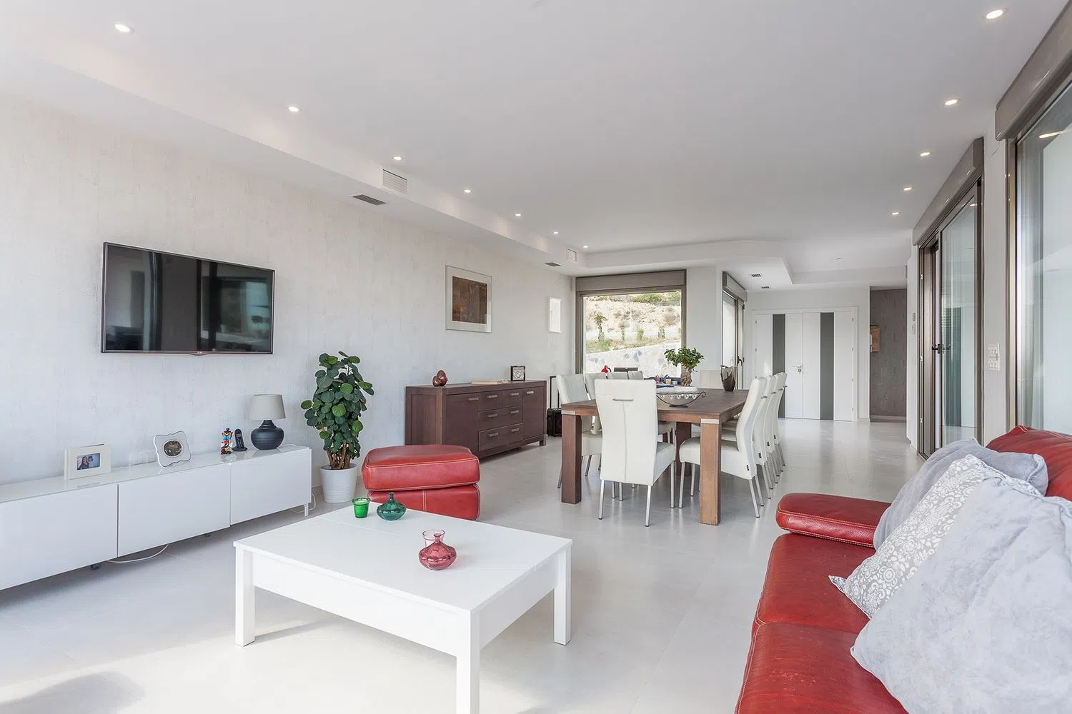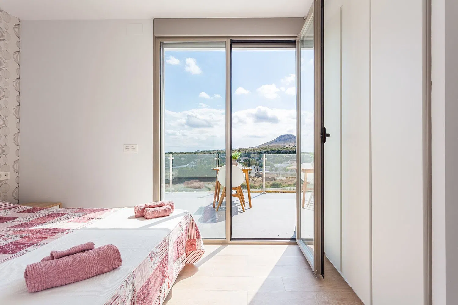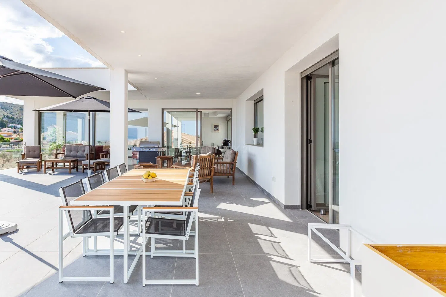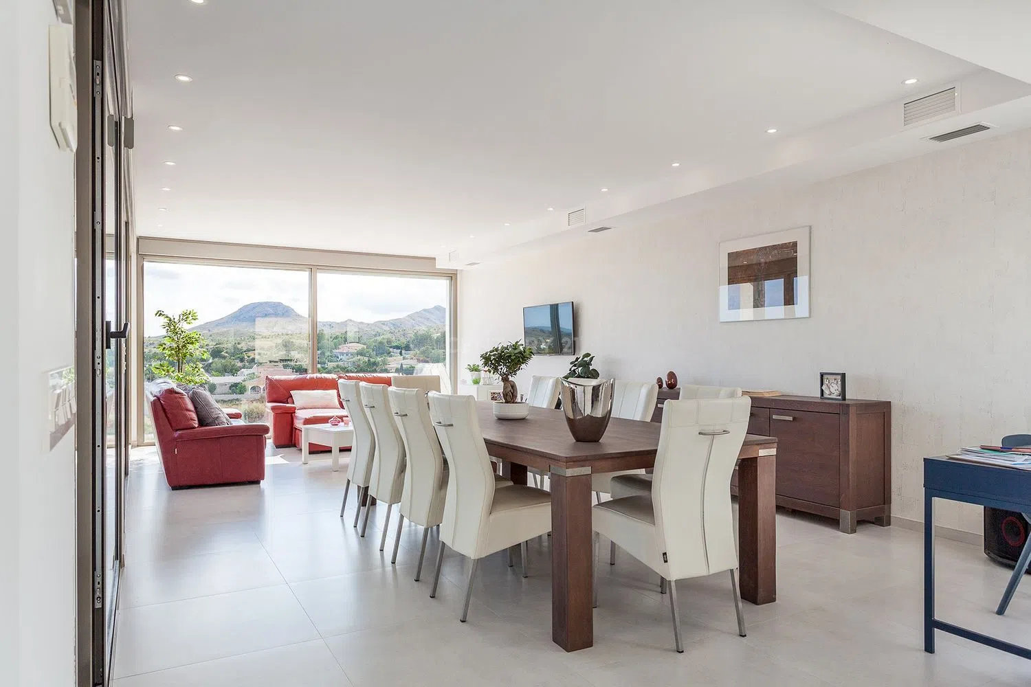 Deze prachtige moderne villa biedt vijf slaapkamers met luxueuze badkamers en werd voltooid in maart 2020. De totale woonoppervlakte is 385m² en spreidt zich uit over twee verdiepingen. De woning werd gebouwd met bouwmaterialen van hoge kwaliteit en staat op een perceel van 2.750m². Het hoofdterras is gedeeltelijk overdekt en heeft een oppervlakte van 125m². De villa biedt een prachtig panoramisch uitzicht over de Valle del Sol en Alicante, evenals de blauwe Middellandse Zee.