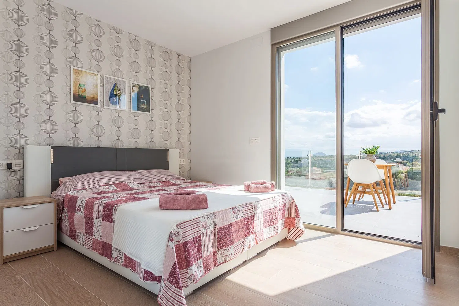 Het interieurontwerp, uitgevoerd met hoogwaardige materialen, bevordert het uitzicht en biedt alle comfort zoals airco warm/koud, elektrische rolluiken, ramen van vloer tot plafond, een prachtige moderne keuken, ruime kamers met en-suite badkamers en een grote afgesloten garage, zonnepanelen voor warm water.