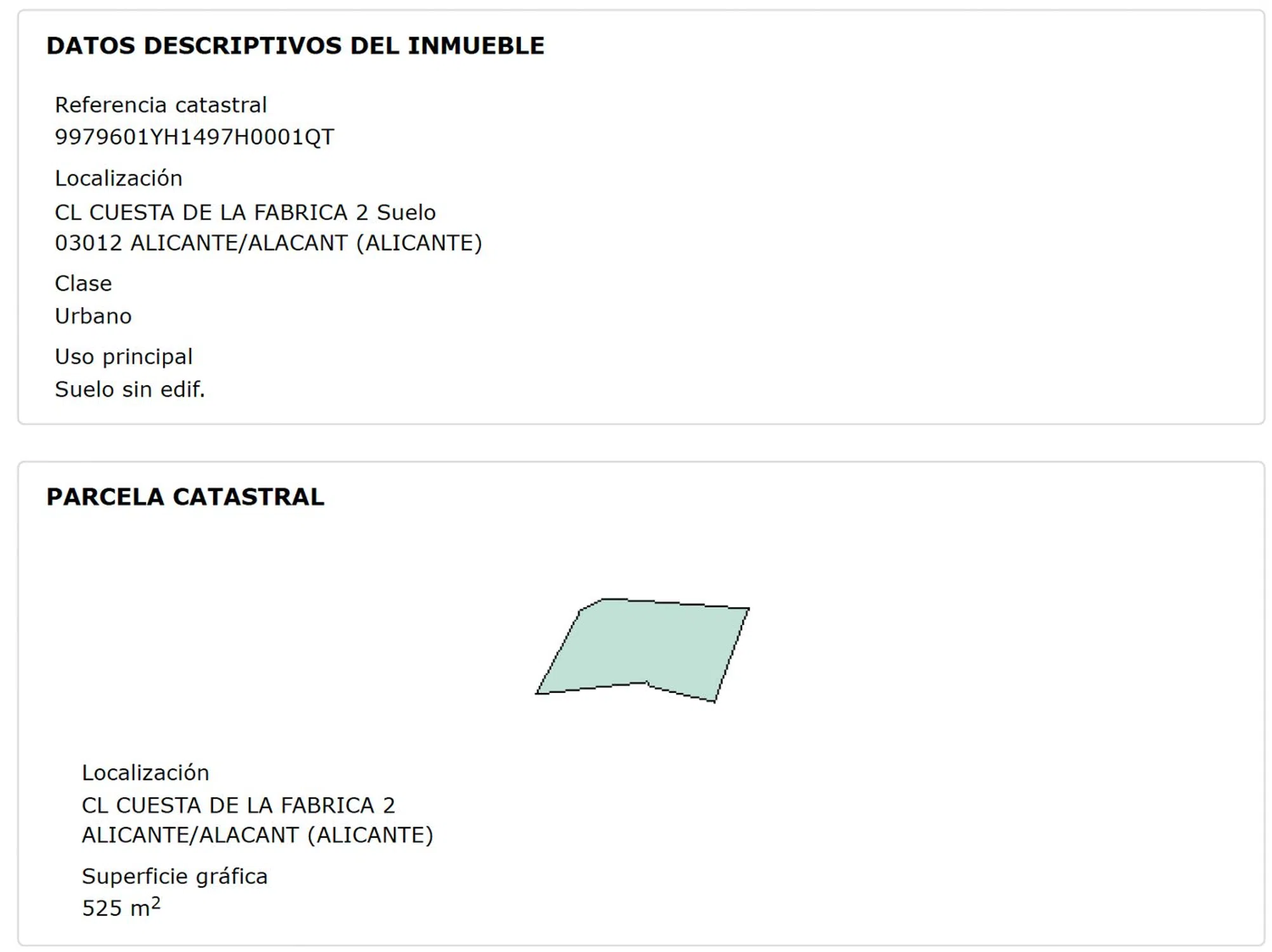 Marktprijstatistieken voor Terreno en calle Costera de la Fàbrica, 2