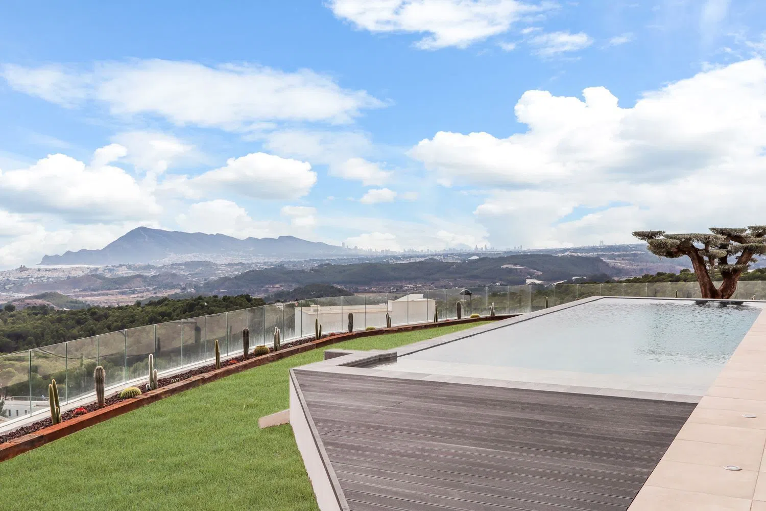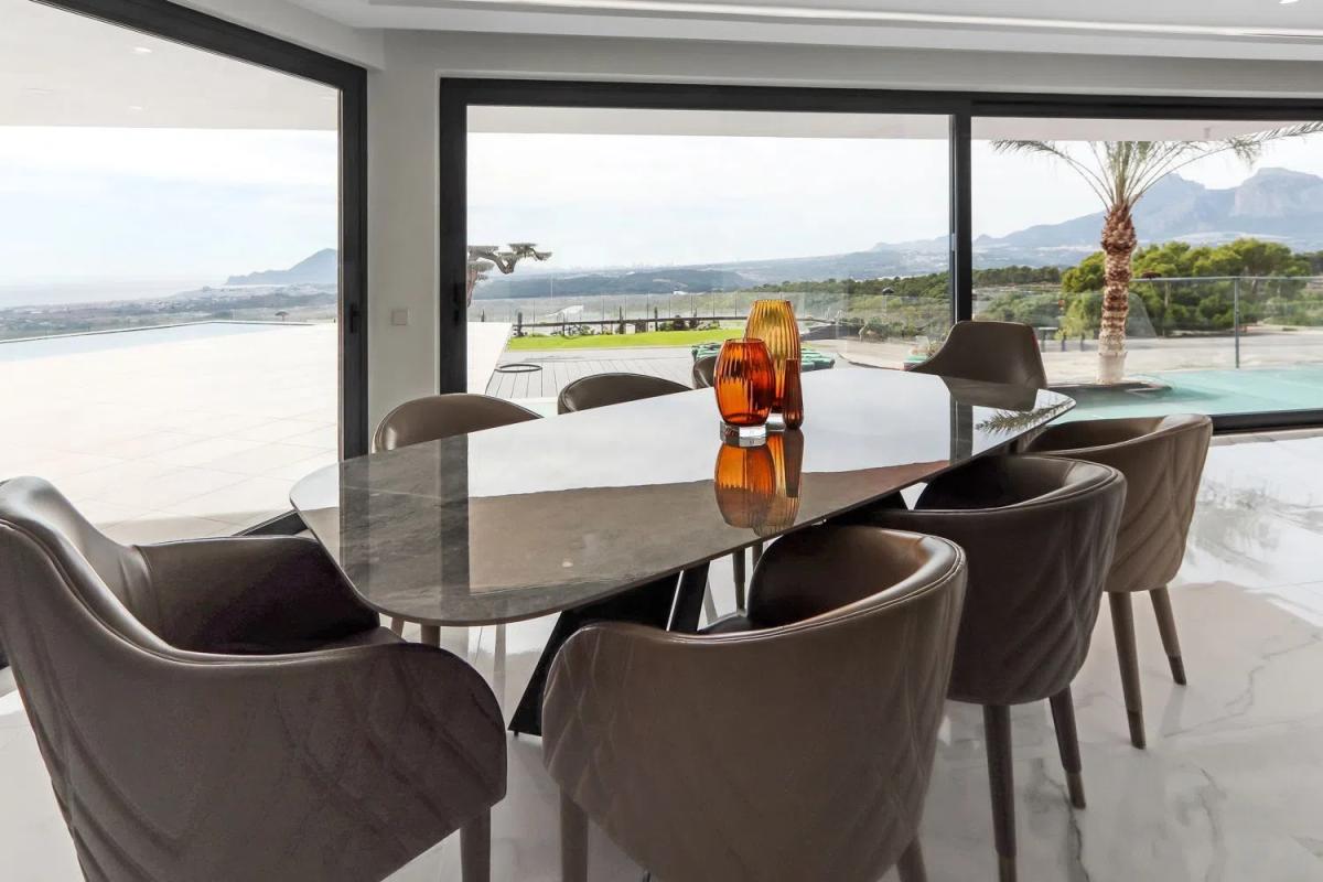 El atractivo principal de la propiedad es su impresionante piscina, que se integra perfectamente con el horizonte del mar Mediterráneo. Las vistas panorámicas invitan a disfrutar de momentos inolvidables, rodeados de hermosos jardines paisajísticos y zonas de recreo al aire libre, convirtiendo el espacio en el lugar ideal para relajarse bajo el cálido sol de la Costa Blanca.
