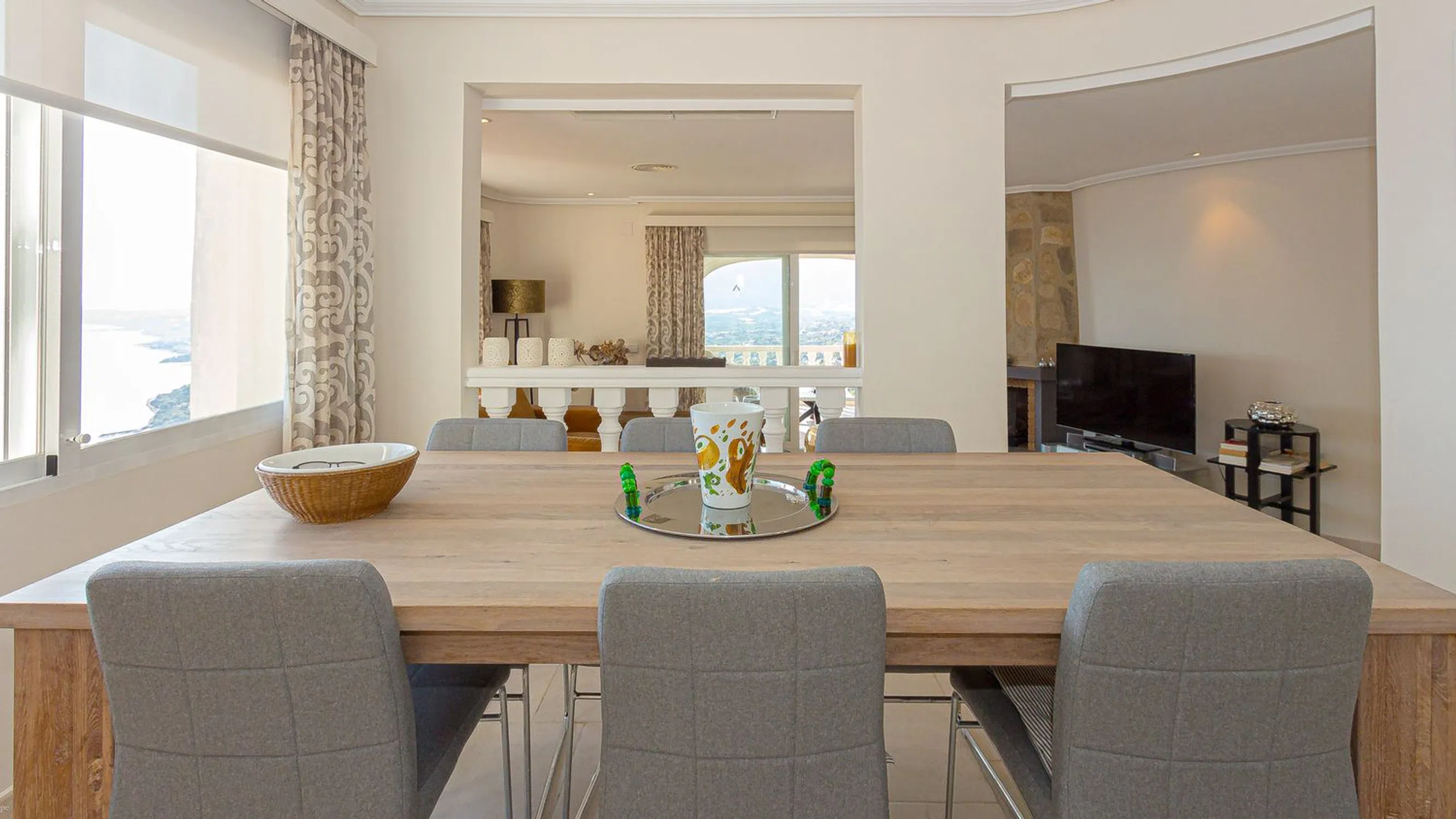 Impresionante villa con las Vistas Más Bonitas al Mar en Altea Hills Esta preciosa villa se encuentra en una de las zonas más bonitas de Altea Hills. Desde esta ubicación única, las vistas al mar, a la bahía de Altea y a las montañas son impresionantes. La villa se encuentra en excelentes condiciones y ha sido completamente renovada. Cuenta con un amplio recibidor que da acceso al salón con chimenea y al comedor con cocina americana totalmente equipada. La cocina da a una terraza a la sombra en la parte trasera, y el salón tiene acceso directo a la terraza cubierta y al solárium abierto con toldo y orientación sur. Todas las ventanas ofrecen vistas despejadas al mar. En esta planta se encuentra el dormitorio principal con baño en suite y vestidor. Los dormitorios de la planta baja son accesibles tanto por una escalera interior como por una exterior. En esta planta hay cuatro dormitorios, un baño y una segunda sala de estar. La planta baja, situada al nivel de la piscina, es una zona de recreo con mesa de billar, dardos y mesa de ping-pong. También hay un baño con ducha en esta planta. La villa cuenta con aire acondicionado central, persianas, cochera doble y telesilla en la escalera exterior.