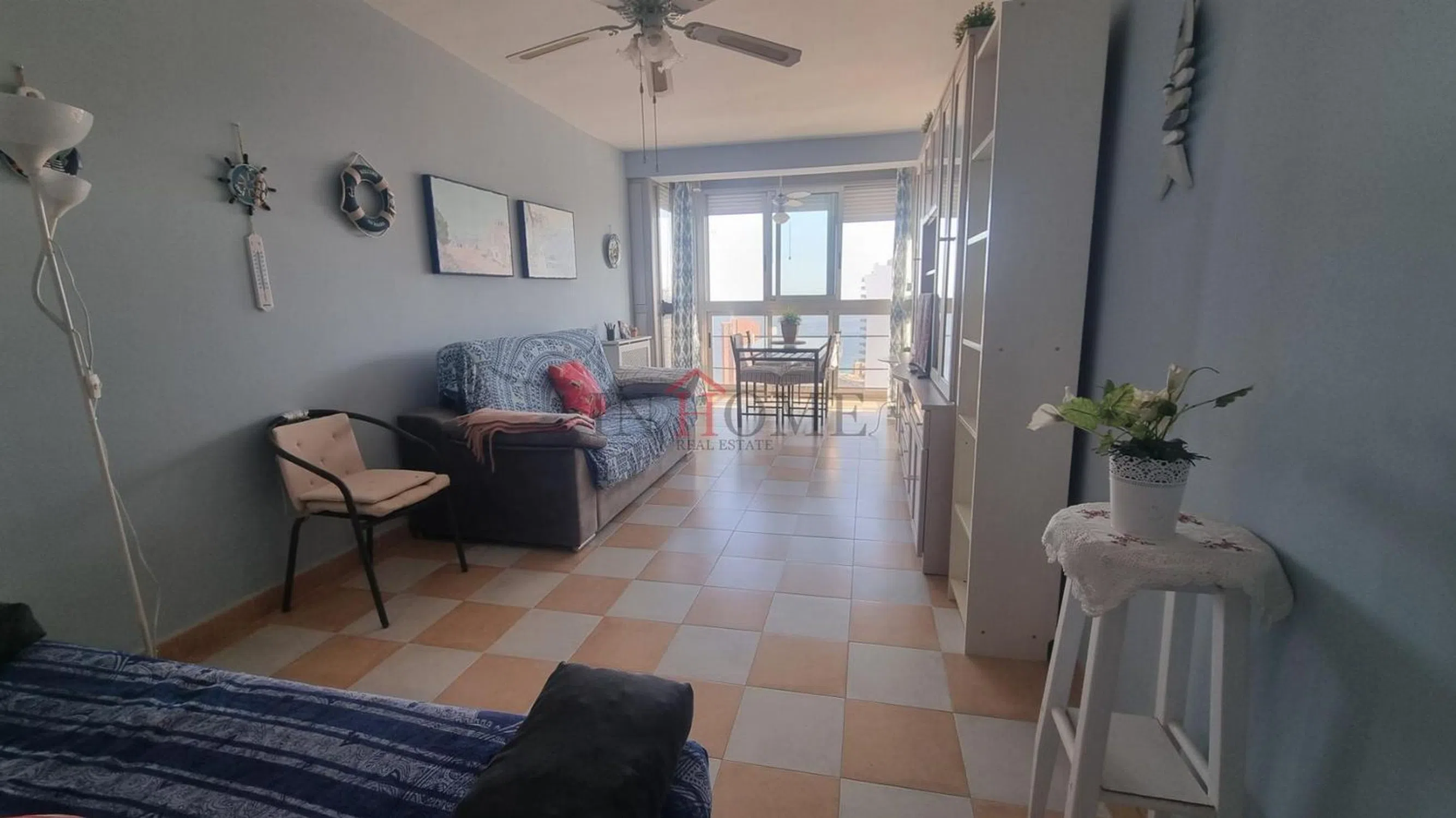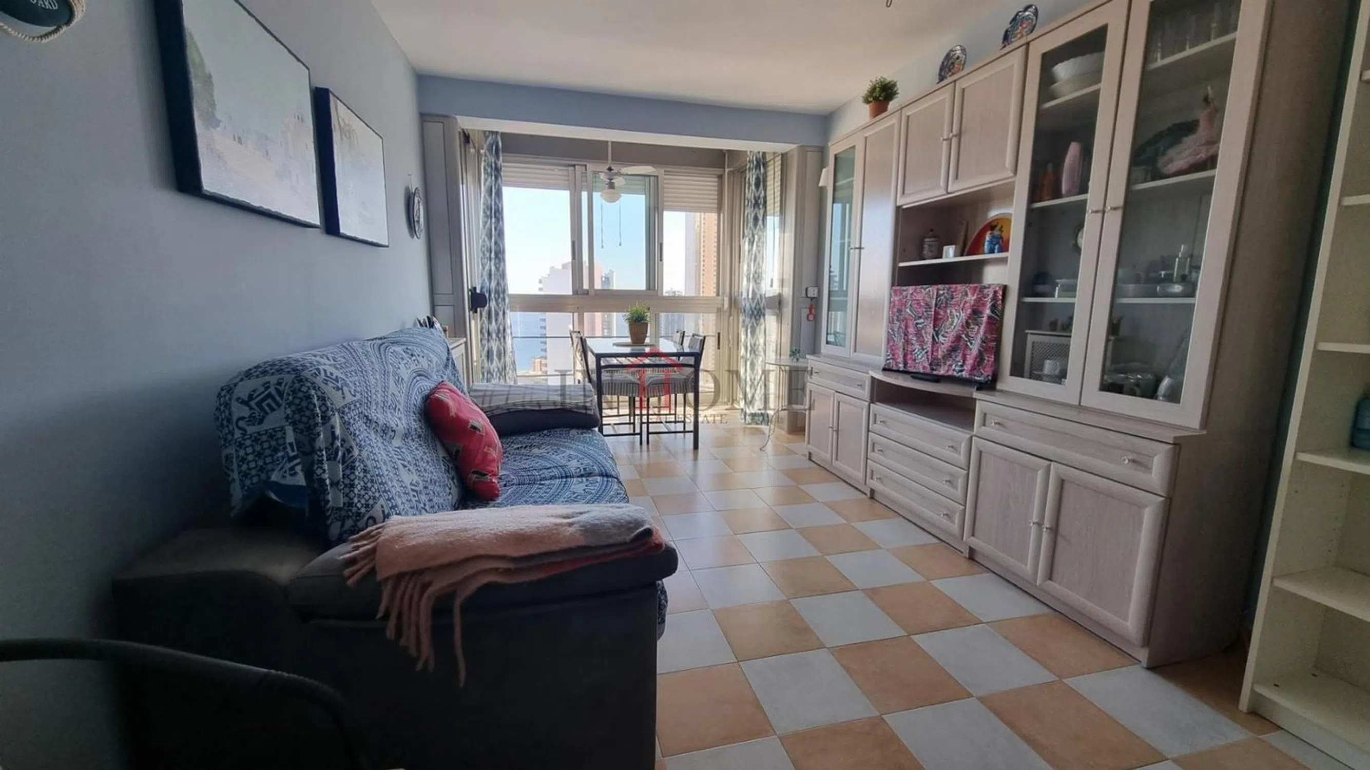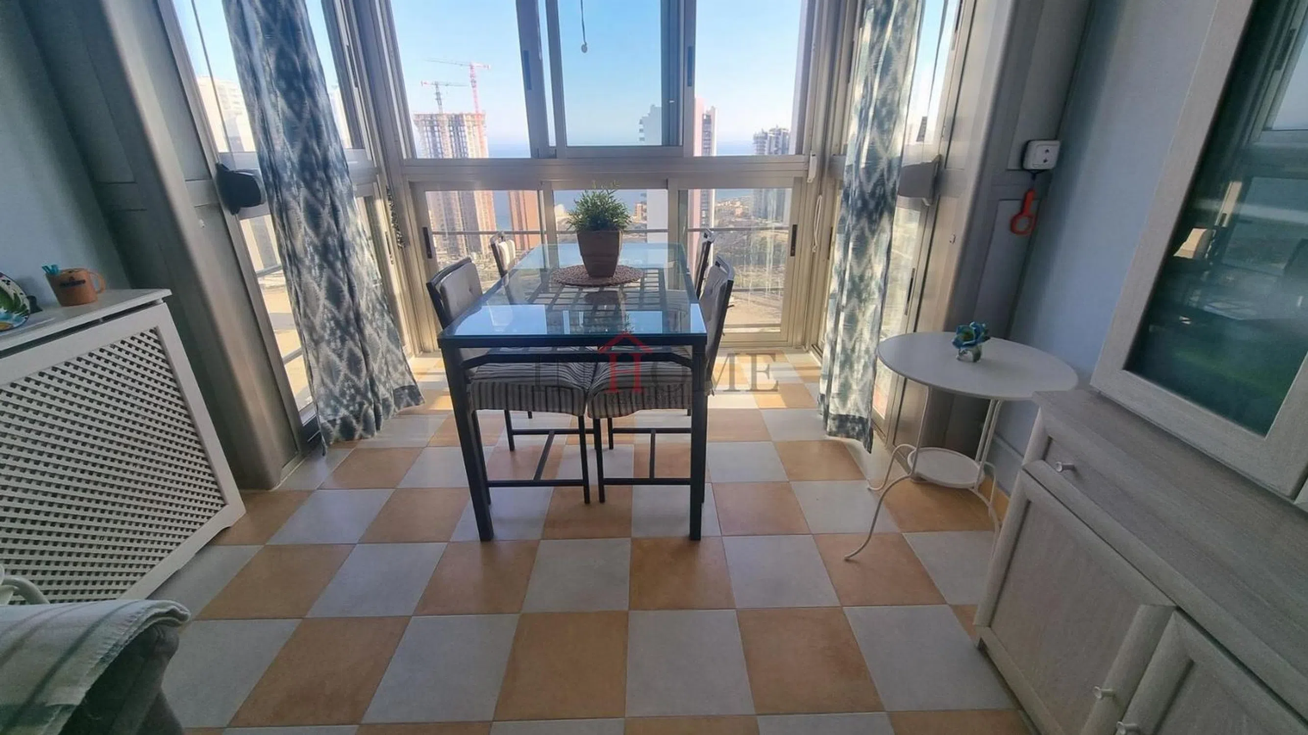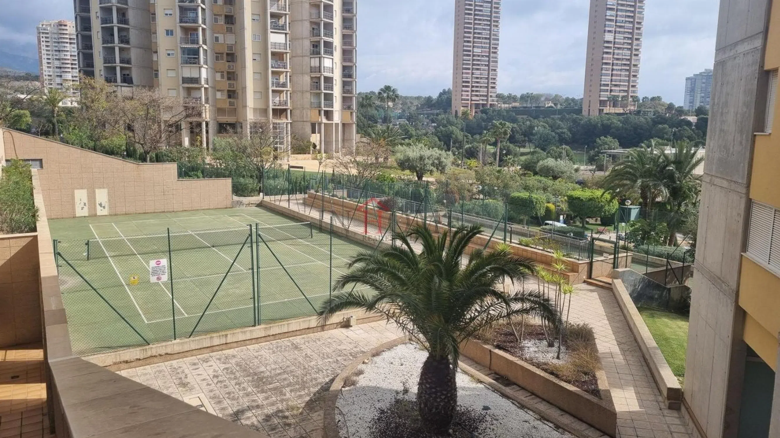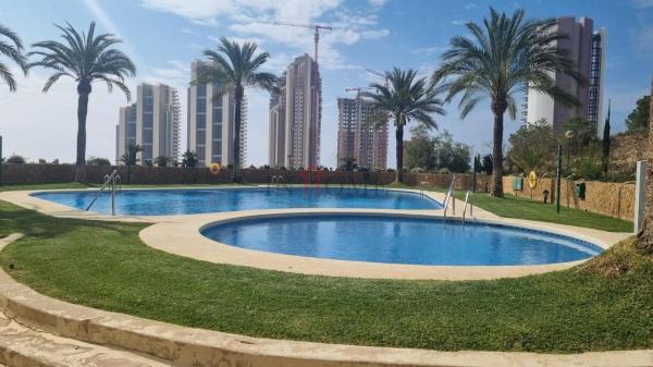 Apartamento con vistas al mar situado en la playa de poniente en la zona de vía Parque, dicha vivienda consta de salón-comedor con la terraza acristalada, toldos y persiana eléctrica, dormitorio, cocina independiente con galería y baño. Aire acondicionado en salón y dormitorio frio-calor. Plaza de garaje en planta sótano. Urbanización con piscina, pistas de tenis y parque infantil.