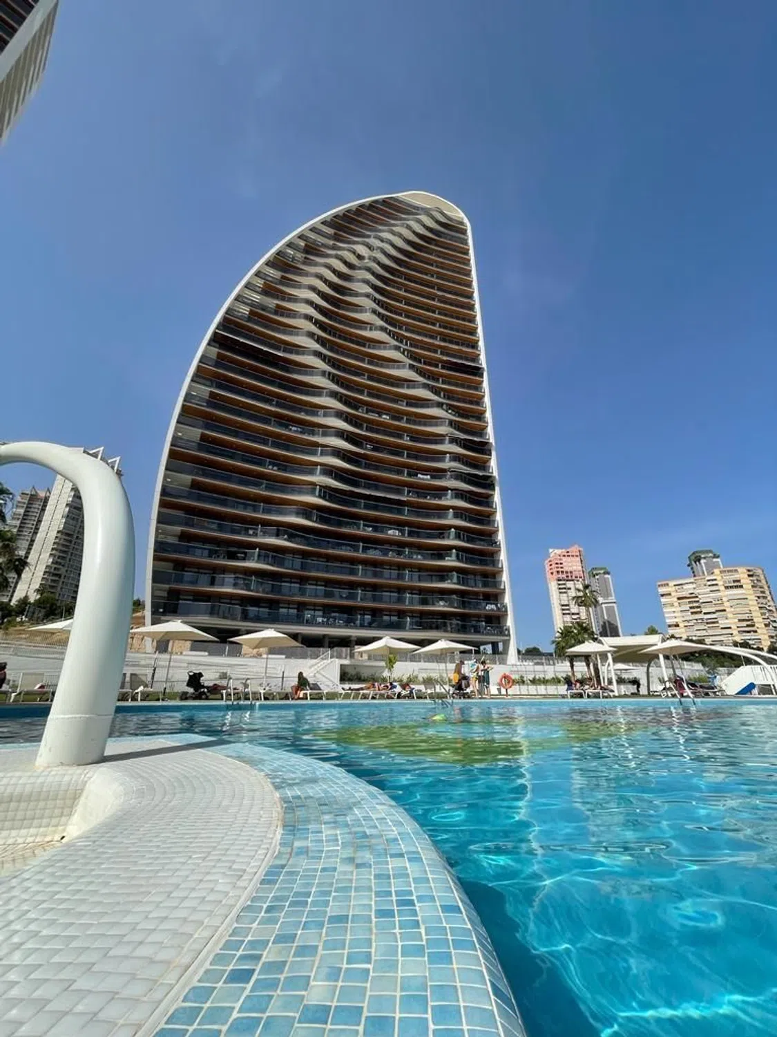 Apartamento amueblado en la planta 11, con terraza e impresionantes vistas panorámicas al mar, amplio salón comedor con cocina americana totalmente equipada, 2 dormitorios y 2 baños, aire acondicionado central, suelo radiante en los baños, parquing en el sótano. Urbanización es la más moderna y completa de toda la ciudad, cuenta con 30 000 m 2 de superficie, divididos en 3 piscinas, 3 jacuzzis, zonas de ocio, 1 bar integrado en la piscina, sauna, gimnasio, piscina climatizada adaptada para la natación profesional, pista de tenis, pádel, Wi-Fi salas de reuniones de oficina. [IW].