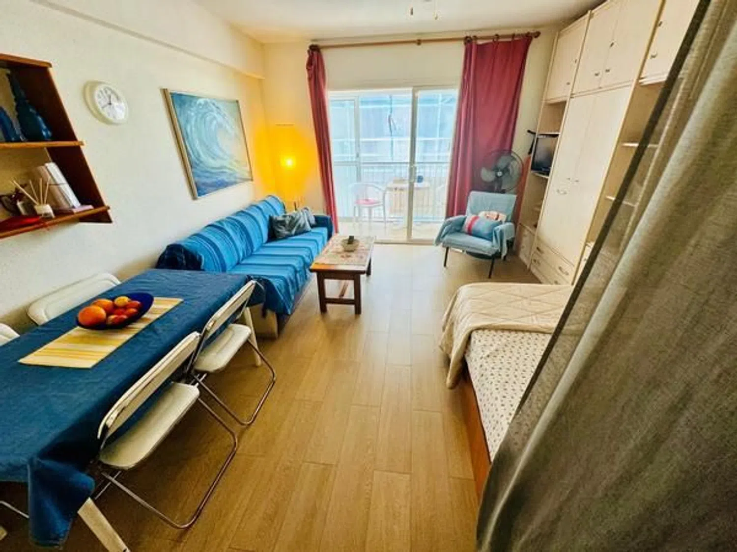Ruim en lichtgevend salon met een charmant glazen terras dat een indrukwekkend uitzicht op het strand biedt. De keuken is volledig uitgerust, terwijl de badkamer is voorzien van een moderne douche en wand. Deze woning bevindt zich op een bevoorrechte locatie, dicht bij alle essentiële diensten zoals banken, apotheken, supermarkten en winkels, en heeft bovendien gemakkelijke toegang tot het openbaar vervoer. Een uitstekende investeringsmogelijkheid! Geniet van de frisse zeebries en de gemakken van het stadsleven in een van de meest gewilde gebieden van de regio.