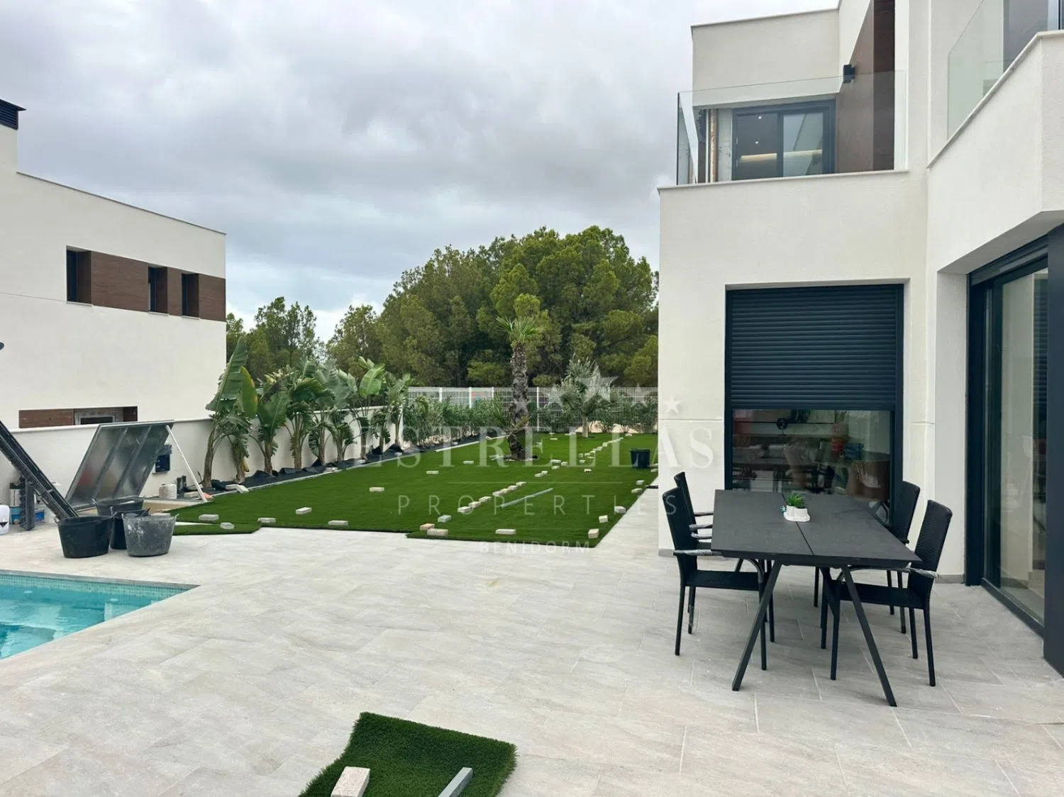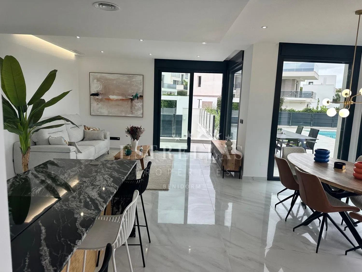 Extra's: Waterval en jacuzzi in het zwembad. Spots in de villa en verlichting in buitenruimtes. Airconditioning. Elektrische rolluiken en domotica (Smart Home).
