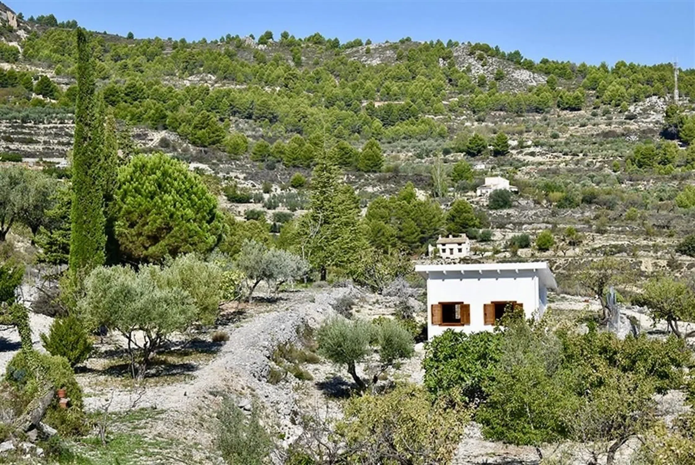 Tu rincón de paz en las montañas En las alturas de Benifato, con vistas abiertas a las sierras y atardeceres que parecen pintados, se encuentra esta finca: un capricho natural, un pequeño refugio pensado para desconectar, cultivar y recuperar el ritmo de la naturaleza. El terreno de 7.352 m² está completamente vallado y cuenta con sistema de riego y acceso al agua, algo poco habitual en esta zona de secano, lo que la convierte en una parcela especialmente valiosa. Ha sido trabajada con mimo y buen gusto, combinando sensibilidad paisajista y respeto por el entorno. En ella crecen almendros, olivos, nogales, pistachos, higueras, caquis y una abundante cubierta aromática de lavanda, tomillo, manzanilla y romero que perfuma el aire y atrae a abejas y mariposas durante todo el año. En el corazón del terreno se ubica una casita de madera de aproximadamente 22 m², cálida, acogedora y legal el refugio perfecto para escapadas y estancias puntuales. El acceso es excelente, con carretera asfaltada hasta la entrada, y la sensación al entrar es de silencio y panorama: un lugar para leer entre almendros, poner una mesa rústica al sol o instalar una pérgola ligera entre lavandas para cultivar o descansar. Si se desea, el espacio permite imaginar soluciones reversibles y de bajo impacto por ejemplo, un aljibe que haga oficio de piscina natural o un pequeño estanque integrados con piedra y vegetación siempre respetando el uso agrícola del terreno. (Se recuerda que se trata de parcela rústica y que cualquier actuación fija está sujeta a la normativa vigente. ) Las vistas son espectaculares: Aitana, La Serreta y las formaciones del Guadalest, Bernia y el Castillo de Confrides dibujan el horizonte. Rodeada de calma y sin vecinos a la vista, esta finca ofrece privacidad absoluta y una conexión genuina con la naturaleza. A solo unos minutos del pueblo de Benifato y del valle de Guadalest, esta propiedad es un auténtico capricho para quienes sueñan con tener su propio trozo de montaña: un espacio de desconexión, cultivo y disfrute, lleno de vida y posibilidades.
