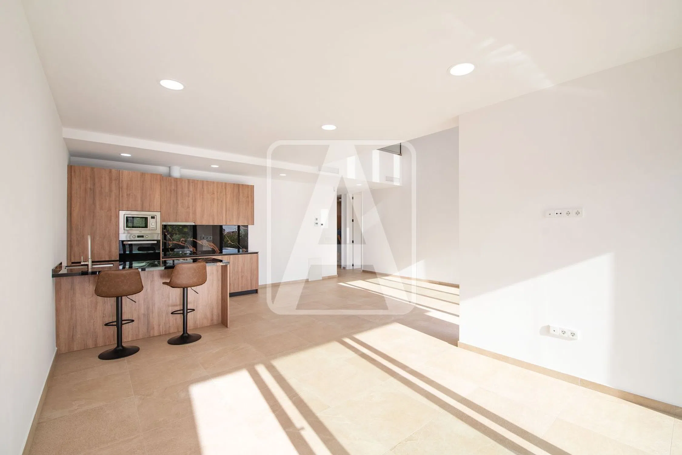 Villa de obra nueva (llave a mano), en venta en Benissa, en La Fustera, situada en una zona residencial consolidada y muy tranquila, a tan solo 1,2 Km (14 minutos a pie) de la playa La Fustera y de servicios (supermercados, restaurantes, parada de autobús...), y muy cerca de Moraira y Calpe. Disfruta de bonitas vistas al mar y a las montañas, de sol todo el día (orientación Sur) y de mucha paz y tranquilidad (calle sin salida). Esta villa de estilo moderno con toques mediterráneos (piedra natural), está ubicada en una amplia parcela llana de 1.715 m2 y tiene una superficie construida de 205 m2 distribuida en 2 plantas de la siguiente manera: en la planta principal encontramos amplio garaje, hall de entrada (con zona de lavadero bajo escalera), 1 gran dormitorio (15 m2), 1 baño completo, amplio salón-comedor-cocina (concepto todo abierto, con isla, en conjunto 45 m2 y zona salón con doble altura), y porche (terraza cubierta, de 10 m2) que se conecta con una gran terraza abierta donde tenemos una bonita piscina rectangular de 4x8 metros. En la planta superior tenemos un elegante distribuidor que da a la zona de doble altura (efecto muy bonito, muy elegante), 2 amplios dormitorios (15 m2 + 15 m2), 2 baños (1 en-suite) y terraza privada (12 m2) de uso exclusivo de la suite con preciosas vistas al mar. Esta propiedad destaca por su bonito diseño moderno, amplitud de sus espacios, decoración y calidades. Está equipada con calefacción por suelo radiante y con aire acondicionado por conductos, con termostatos independientes en cada estancia (sistema de aerotermia, mínimo consumo y máxima eficiencia), carpintería exterior de alta calidad con vidrio inteligente, cocina de diseño totalmente equipada, baños de diseño, barandillas de vidrio, suelos porcelánicos, sistema de alarma... Una característica única de esta propiedad es la gran zona verde de aproximadamente 900 m2 que ofrece muchas oportunidades para pasar un rato agradable, como zona de recreo, relajación y barbacoa. Además del garaje, esta propiedad disfruta de aparcamiento exterior para varios vehículos. El jardín es de estilo mediterráneo (con plantas autóctonas) y de bajo mantenimiento (equipado con riego automático). Para recibir más información sobre esta propiedad, póngase en contacto con AREA Costa Blanca. AREA Costa Blanca - su agente para propiedades en venta en Benissa - Costa Blanca - España. AREA Costa Blanca está orgullosa de ser una de las mejores agencias inmobiliarias en la Costa Blanca. En AREA Costa Blanca trabajamos para ofrecer el mejor servicio asesorando a nuestros clientes en la compraventa de propiedades inmobiliarias. Contamos con un equipo profesional de larga experiencia en el sector inmobiliario. Nuestro principio fundamental es la calidad del servicio prestado y la satisfacción del cliente. Nuestra experiencia y actitud, su garantía de éxito.