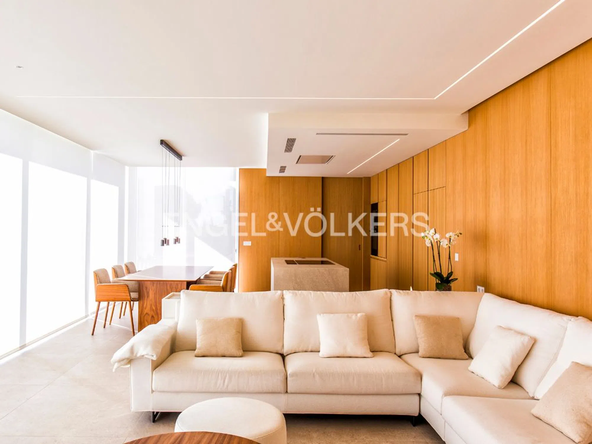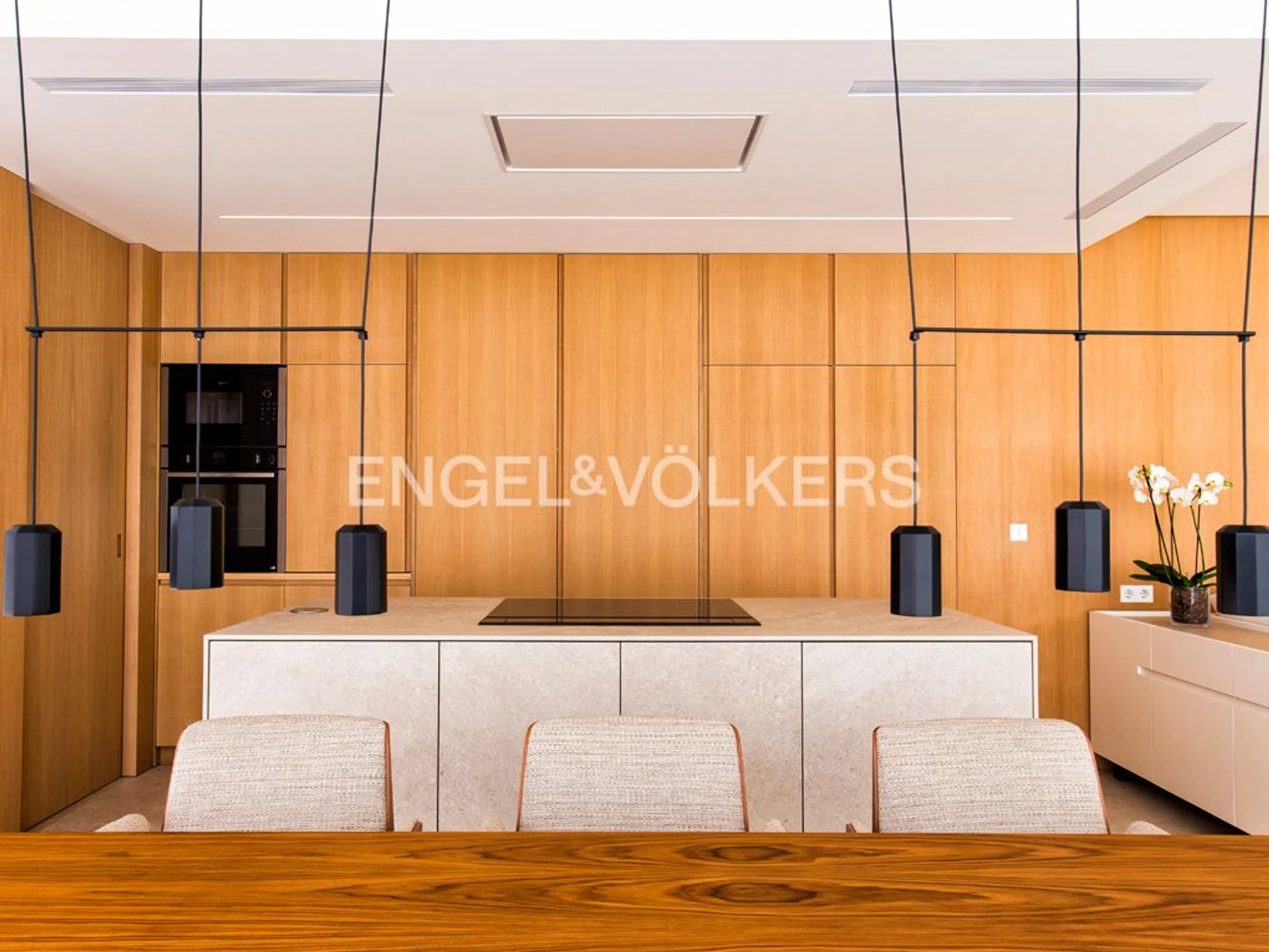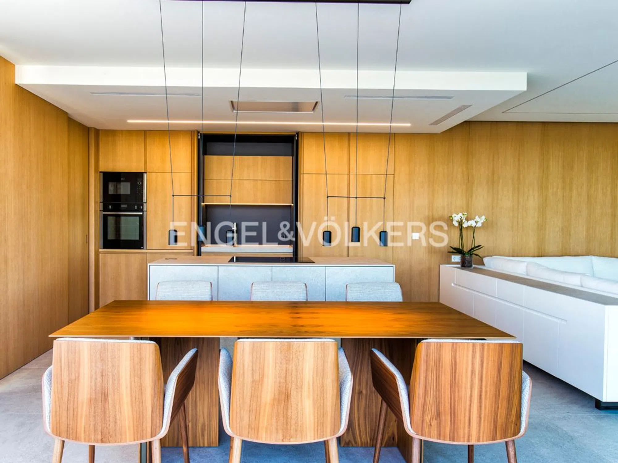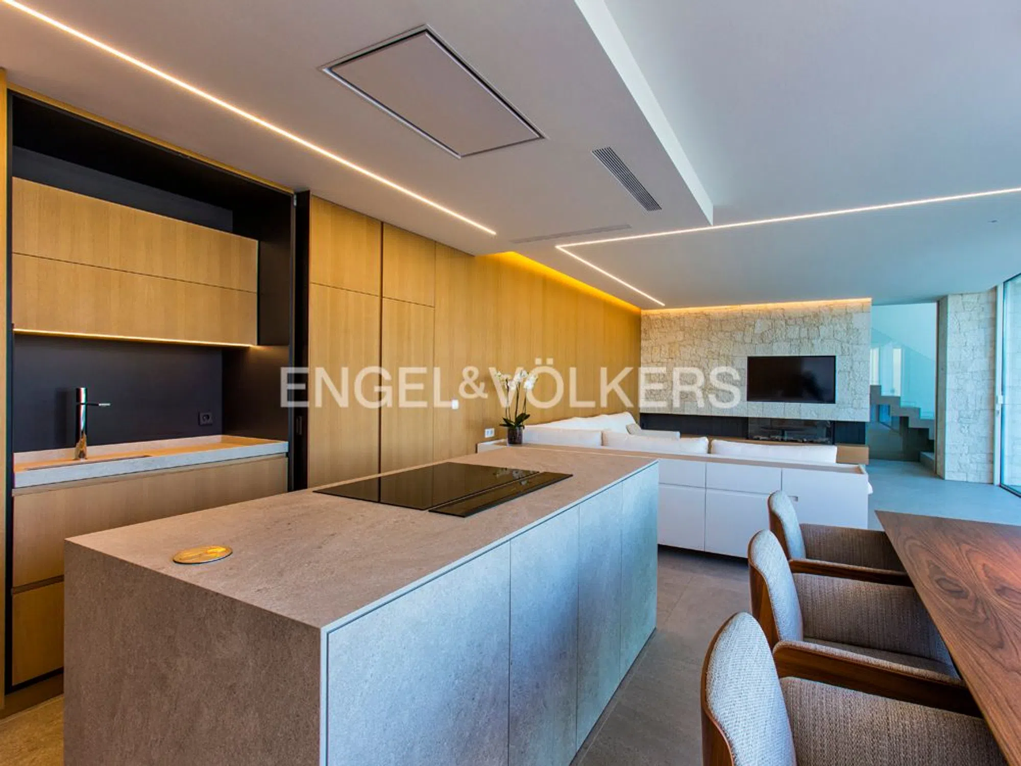 Villa moderna y muy lujosa de diseño contemporáneo en venta en Benissa Costa. Está situada en una zona residencial muy tranquila, a 600 metros de Playa La Fustera y a 750 metros de Cala Pinets, con fácil acceso a Moraira, Calpe y de todo tipo de servicios. La propiedad goza de impresionantes vistas al mar y una orientación sur. Está ubicada en una parcela llana de 800 m2 y tiene una superficie construida de vivienda de 355 m2 distribuida en 2 plantas + sótano de la siguiente manera: La planta principal cuenta con un hall de entrada impresionante, un amplio dormitorio con armarios empotrados y baño en-suite, un aseo de invitados, lavadero despensa, y un amplio espacio abierto que incluye salón, comedor y cocina con isla y chimenea de diseño. Este espacio se conecta con una terraza exterior de 150 m2 y una piscina infinity de forma rectangular climatizada de 42 m2, además de una zona de barbacoa equipada. La planta alta alberga un vestíbulo, dos dormitorios amplios con baños en-suite y una terraza privada, mientras que el sótano ofrece otro dormitorio con baño en-suite, una amplia zona de gimnasio, una zona de oficina, una sala polivalente y un garaje para dos vehículos. La villa destaca por su diseño funcional y vanguardista, con espacios orientados hacia el mar y una distribución que maximiza la amplitud visual. Equipada con muebles de diseño, suelo radiante y climatización por conductos, carpintería exterior Technal, domótica KNX, iluminación LED, entre otros detalles de alta calidad. Además, cuenta con un amplio estacionamiento exterior con pérgola para dos coches y un jardín con sistema de riego automático de bajo mantenimiento.