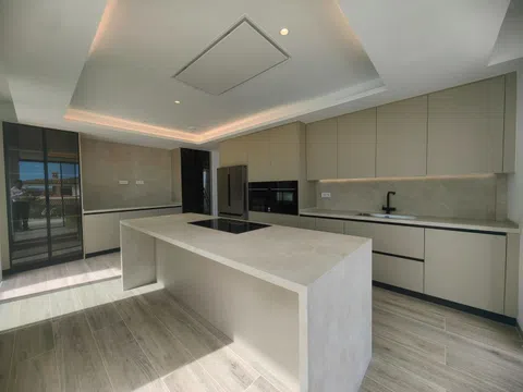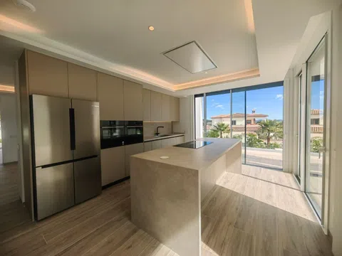 De open keuken is de droom van elke chef, volledig uitgerust met hoogwaardige apparaten van premium merken en voorzien van een elegante eiland met design afzuigkap, Silestone werkbladen en een glazen achterkant in bijpassende tinten.