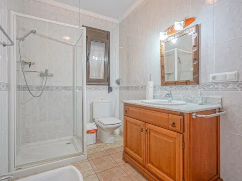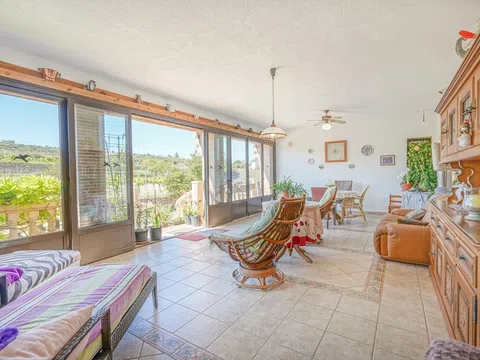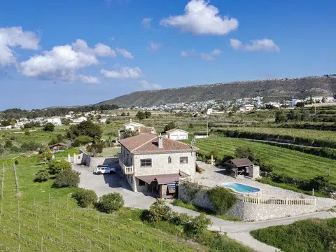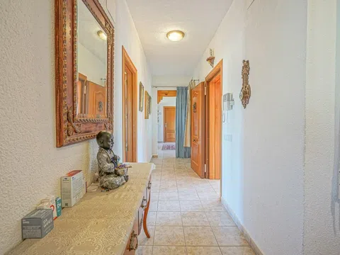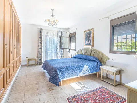 Deze prachtige vrijstaande woning bevindt zich op een perceel van meer dan 10.000 m² temidden van de vallei tussen stad en stad. Er zijn panoramische uitzichten over het glooiende landschap tot aan de berg Montgó van stad. Aan de zuidkant van de villa is er een grote naya met een kachel, grenzend aan een lange hal waar een keuken, eetkamer, woonkamer met kachel, gastentoilet en een tweepersoonsslaapkamer te vinden zijn. De hal eindigt in een tweepersoonsslaapkamer met en-suite badkamer en balkon. Vanuit de keuken is er toegang tot een groot balkon. Naast de keuken is ook een wasruimte.