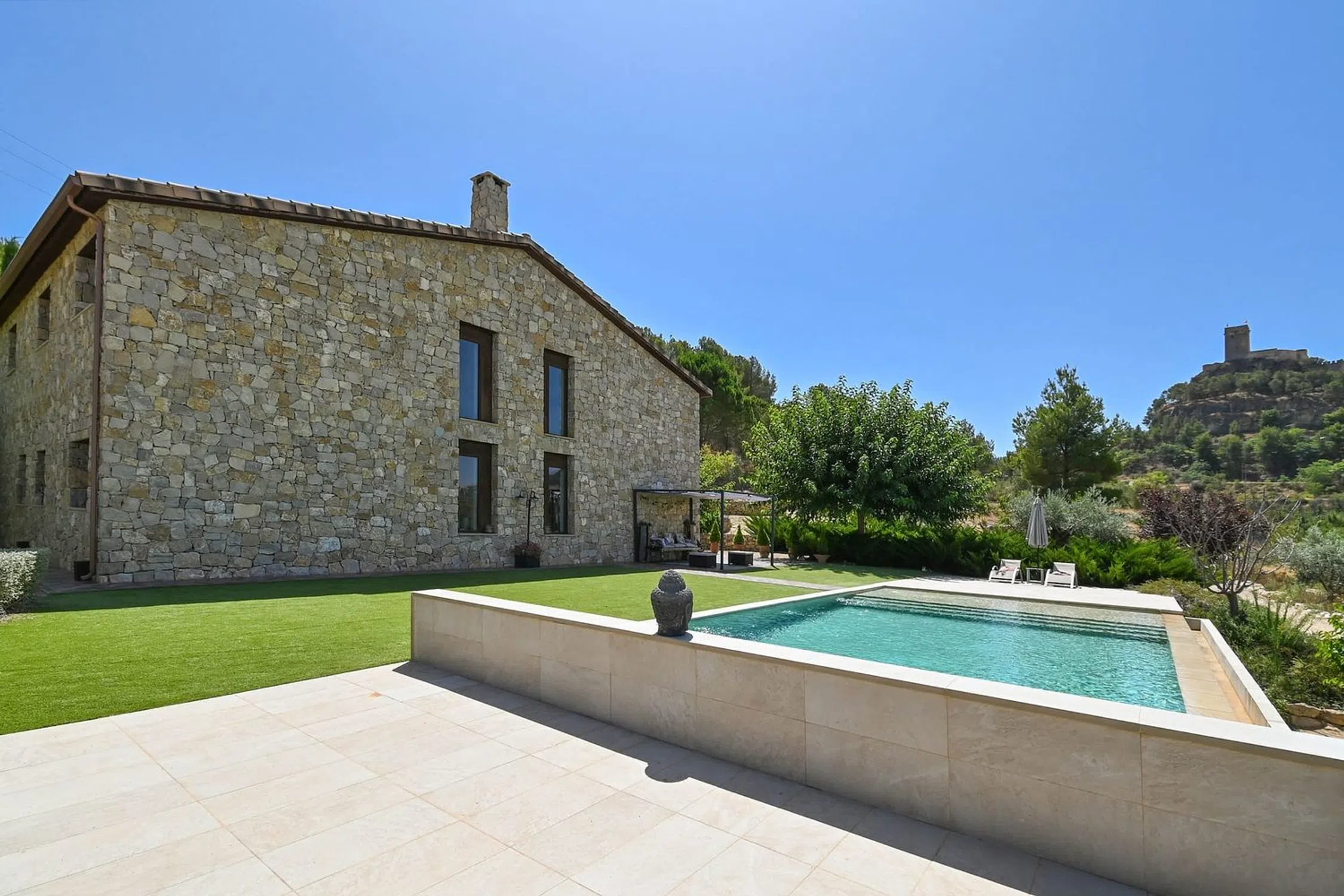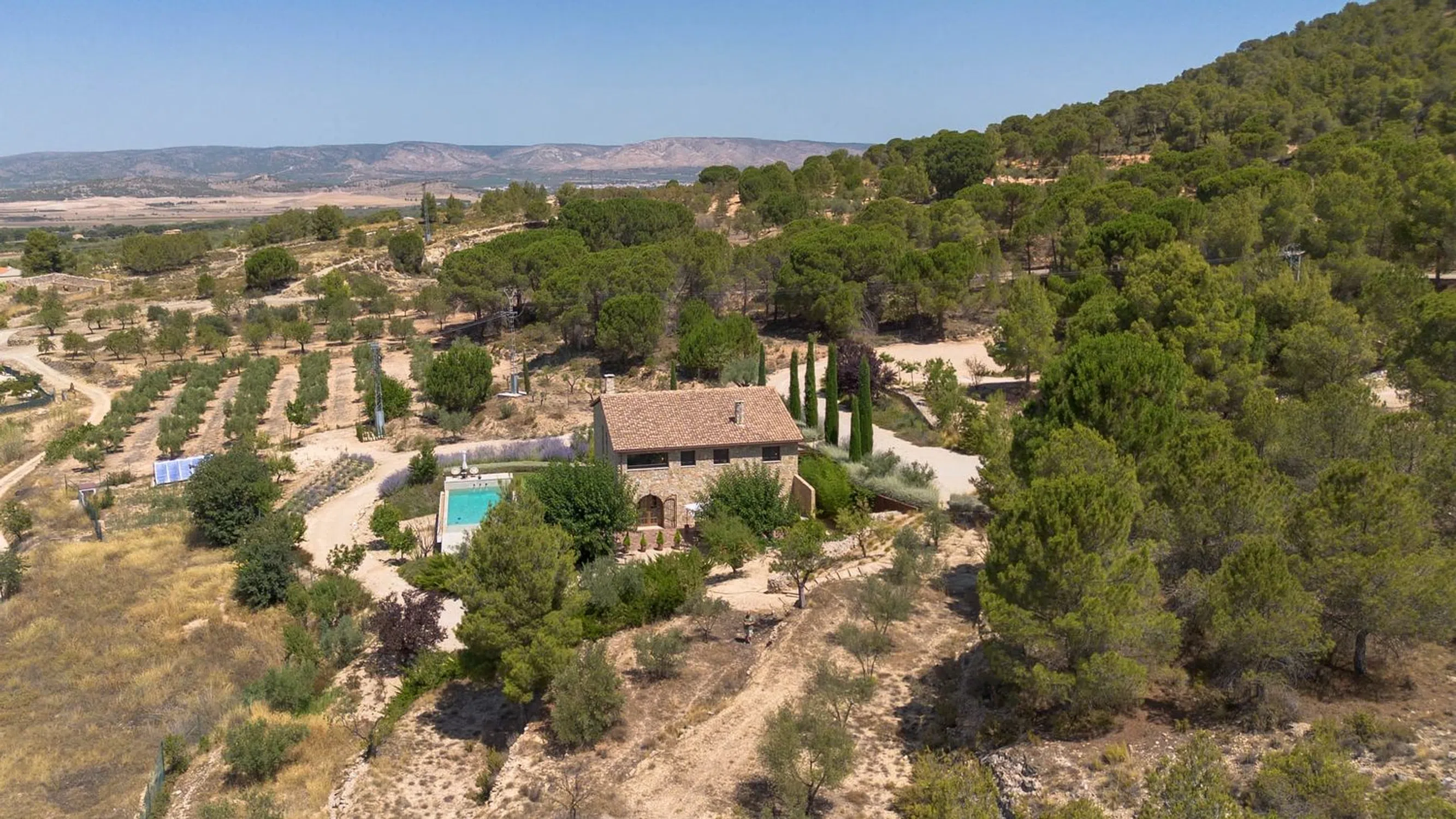 Finca en Biar – Tradición Reinterpretada para la Vida Moderna Una Celebración Arquitectónica del Espacio, el Patrimonio y las Grandes Reuniones Diseñada y construida en 2018 por su propietario arquitecto, esta extraordinaria finca reinterpreta el carácter atemporal de las fincas tradicionales españolas con la escala, la artesanía y la comodidad del lujo moderno. Con siete dormitorios, amplios espacios para el entretenimiento e impresionantes vistas del histórico Castillo de Biar, la propiedad está concebida como un refugio privado y un escenario para reuniones inolvidables. Bienvenido a Su Finca Ubicada en una parcela aterrazada de 12.000 m² completamente cerrada, la entrada es tan impresionante como la propia casa. Un majestuoso camino bordeado de cipreses conduce a un gran patio delantero con capacidad para más de una docena de coches, marcando la pauta para la experiencia arquitectónica en su interior. Planta Superior – Alas Privadas con Vistas al Castillo Desde la entrada principal, una galería en el entresuelo da a la imponente sala de estar de abajo, con una espectacular pared de biblioteca de suelo a techo como punto focal. La galería sirve como pasillo a las dependencias privadas: Ala derecha: tres dormitorios y un aseo con ducha para invitados Ala izquierda: una suite principal con vestidor, baño en suite y vistas directas al castillo, además de un dormitorio adicional Planta Baja – Escala, Luz y Calidez La sala de estar de doble altura, anclada por una chimenea y enmarcada por la pared de la biblioteca, captura la luz natural desde la mañana hasta la noche, creando un ambiente a la vez grandioso y acogedor. También en este nivel: Un baño romano para la máxima relajación Un segundo dormitorio principal Una sala de usos múltiples, ideal como dormitorio, oficina en casa o estudio Un aseo con ducha adicional para invitados La Cocina – Diseñada para Recibir Un sueño para el chef, la amplia cocina combina escala con precisión, con una vasta isla y electrodomésticos premium Liebherr y Bosch: 2 fogones y 2 hornos 3 frigoríficos y 1 vinoteca 2 lavavajillas Perfectamente diseñada para reuniones, se conecta a la perfección con el comedor formal con capacidad para 14 personas, mientras que una cocina de verano al aire libre con parrilla y capacidad para ocho personas amplía la experiencia culinaria al aire libre. Vida al Aire Libre – Un Escenario Mediterráneo La amplia terraza con piscina y zona de estar se abre a amplias vistas del valle y al iluminado Castillo de Biar, un telón de fondo mágico tanto de día como de noche. El jardín paisajístico en terrazas refleja el patrimonio agrícola de la región y ofrece una abundancia de higos, cerezas, almendras, aguacates, granadas, limones, uvas y hierbas aromáticas. Una discreta iluminación nocturna transforma el jardín en un brillante oasis mediterráneo. Accesibilidad y Comodidad Acceso sin escalones en toda la planta baja Discreta entrada que se extiende directamente hasta la entrada de la cocina, ideal para entregas o para la vida multigeneracional Características de Lujo de un Vistazo 7 dormitorios Parcela aterrazada de 12.000 m² cerrada Gran patio de estacionamiento para numerosos coches Tecnología de hogar inteligente Calefacción y refrigeración por suelo radiante Baño romano Acabados Premium Porcelanosa Electrodomésticos Premium (Liebherr, Bosch) Un Hogar para Hacer Historia Esta excepcional finca es más que una residencia: es una celebración del patrimonio, la conexión y el confort moderno. Diseñada para aquellos que valoran la tradición y la escala, le invita a vivir no sólo con lujo, sino con legado. Concertar su visita privada hoy mismo y adéntrese en una finca donde la historia y la vida moderna convergen. Sobre la Zona – Biar Enclavado en la región interior de Alicante, Biar es un pueblo de notable encanto, cultura y autenticidad. Su castillo del siglo XII, encaram