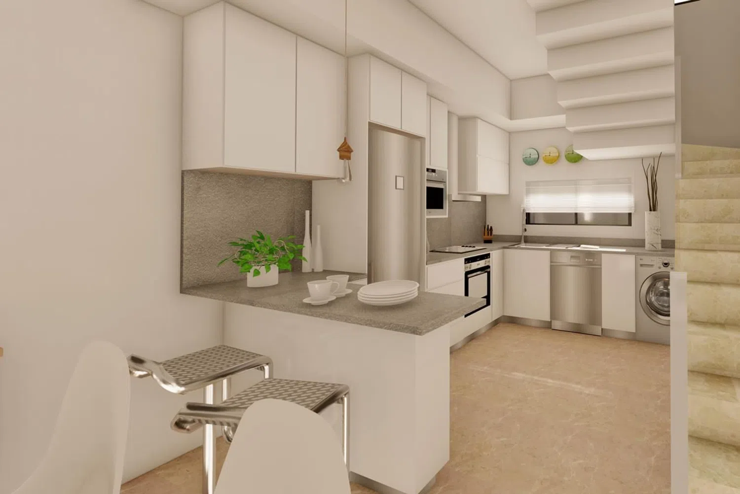 Het interieur op de begane grond beschikt over een ruime woon-eetkamer verbonden met een Amerikaanse keuken, een tweepersoons slaapkamer en een aparte badkamer met douche. Op de bovenverdieping zijn er twee tweepersoons slaapkamers, beide met en-suite badkamers met douche. De villa is voorzien van ingebouwde kasten in alle kamers, airconditioning, een terras en een tuin.