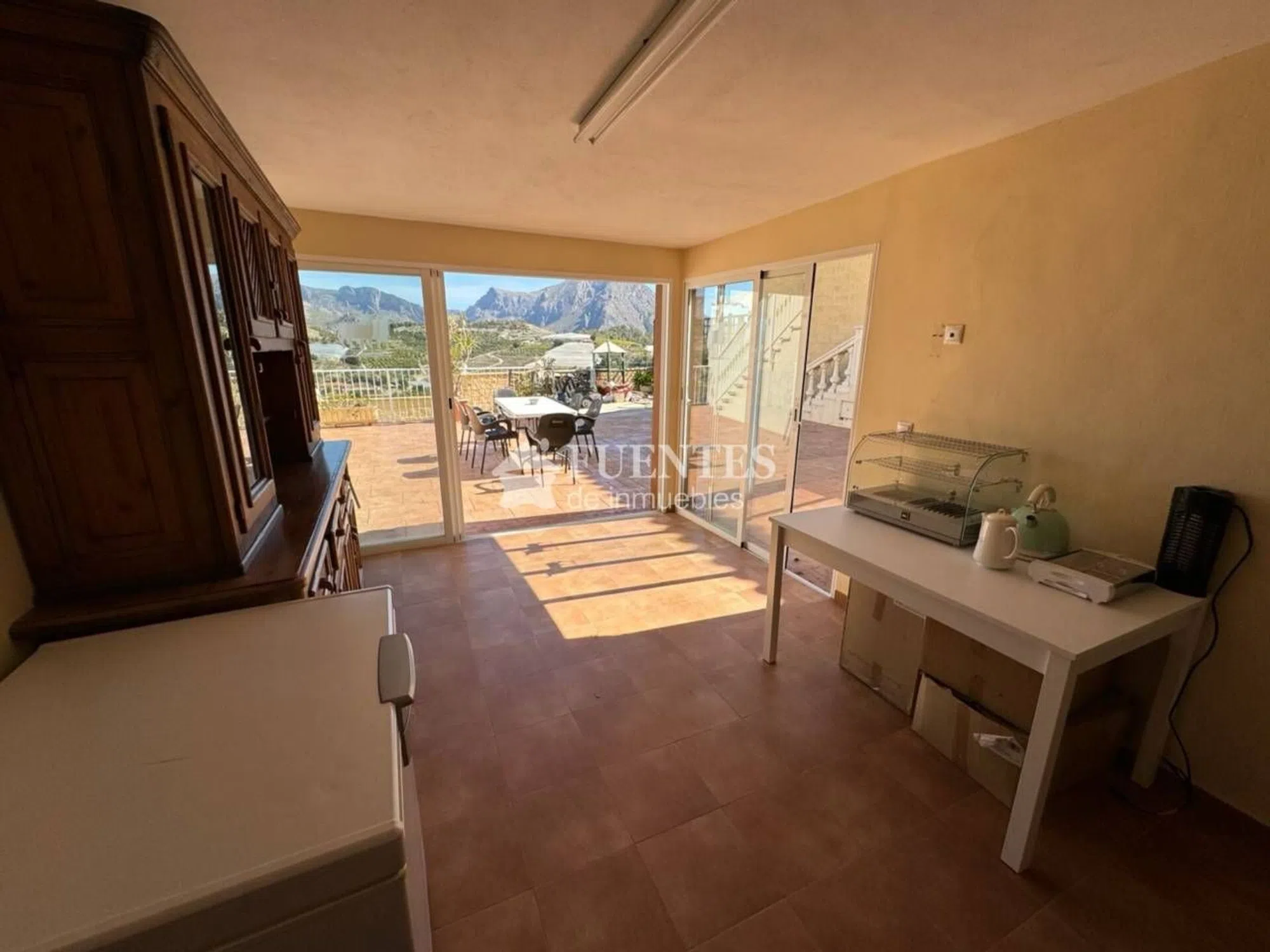 Fuentes de Inmuebles presenta este chalet con LICENCIA VACACIONAL, en una zona tranquila y rodeada de naturaleza, con vistas a las montañas y al mar, de diseño rústico y en perfecto estado de conservación. * DISTRIBUCIÓN * El acceso a la parcela es independiente e incluye una zona de aparcamiento, desde donde se accede a la zona del barbacoa o la "planta de acceso". 3 PLANTAS: PLANTA ACCESO: - COCINA independiente. - Amplio SALÓN-COMEDOR. - Comunica con la piscina y una terraza y zona de relax con impresionantes vistas. - 2 DORMITORIOS dobles. - 2 BAÑOS completos. PLANTA SUPERIOR: - 1 DORMITORIO DOBLE extra grande con 1 BAÑO COMPLETO interior. - 1 DORMITORIO INDIVIDUAL con litera. - 1 BAÑO completos. - 1 TERRAZA con vistas. PLANTA INFERIOR / ZONA OCIO: - SALA de JUEGOS con billar, dardos, juegos de mesa y zona de relax. - BARRA de BAR al estilo tablao flamenco. ZONA EXTERIOR: - PISCINA con zona Chill Out. - Amplia terraza en altura como zona de SOLARIUM. - MERENDERO junto a la piscina. - 1 estancia con PARRILLA y HORNO ideal para BARBACOAS - 1 estancia con COCINA independiente - 1 BAÑO junto a la zona de la barbacoa y la cocina. ¡Consúltanos, estaremos encantados de ayudarte! AVISO LEGAL: La información descrita es meramente informativa, orientativa y no vinculante pudiendo contener algún error. Desde 1998 FUENTES de inmuebles ha cumplido miles de sueños en Alicante. Todos los asesores inmobiliarios de FUENTES son personas altamente cualificadas. Su único deber es buscar la satisfacción de sus nuestros clientes. Contamos con un servicio de valoración por el cual sabrá el valor real de mercado de su vivienda, por lo tanto, no perderá ni tiempo ni dinero. Contamos con la sección de financiación dando al cliente un abanico de opciones para obtener la mejor financiación. También si no hay muchos recursos podemos llegar hasta el 100% para obtener su hipoteca. Contamos con un SERVICIO PREMIUM INMOBILIARIO por el cual su vivienda la venderemos en tiempo record y al mejor precio. Para más información sobre este servicio a propietarios puede concertar una cita en nuestras oficinas y estaremos encantados de mostrarle nuestro servicio. En todo momento le acompañamos en la operación a realizar y en nada estaremos firmado en notaria. Nos encontramos en: c/Devesa nº2 esq Maestro Alonso- (junto Plz. América) Plz. De España nº1 esq. a c/San Vicente (Plz. de Toros) C/ San Mateo, 12 Queremos ayudarte.