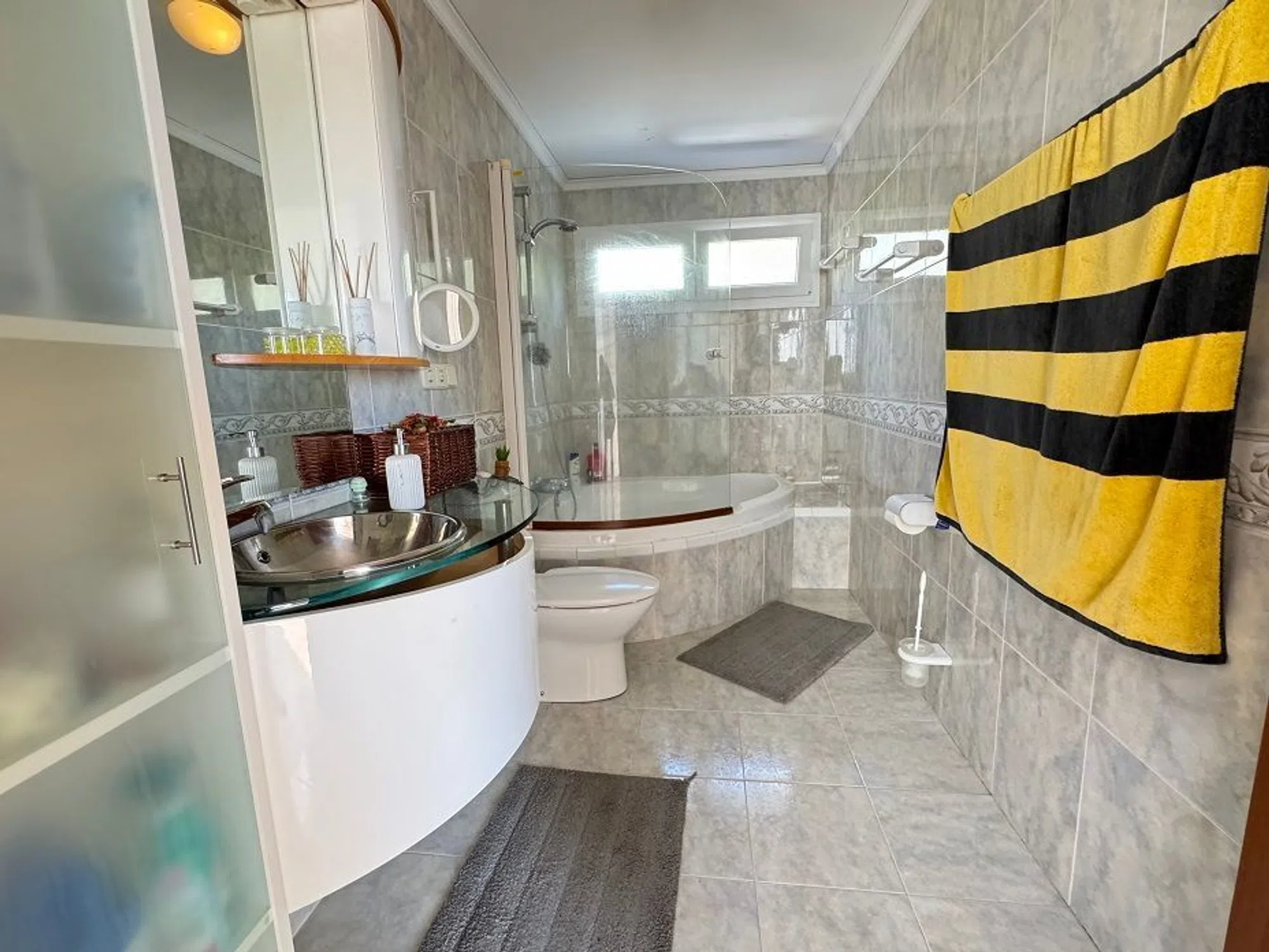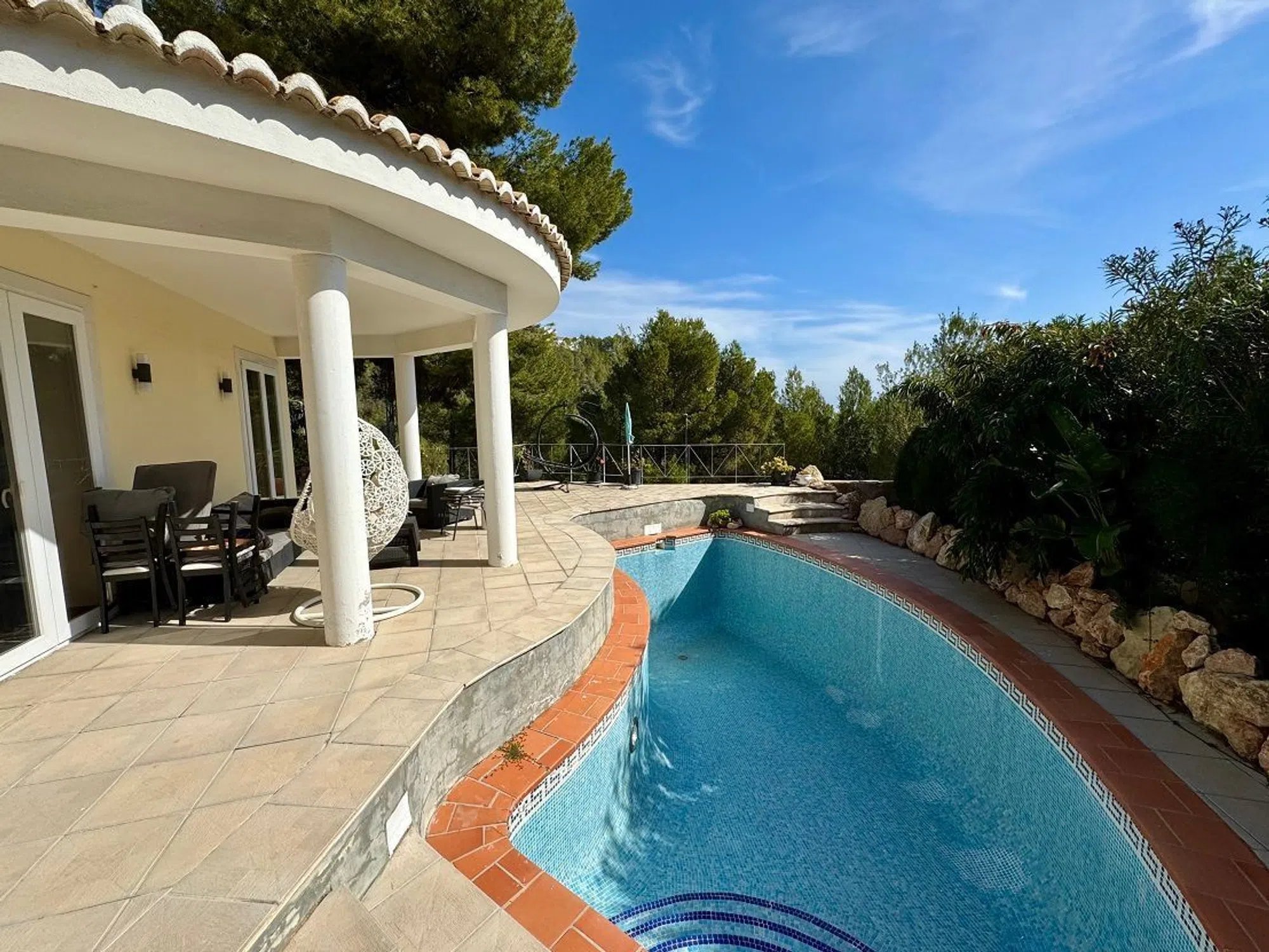 Esta encantadora casa, fue construida en el año 2000 sobre una parcela de 964 m², ofrece un total de 3 dormitorios y 3 baños. La planta principal, destaca por sus techos altos y una preciosa galería, accediendo a la planta baja encontramos un luminoso y amplio salón-comedor con mucha luz y salida a la terraza y la piscina, además una cocina independiente, . En este mismo nivel se encuentra un dormitorio con baño en suite, así como un baño adicional para invitados. En el piso superior, se encuentran dos dormitorios más y un baño, además de una terraza azotea con impresionantes vistas al mar. Tiene aire acondicionado frío-calor y suelo radiante, contando con un sistema de paneles solares de última generación, lo que permite que el consumo de electricidad sea prácticamente nulo. ¡Una excelente oportunidad! [IW].