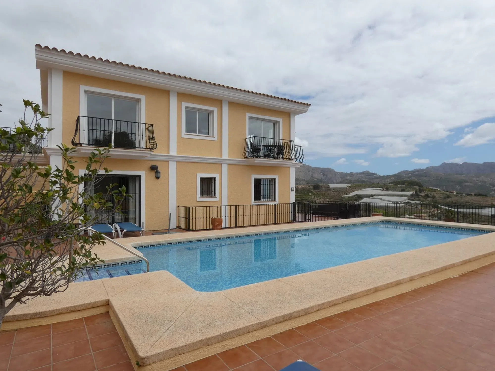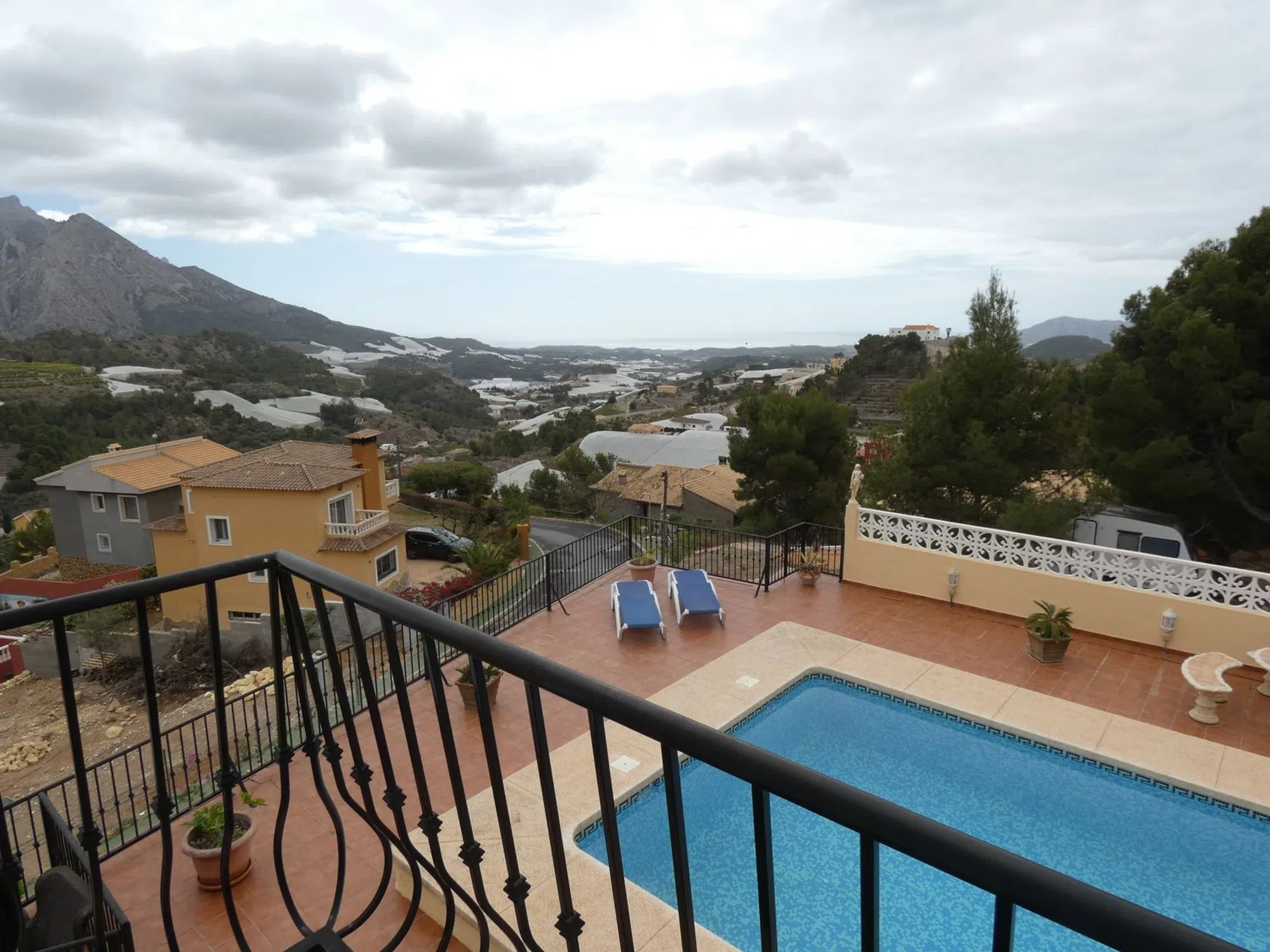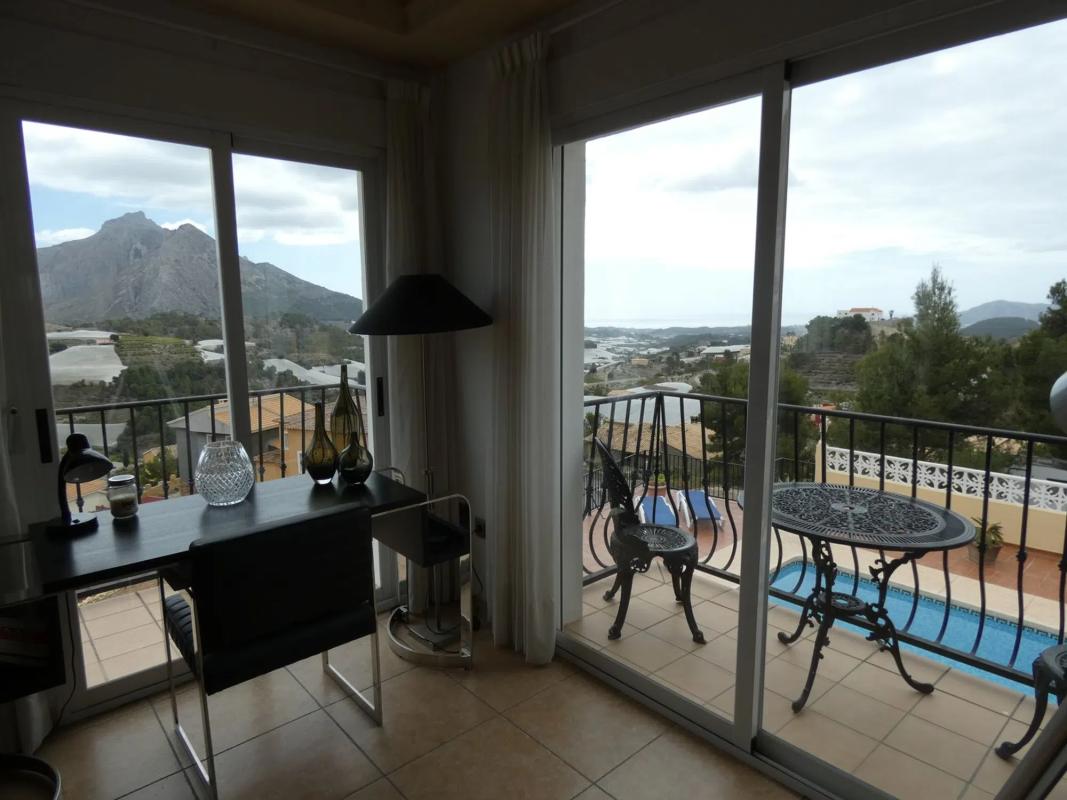 xquisite abode in the beautiful Urbanization Almedia, Callosa d'En Sarrià. A must to view in order to truly appreciate this delectable piece of architectural magnificence! The first question that may need be asked is the following: is this house ready to walk into? Well, to affirm this would be a major understatement, for this house, refined and perfected to the highest extents of quality, will undoubtedly sweep you off your feet and take you unto a unique sense of enubilation. Suffice to say, it is a generous property, opulent in style as much as in metrage: the house soars far beyond the two hundred square metre range, and each floor is built to amaze. In total there are three impeccable bedrooms and just as many bathrooms, although there is sufficient space to add more to the mix, being especially bountiful its vast underbuild, wherein you could easily emplace a fully equipped guesthouse, or home cinema, or gym - or whatever your heart desires! The plot is also generous, and is fabulously distributed and wisely emplaced: it has multiple facings, but the pool area is layered in such a manner that it receives copious amounts of sun throughout the day. There is also ample space for parking and, since it conforms a multiplicity of terraced areas, is ever so easy to maintain. The house is fully equipped with all mod cons throughout, underfloor heating and fireplace in lounge. So delay no further your visit to this beauteous home, for it will NOT disappoint!