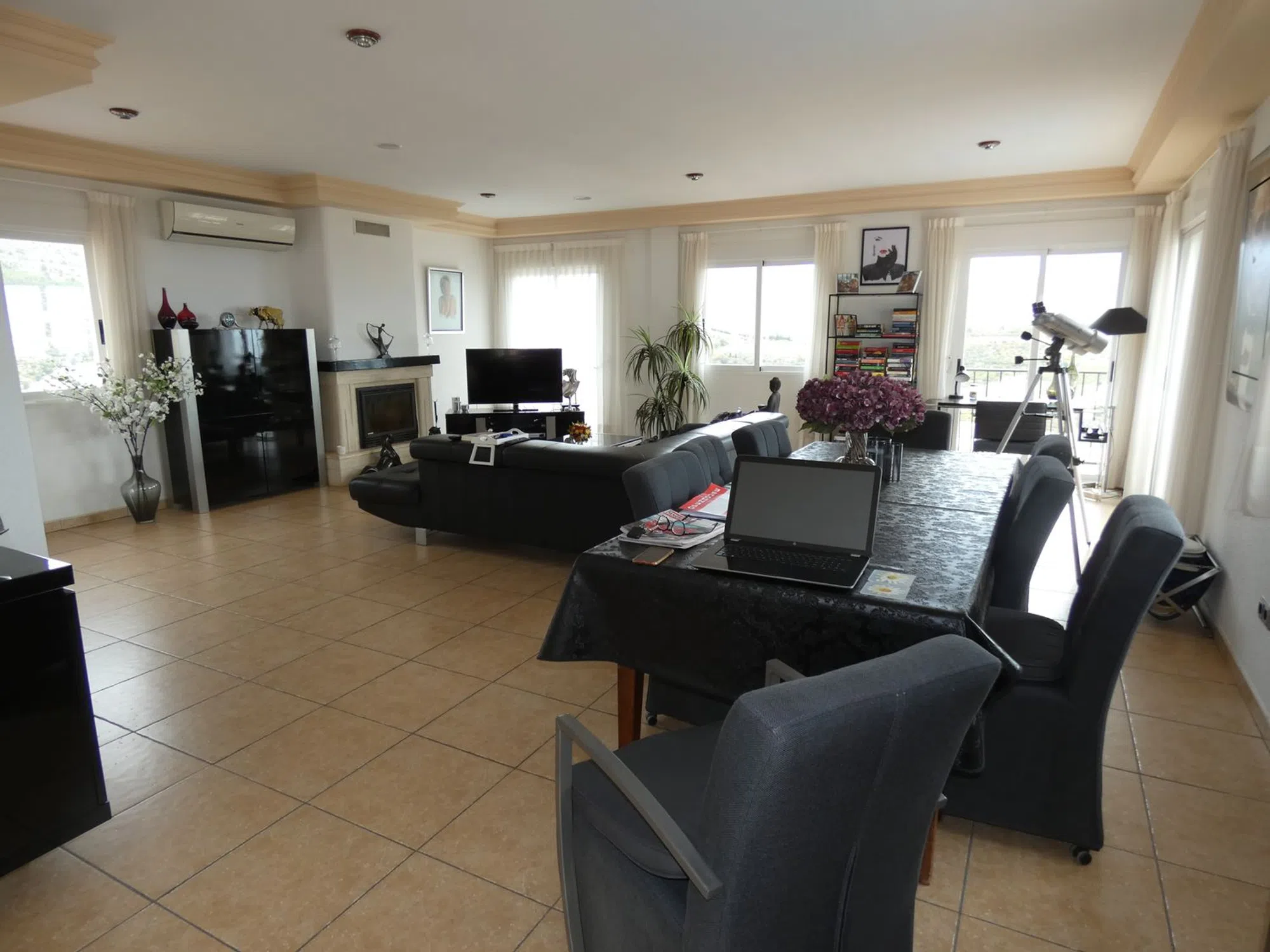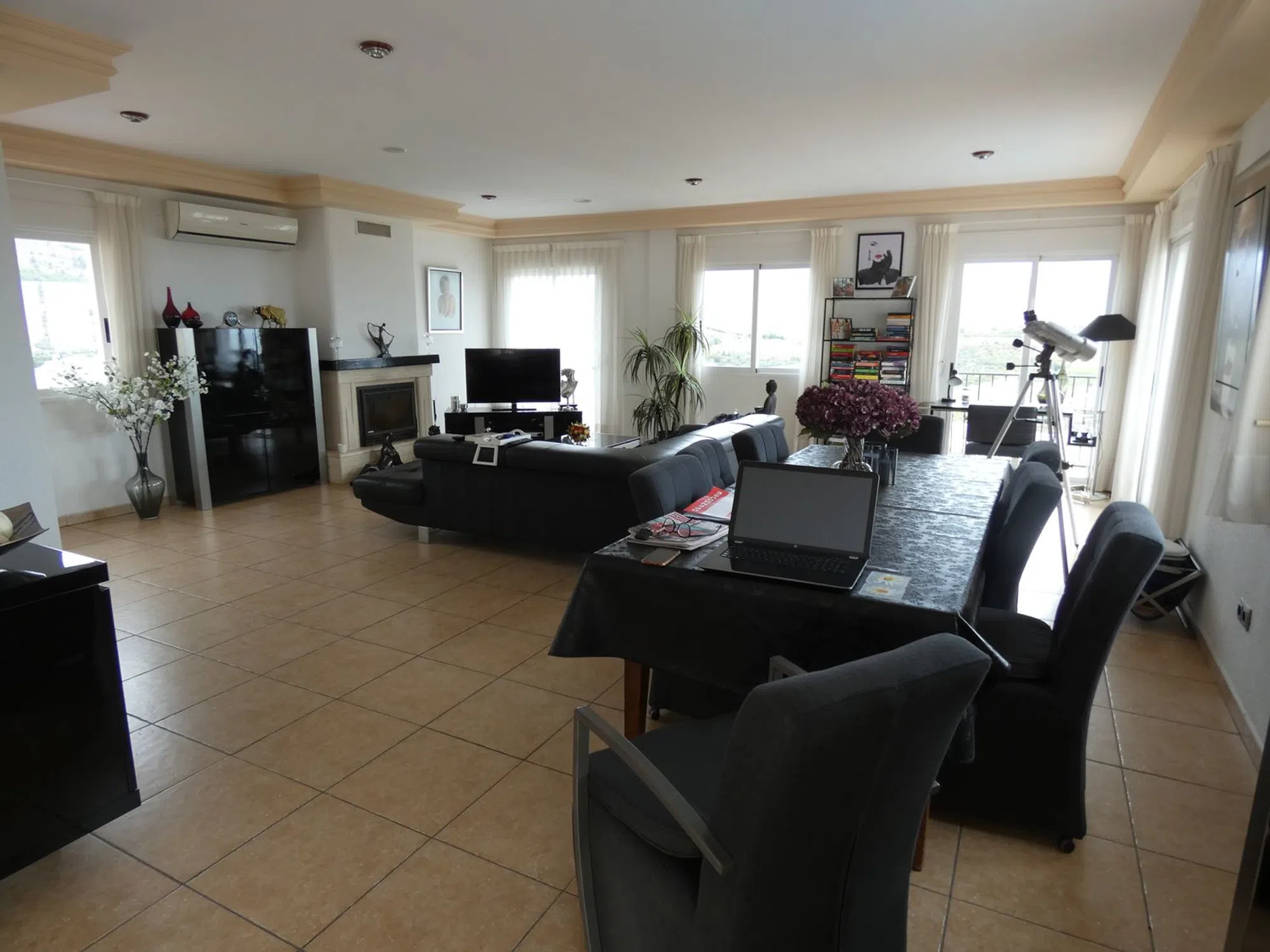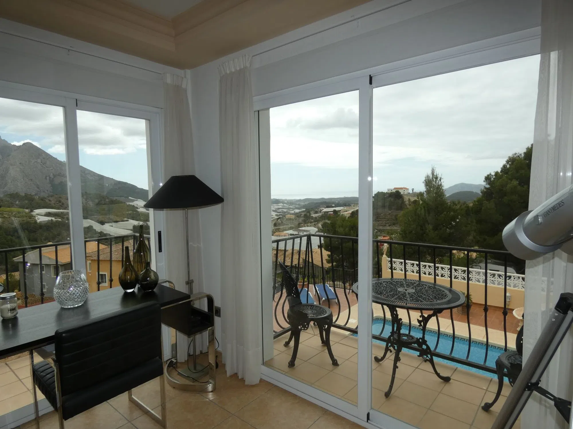 xquisite abode in the beautiful Urbanization Almedia, Callosa d'En Sarrià. A must to view in order to truly appreciate this delectable piece of architectural magnificence! The first question that may need be asked is the following: is this house ready to walk into? Well, to affirm this would be a major understatement, for this house, refined and perfected to the highest extents of quality, will undoubtedly sweep you off your feet and take you unto a unique sense of enubilation. Suffice to say, it is a generous property, opulent in style as much as in metrage: the house soars far beyond the two hundred square metre range, and each floor is built to amaze. In total there are three impeccable bedrooms and just as many bathrooms, although there is sufficient space to add more to the mix, being especially bountiful its vast underbuild, wherein you could easily emplace a fully equipped guesthouse, or home cinema, or gym - or whatever your heart desires! The plot is also generous, and is fabulously distributed and wisely emplaced: it has multiple facings, but the pool area is layered in such a manner that it receives copious amounts of sun throughout the day. There is also ample space for parking and, since it conforms a multiplicity of terraced areas, is ever so easy to maintain. The house is fully equipped with all mod cons throughout, underfloor heating and fireplace in lounge. So delay no further your visit to this beauteous home, for it will NOT disappoint!