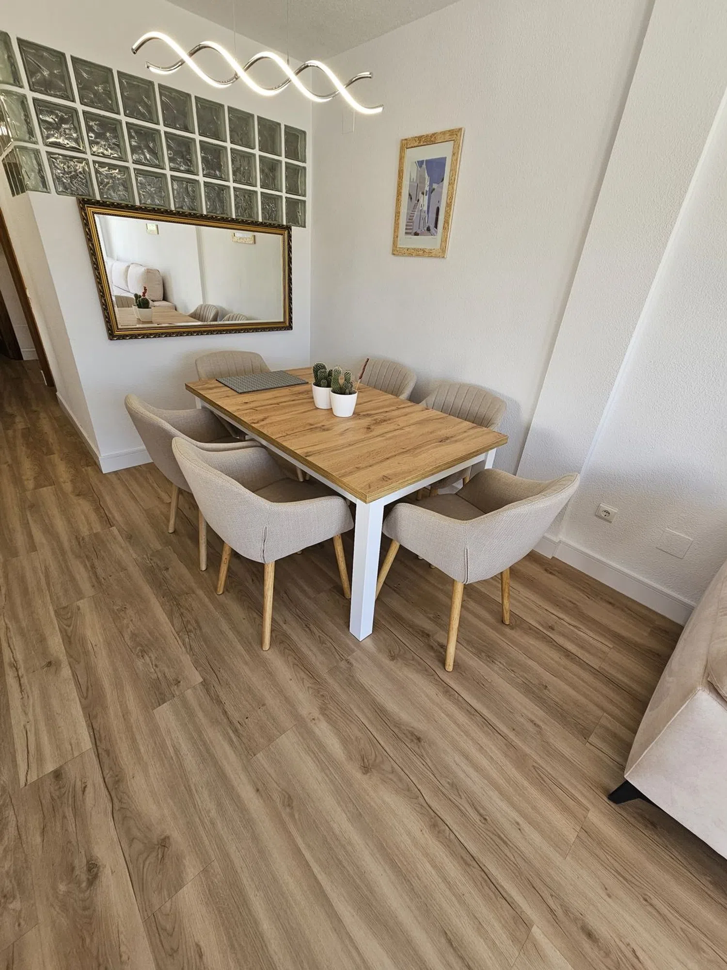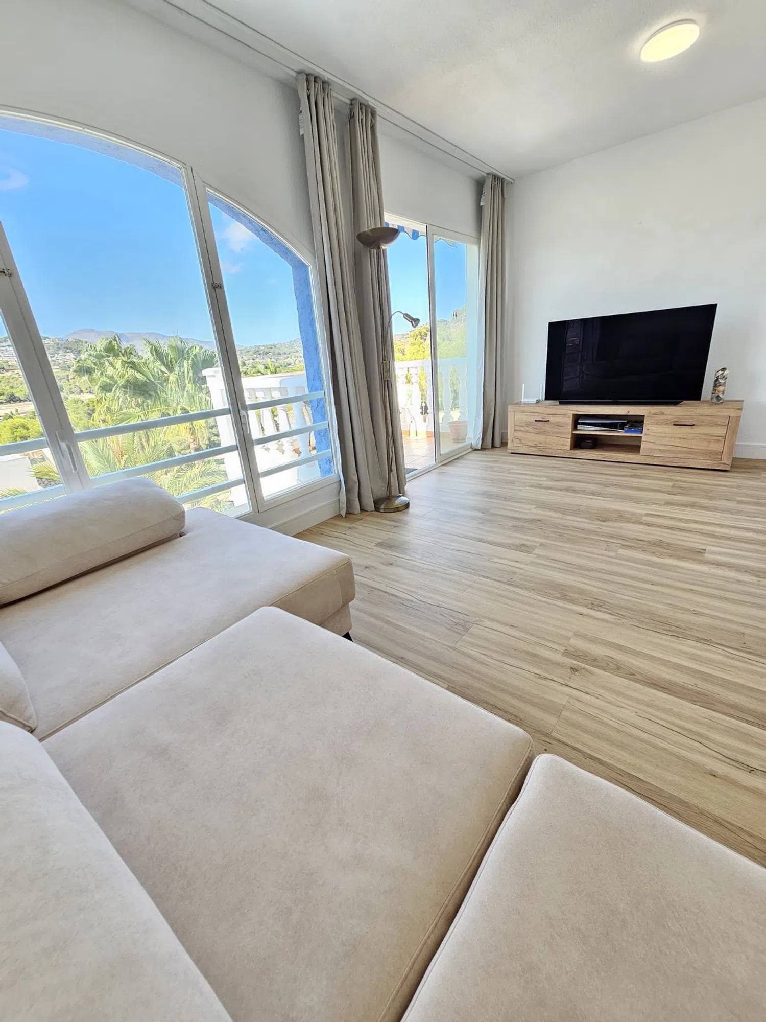 Dit lichte duplex biedt drie gezellige slaapkamers en twee complete badkamers, evenals een volledig uitgeruste aparte keuken. De ruime woon-eetkamer geeft toegang tot een terras, en een goed ontworpen solarium met barbecue, perfect voor het genieten van het mediterrane klimaat. Dit solarium, gedeeltelijk overdekt, beschikt over water- en elektriciteitsaansluiting, waardoor het een ideale ruimte is voor bijeenkomsten en ontspanning.