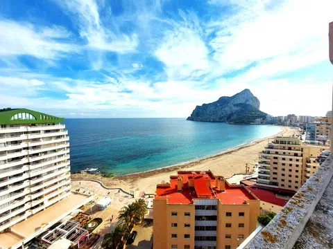 Descubre este impresionante ático dúplex en primera línea de la Playa de la Fossa, una ubicación privilegiada en Calpe. Situado en la planta 13, esta exclusiva vivienda de 180 m² cuenta con 3 amplios dormitorios y 3 baños, diseñada para ofrecer el máximo confort. Lo más destacado de este hogar son sus tres terrazas, dos de ellas de gran tamaño, que suman 120 m² y te permitirán disfrutar de unas vistas panorámicas inigualables al Mediterráneo, el Peñón de Ifach, Las Salinas y la montaña. La vivienda está lista para entrar a vivir e incluye plaza de parking exterior en la urbanización. Además, el edificio dispone de una piscina comunitaria, ideal para refrescarse y relajarse en un entorno privilegiado. Ubicación inmejorable, a solo unos pasos de la playa y rodeado de todos los servicios esenciales: cafeterías, restaurantes, supermercados y mucho más. Una oportunidad única para vivir frente al mar. Contáctanos para más información o para concertar una visita.