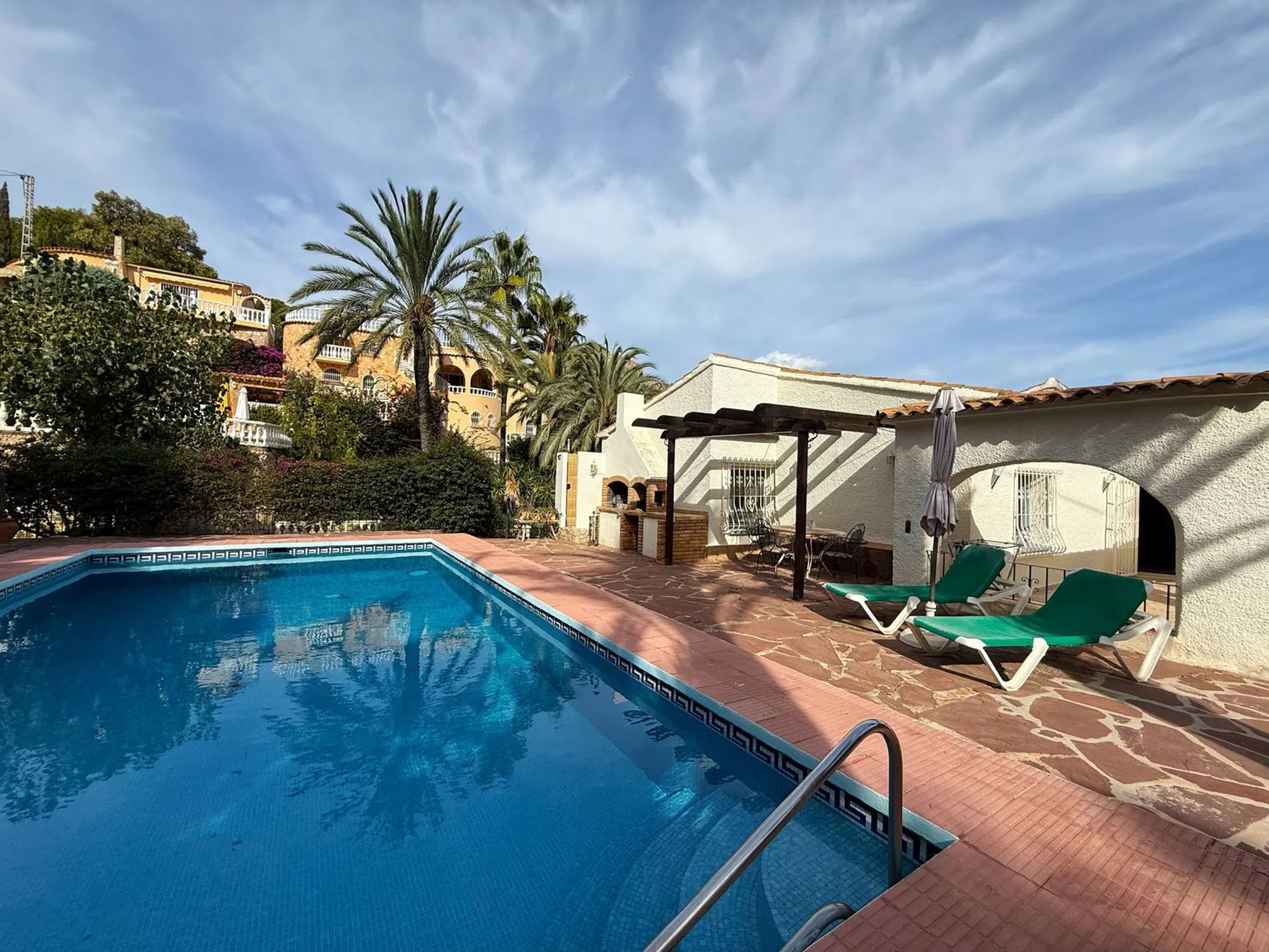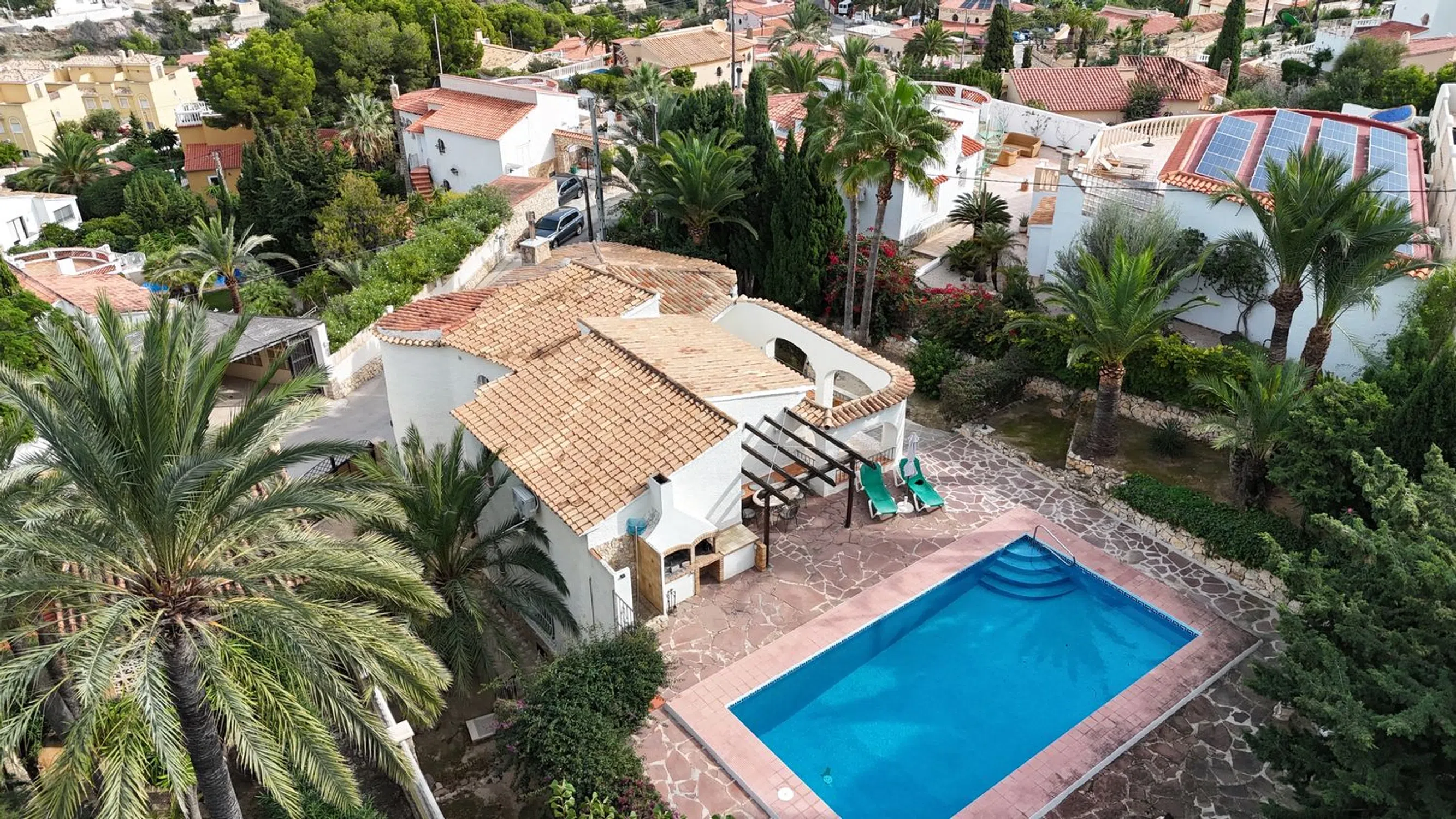 Descubre la verdadera armonía del estilo de vida mediterráneo en esta elegante villa situada en la prestigiosa zona de Maryvilla, Calpe. Con una superficie total de 220 m², esta residencia combina confort, privacidad y estilo, creando el espacio perfecto para disfrutar de la vida junto al mar. La villa ha sido diseñada con atención a cada detalle y ofrece cuatro amplios dormitorios y tres baños modernos, proporcionando comodidad a toda la familia. El corazón de la vivienda es un gran salón con chimenea, que llena el espacio de calidez y crea una atmósfera acogedora y hogareña. En el exterior, el encanto continúa con un jardín bien cuidado, piscina privada y zona de aparcamiento para dos vehículos — todo pensado para ofrecer el equilibrio perfecto entre belleza y funcionalidad. Además, la propiedad cuenta con tres entradas independientes, lo que la convierte en una opción ideal para familias, invitados o alquiler vacacional. Ubicada en una de las zonas más tranquilas y pintorescas de Maryvilla, esta villa combina la proximidad al mar, la montaña y todos los servicios urbanos — todo lo necesario para disfrutar plenamente de la vida en la Costa Blanca.