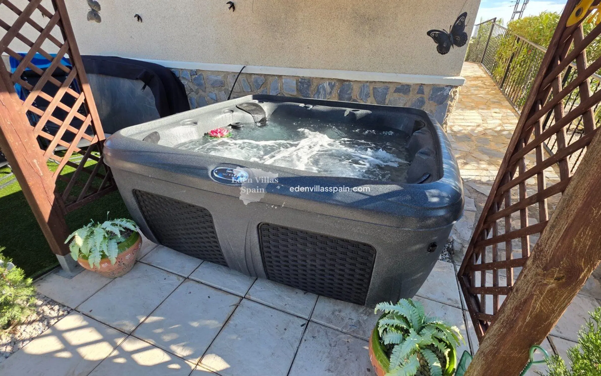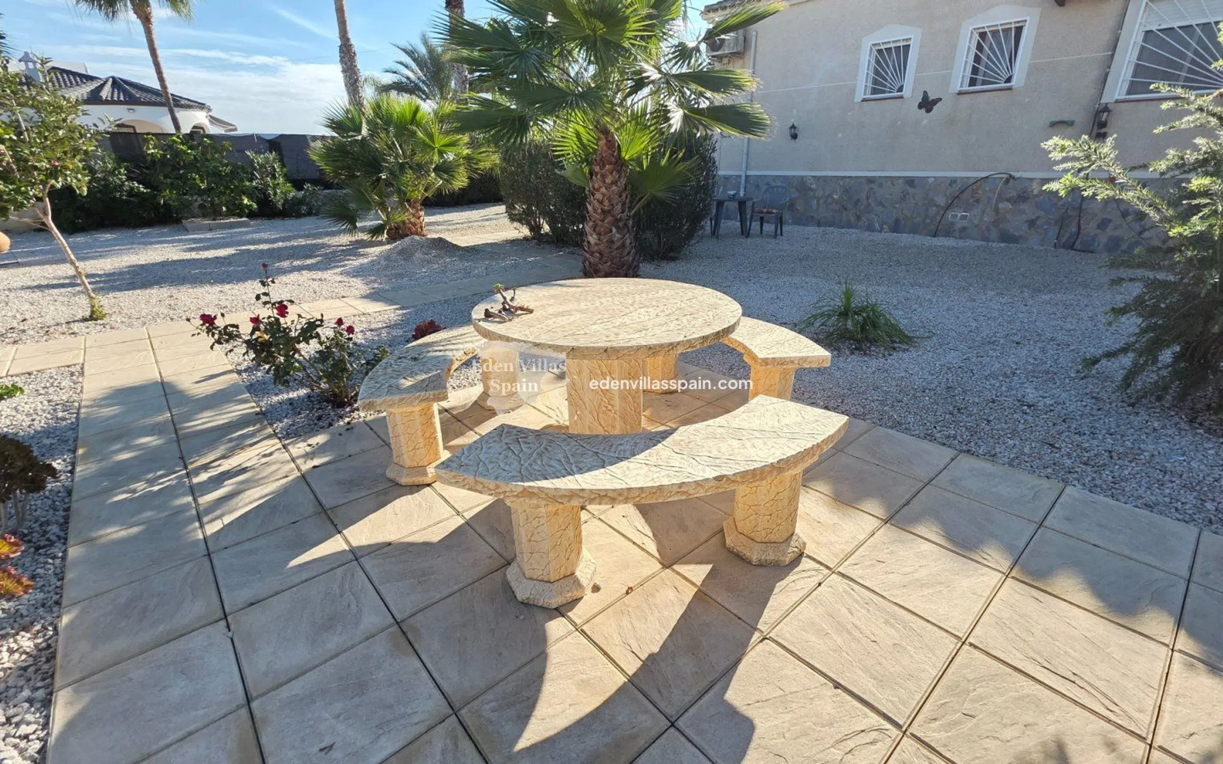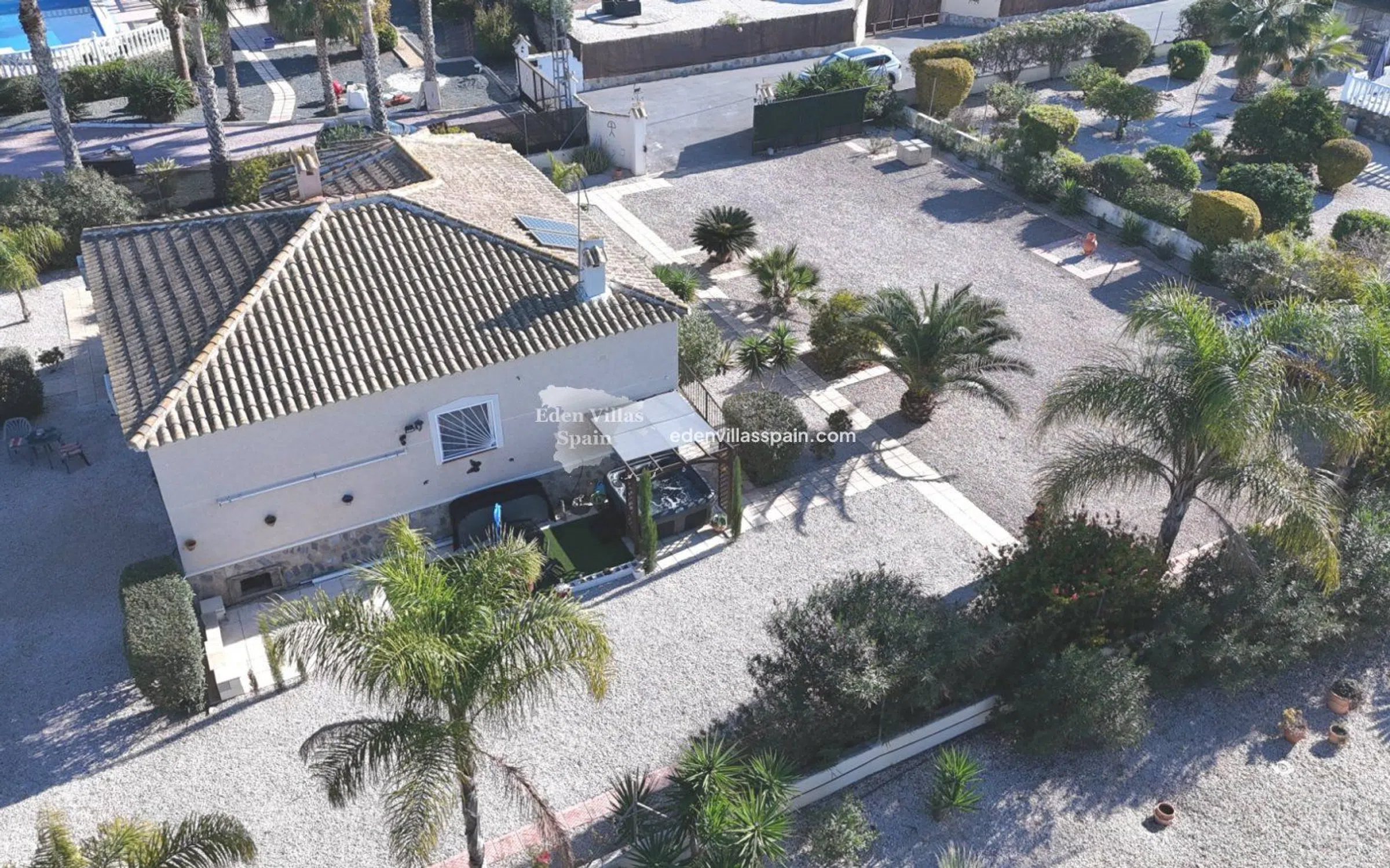 Esta preciosa villa independiente cuenta con una amplia parcela con un impresionante jardín y se encuentra en una calle sin salida, en una zona muy tranquila. La casa de 120 m² consta de un amplio salón con chimenea y aire acondicionado frío/calor, 3 dormitorios dobles con armarios empotrados (dos de ellos con aire acondicionado frío/calor), 2 baños reformados (uno en suite), cocina totalmente equipada con electrodomésticos y terraza arqueada con bonitas vistas y rampa. La propiedad se vende completamente amueblada. La parcela de 1.389 m² es llana y está completamente vallada, y cuenta con jardines con terrazas con palmeras, árboles frutales, plantas y árboles ornamentales. En el jardín hay un jacuzzi con pérgola y un trastero. Otras características incluyen luz y agua de red, aire acondicionado frío/calor, ventiladores de techo en uno de los dormitorios, electrodomésticos en la cocina, portón eléctrico, internet de fibra óptica, antena parabólica, muebles incluidos y fosa séptica ecológica. La propiedad se encuentra a 5 minutos en coche de Catral, un pueblo del interior de la provincia de Alicante, a 15 minutos de la costa, en la Vega Baja. Catral cuenta con todo lo necesario para el día a día: numerosas tiendas, supermercados, restaurantes, bares/cafeterías, carnicería, centro médico y deportivo, mercado interior, colegios, veterinarios, tiendas de mascotas, peluquerías, bricolaje, farmacias, bancos, autopista.. . y a menos de 20 minutos del aeropuerto internacional de Alicante y a 15 minutos de las hermosas playas de la Costa Blanca.