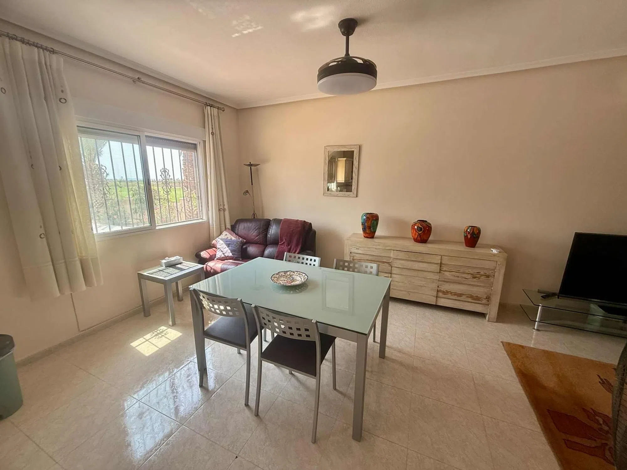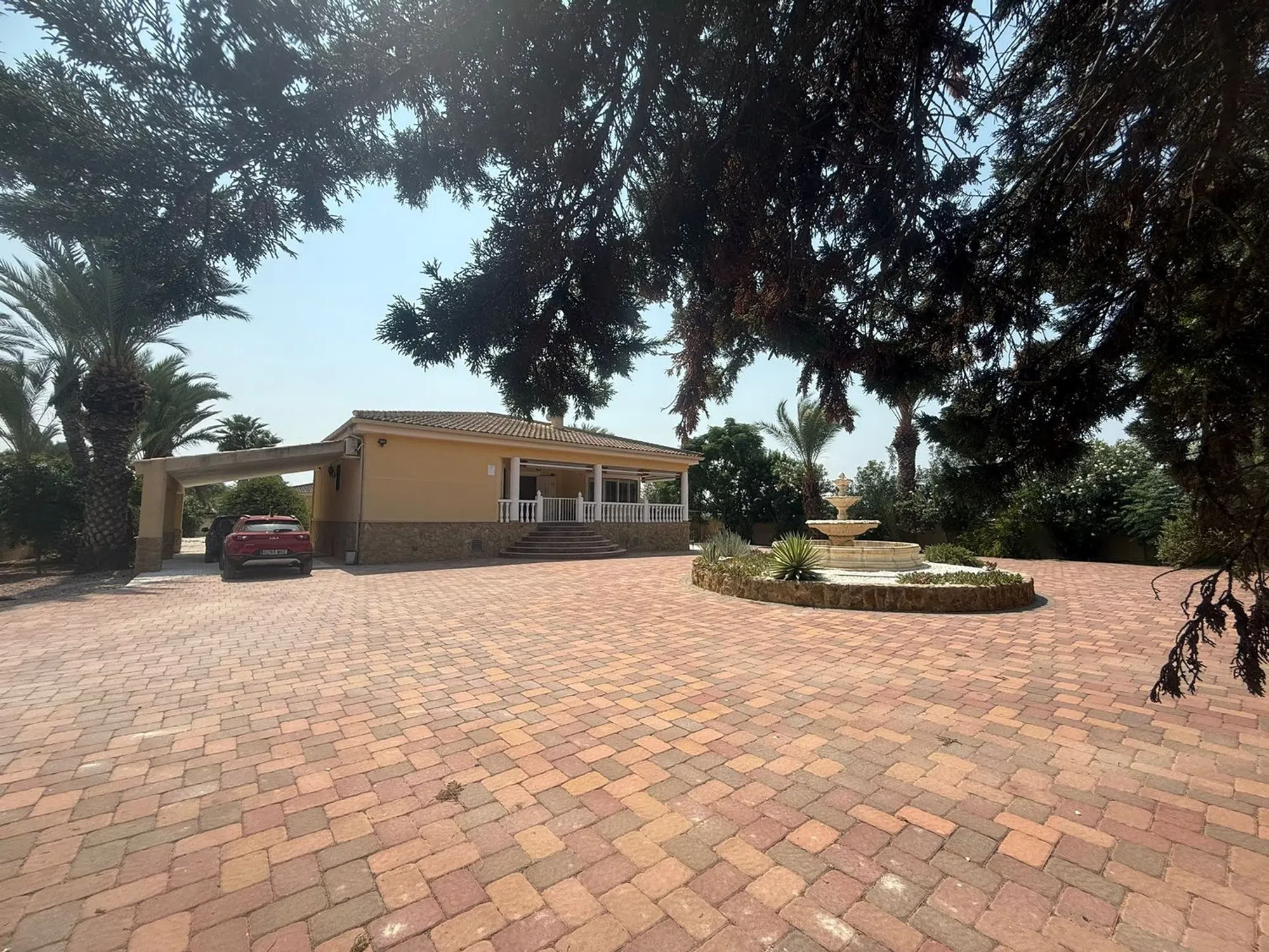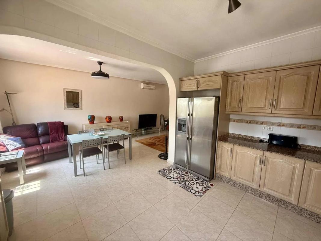 JL Morales Real Estate presenta esta preciosa vivienda situada en la zona rural de Catral, con magníficas vistas a la montaña de Callosa de Segura, a solo unos minutos del centro, con todos los servicios, bares, restaurantes, etc. Se accede a la parcela, completamente vallada, a través de la puerta de entrada automática, y se es recibido por una bonita entrada, totalmente alicatada para facilitar el mantenimiento, y una pequeña rotonda con fuente. A la izquierda de la vivienda hay una cochera construida. A través de la terraza elevada, ideal para disfrutar y cenar, se accede a la vivienda. A la izquierda del vestíbulo hay tres dormitorios, todos con armarios empotrados, y dos baños, uno de ellos en suite con ducha a ras de suelo y el otro con bañera. A la derecha de la entrada se encuentra el amplio salón con estufa, un comedor y la cocina abierta. Hay un pequeño lavadero con acceso a la parte trasera del jardín. Aquí también encontrará una gran terraza alicatada, con una barbacoa a un lado y una zona de descanso con toldo automático al otro. Podrá refrescarse en la piscina privada (10 x 5) con ducha exterior y magníficas vistas. El resto del jardín está cubierto de grava para facilitar el mantenimiento, hay varios palmeras y árboles frutales, una depuradora aprobada, un depósito de agua y, en la esquina trasera, una caseta para perros. La vivienda se vende amueblada, cuenta con aire acondicionado y ventiladores de techo en todas las habitaciones y mosquiteras en todas las ventanas. Ubicación muy tranquila con pocos vecinos, cerca del centro de Catral, a solo 15 minutos en coche de las hermosas playas de arena de La Marina y Guardamar y a 30 minutos del aeropuerto de Alicante.