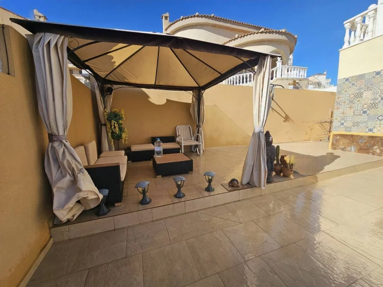 Het pand is voorzien van moderne gemakken, waaronder airconditioning en biedt een privézwembad, terras en een tuin. Er is parkeergelegenheid voor één auto op het terrein.