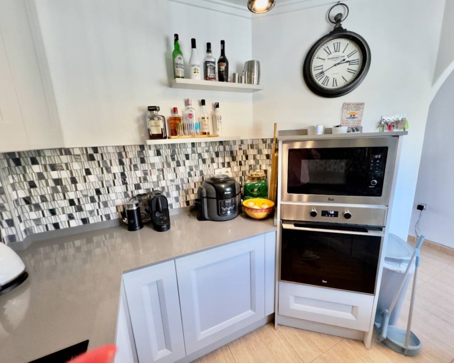 Esta excepcional villa, construida en 2006, se erige como un ejemplo de vida contemporánea, contando con 5 dormitorios y 3 baños. Con 98 m² de espacio habitable meticulosamente diseñado, la residencia se sitúa en un generoso terreno de 120 m². La entrada se realiza desde el nivel de la carretera, donde eres recibido por un luminoso y amplio salón/comedor a tu izquierda, acompañado de la primera de las dos cocinas totalmente equipadas. Este nivel también alberga dos dormitorios dobles, ambos con armarios empotrados, y un primer baño familiar. La orientación oeste baña los interiores con abundante luz natural, creando un ambiente acogedor, acentuado por puertas dobles que conducen a la terraza en la planta baja.