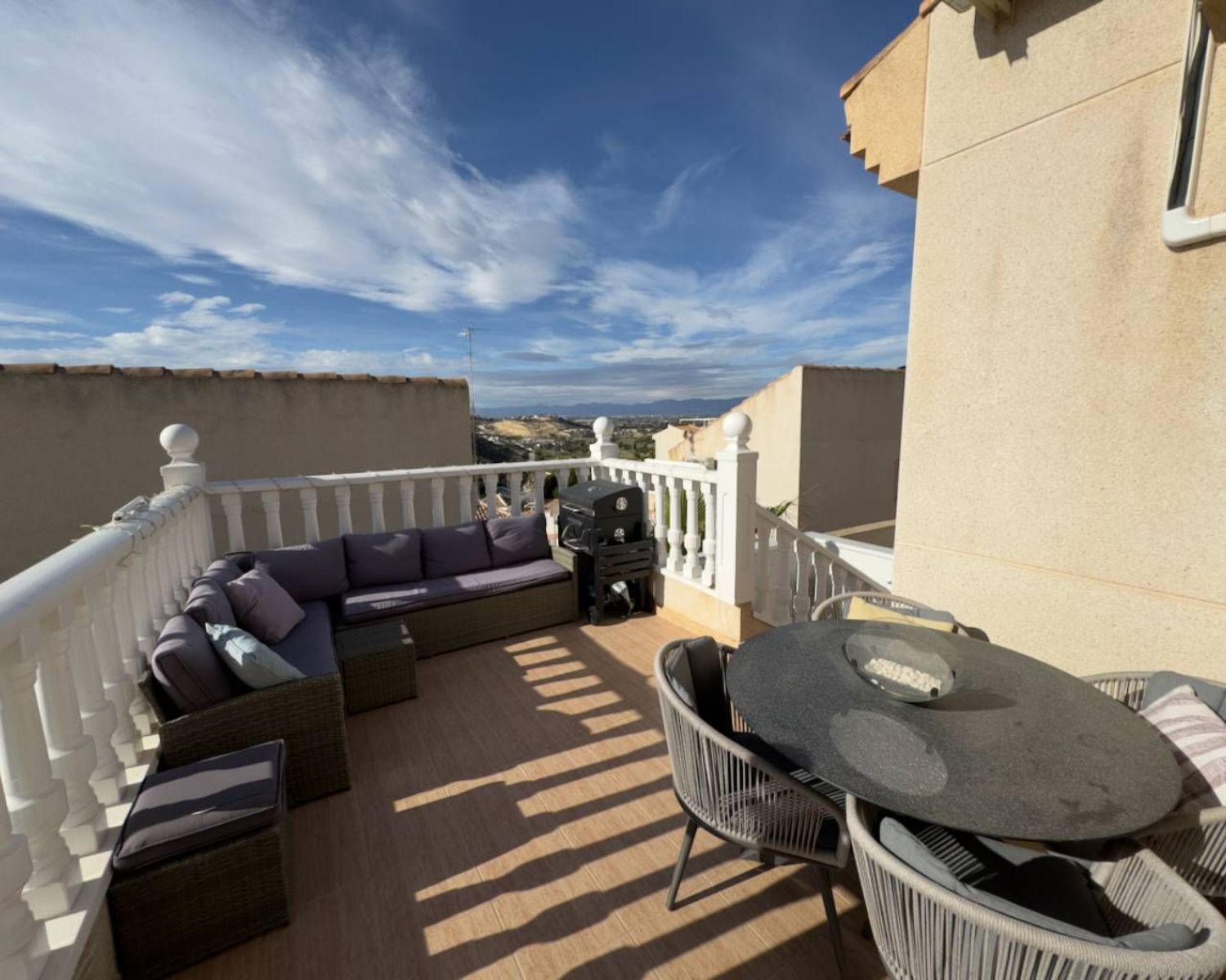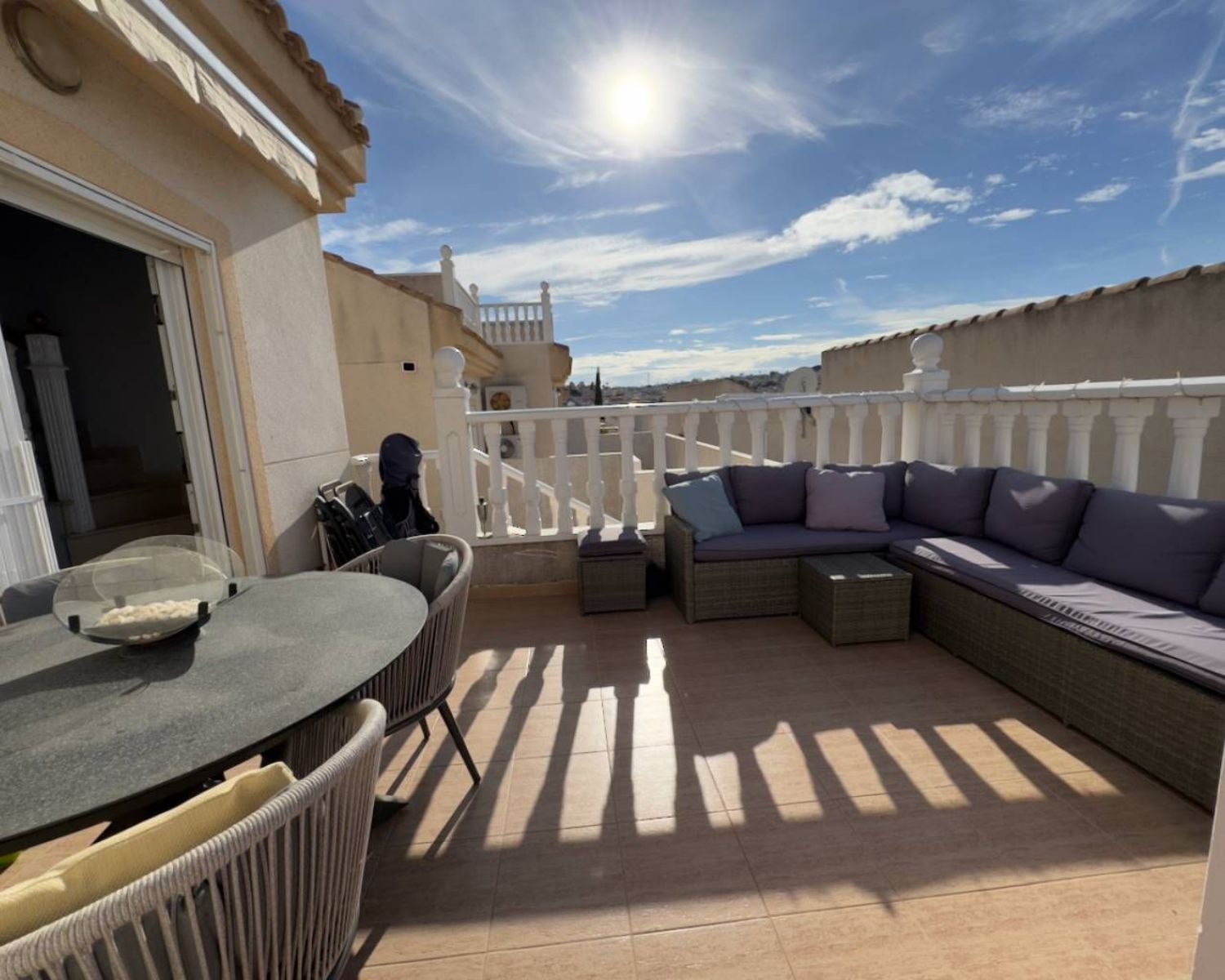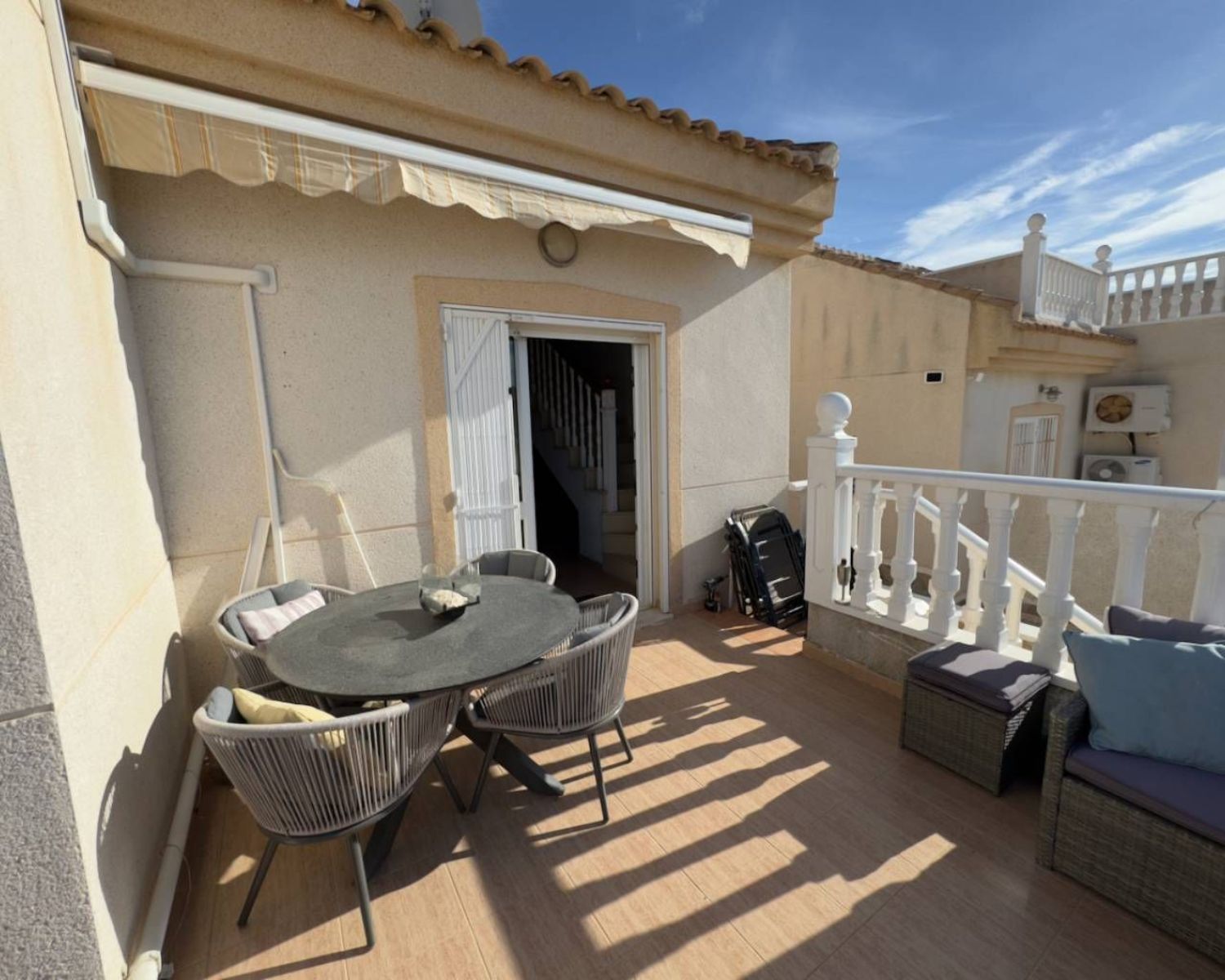 Es un placer presentar esta encantadora villa adosada de cinco dormitorios. Los propietarios actuales han realizado una renovación completa a esta villa original de estilo "Azahar", que anteriormente contaba con tres dormitorios. Se ha llevado a cabo una transformación integral del área de construcción para ofrecer un apartamento de dos dormitorios independiente, que añade un toque de versatilidad y modernidad a la propiedad.