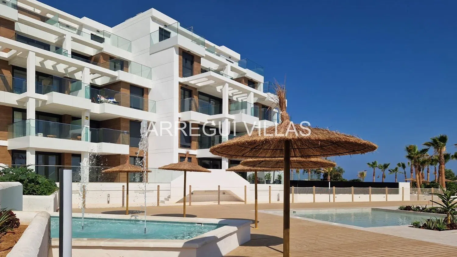 Residentieel complex van appartementen gelegen aan de kustlijn met directe toegang tot het strand. Bestaat uit drie blokken met in totaal 100 appartementen, allemaal met zeezicht, met prachtige gemeenschappelijke ruimtes met zwembaden en uitgestrekte tuinen.