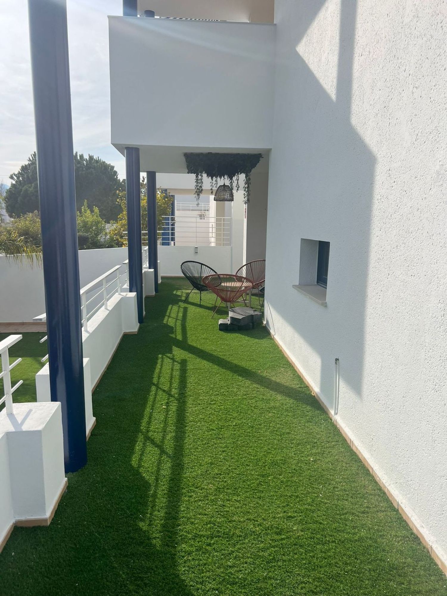 Gelegen in een complex met zwembad, bevindt het zich in een rustige omgeving, op slechts 75 meter van het strand, ideaal voor wie wil genieten van de zee en de natuur. De woning heeft een oppervlakte van 100 m² en is ingedeeld in een lichte woon-eetkamer, een aparte keuken met bijkeuken, twee slaapkamers en twee badkamers. Bovendien beschikt het over airconditioning warm/koud via units en ventilatoren in de woonkamer en slaapkamers, wat het hele jaar door maximaal comfort garandeert.
