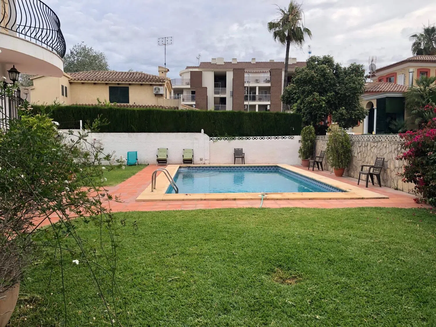 Het onroerend goed, met een bebouwde oppervlakte van 250 m², is verdeeld over twee onafhankelijke verdiepingen en beschikt over een ruime woonkamer, een functionele keuken, vijf slaapkamers en drie badkamers. Dit alles bevindt zich op een perceel van 600 m², waar je kunt genieten van een prachtige tuin met een privé zwembad, perfect om te ontspannen en af te koelen op zonnige dagen.