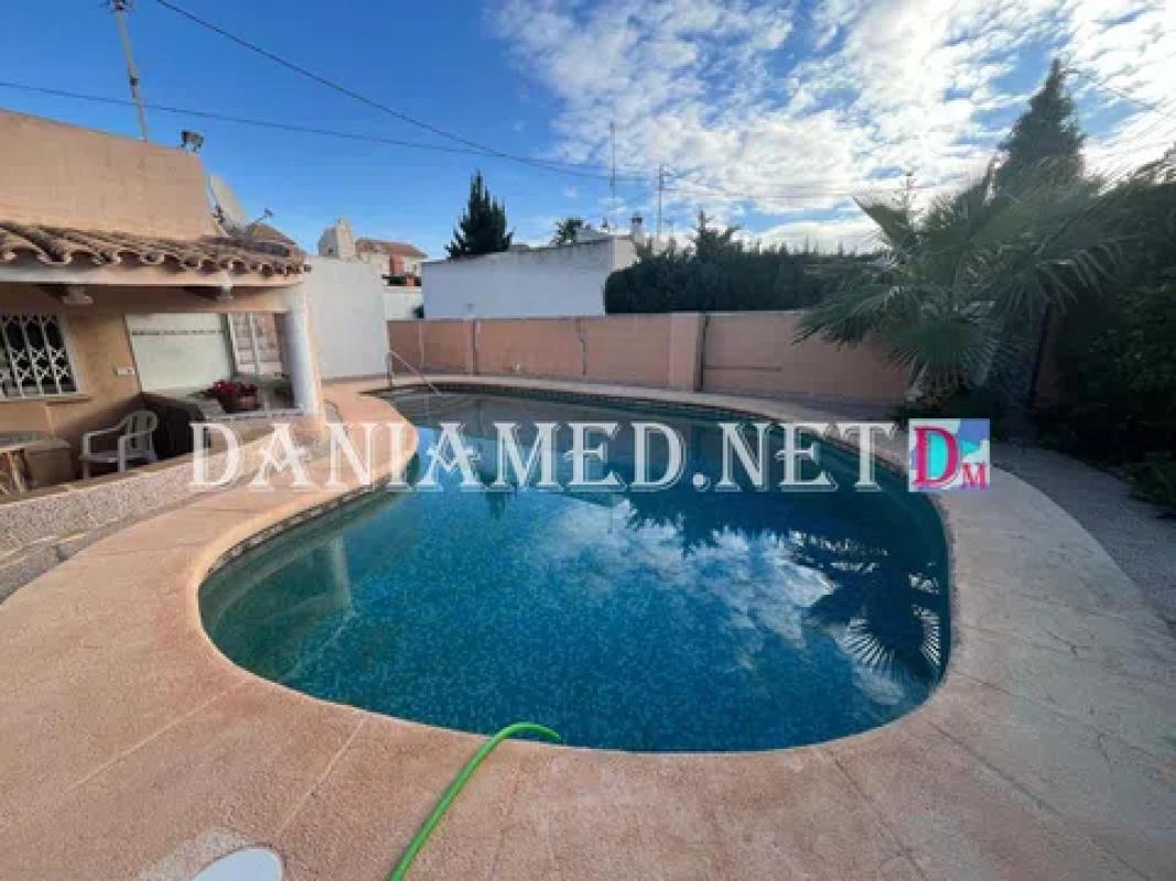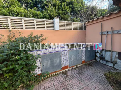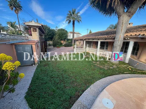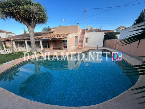 Precioso Chalet solo una planta en Denia! con parcela privada de 635m2, con zonas de jardín, una amplia piscina privada, parking para varios coches, zona de bbcoa / cocina de verano, y aseo exterior. La vivienda cuenta con un total de 172m2 construidos, en una Sola planta, con una terraza abierta con cocina de verano, una super terraza acristalada que da paso a un salón-comedor con chimenea, aire acondicionado, y una cocina abierta equipada. Tiene un total de 4 dormitorios amplios con armarios empotrados y 2 baños completos con ducha. La vivienda cuenta con calefacción central y aire acondicionado. Se encuentra a tan solo 350m de la playa, y a 4km de Denia centro! No se lo pierda, una gran zona con poco trafico! .