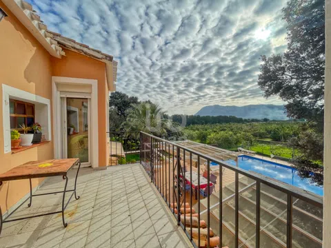 ¿Está buscando una casa espaciosa y luminosa, con un terreno amplio y plano, ubicada en una excelente zona tranquila, cerca del mar y del centro de la ciudad con todos los servicios? ¡Felicidades! Con esta propiedad, acaba de encontrar la casa de sus sueños. Características principales: Casa construida en el año 1985 Terreno plano de 7.565 m² con árboles, principalmente naranjos Superficie construida: 370 m² 5 habitaciones, incluida una suite con bañera 2 baños completos 3 niveles (planta baja, primer y segundo piso) Chimenea Barbacoa Piscina privada Calefacción central Idealmente ubicada a solo 500 metros de la playa de arena fina y a 3 km del centro de Dénia, esta propiedad combina a la perfección tranquilidad y accesibilidad. En las cercanías de todos los comercios, es un ejemplo típico de una casa tradicional española, ofreciendo un estilo de vida auténtico y acogedor. Construida en 1985, esta amplia casa distribuida en tres niveles se encuentra en un terreno plano de 7.565 m², rodeado de hermosos naranjos. Un interior espacioso y funcional La casa dispone de: 2 grandes salones, uno de ellos con chimenea, ideales para momentos de convivencia. 2 cocinas, prácticas y luminosas. 5 habitaciones, incluida una suite principal con baño privado (bañera y doble lavabo). 2 baños completos adicionales. El diseño está pensado para combinar funcionalidad y comodidad, con calefacción central que garantiza una temperatura agradable durante todo el año. Planta baja Al entrar, un amplio hall le da la bienvenida. A la derecha, una habitación luminosa y acogedora. En el centro, una elegante escalera conduce a el piso superior. A la izquierda, un amplio salón bañado por luz natural, conectado a una cocina abierta, moderna y funcional. También cuenta con zonas auxiliares como lavandería y despensa. Un baño completo en este nivel, equipado con ducha, lavabo y WC. Desde el salón, se accede a una gran terraza soleada, con una vista espectacular de la piscina y el imponente Montgó. Para momentos de descanso bajo la sombra, una segunda terraza cubierta es ideal para comidas al aire libre. Primer piso La escalera central conduce al primer piso, donde encontrará: Un gran salón con chimenea, que da acceso a una terraza agradable. Una cocina separada y luminosa, también con una terraza con vistas al Montgó. Tres amplias habitaciones, incluida una suite principal con baño privado (bañera, doble lavabo y WC). Un baño completo adicional (ducha, lavabo y WC). Segundo piso Desde el salón, una escalera helicoidal conduce a la quinta habitación, ubicada en el segundo piso. Esta luminosa estancia es ideal como habitación, oficina o espacio polivalente, según sus necesidades. Un exterior excepcional El exterior de la propiedad es igualmente impresionante: Una gran piscina privada, rodeada de una espaciosa terraza soleada, perfecta para disfrutar de los días mediterráneos. Un terreno plano de más de 7.000 m², principalmente compuesto por hermosos naranjos y otros árboles. Un pozo con bomba, que garantiza un riego fácil y económico para el mantenimiento del jardín. Una oportunidad única que no puede dejar pasar Esta casa en excelente estado de conservación es perfecta para una familia que busca un entorno tranquilo, o como residencia secundaria cerca del mar. Disfrute de la proximidad a la playa, la naturaleza y todos los servicios en una de las regiones más deseadas de la Costa Blanca. Ubicación: A 500 metros de la playa de arena fina. A 3 km del centro de Dénia. A 2,5 km del Instituto de Educación Secundaria IES María Ibars. A 4 km del puerto de ferris de Dénia, con conexiones a Formentera, Ibiza y Mallorca. A 5 km del Club Náutico de Dénia. A 9,5 km del campo de golf La Sella. A 10 km del centro comercial Portal de la Marina. A 1 hora en coche de los aeropuertos de Alicante y Valencia. Dénia, una ciudad con encanto mediterráneo: Con más de 30.