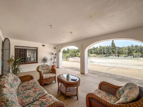 Fantástica finca de siete dormitorios y tres baños construida sobre una parcela llana de 10.000 m2, con calefacción central de gasoil, garaje y piscina privada. Situada en muy buena ubicación entre La Xara y La Sella, cerca de todos los servicios y de las populares playas de Denia. Accedemos a través de una puerta a un camino privado que conduce a una bonita terraza cubierta con vistas a la piscina, justo antes de llegar a la puerta principal. En este nivel, hay un luminoso salón con chimenea y un comedor junto a una cocina independiente y totalmente equipada con una gran despensa adyacente y salida a la terraza. En este nivel también hay un dormitorio y un baño. Subiendo una escalera interior, llegamos al siguiente nivel donde hay seis amplios dormitorios y un cuarto de baño familiar con lavabo doble y bañera. El dormitorio principal es en suite y tiene una gran terraza con vistas al campo y las montañas. Esta maravillosa propiedad tiene una gran parcela de tierra con diferentes árboles frutales, un lugar para los animales, un garaje / taller, y una hermosa piscina. Está completamente vallada, por lo que la privacidad y la tranquilidad están aseguradas. Esta propiedad es perfecta tanto como casa familiar o como Hotel Rural, en todo caso para aquellos que aman la naturaleza pero todavía quiere estar cerca de las comodidades. El campo de golf y el Hotel Marriott están a sólo 5 minutos en coche. La playa más cercana está a 10 minutos en coche. El centro comercial Portal de La Marina y el acceso a la autopista también están a 5 minutos en coche.