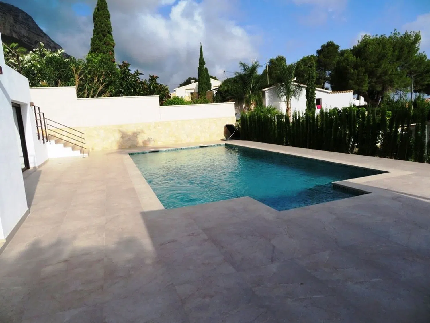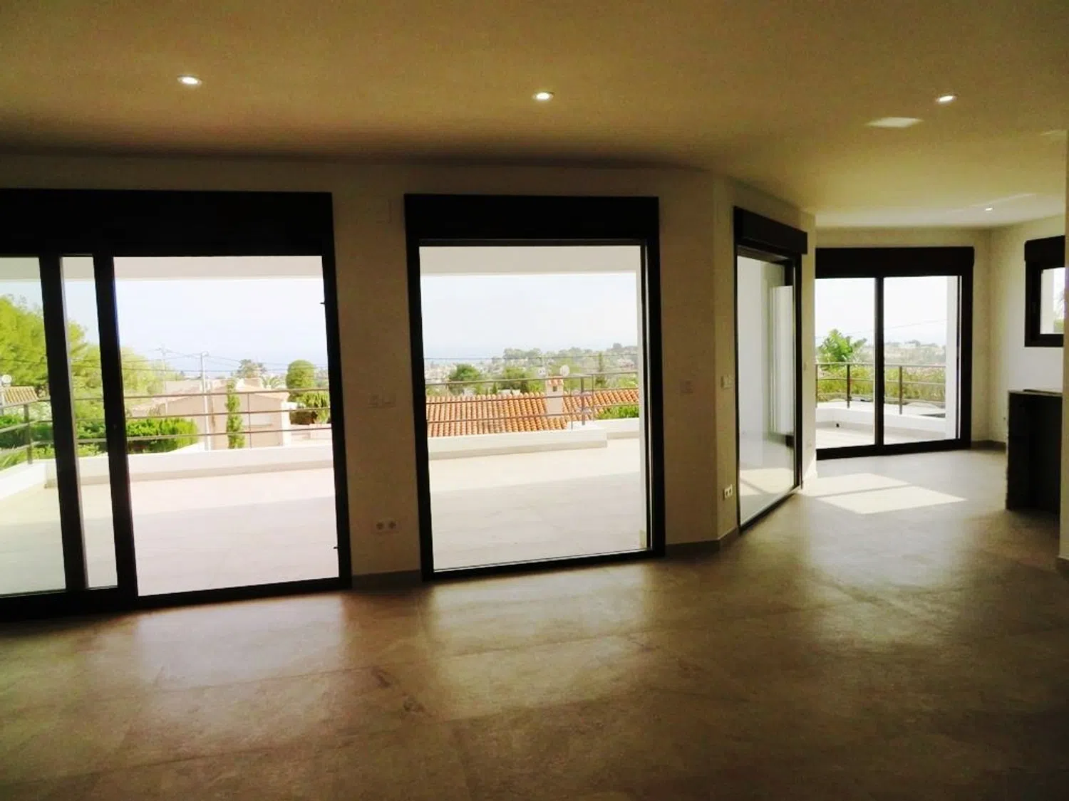 Villa van luxe met indrukwekkend uitzicht op zee en de Montgó, klaar om te betrekken. De villa van 370 m² heeft veel natuurlijk licht en biedt een ruime woonkamer met toegang tot een grote veranda en terras, een keuken van hoge kwaliteit, vier slaapkamers allemaal met en-suite badkamers, een gastentoilet, wasruimte, opslagruimte en een ruime garage.