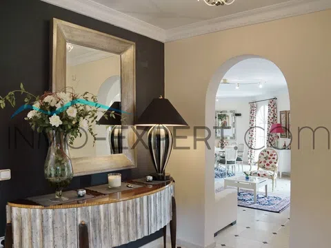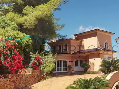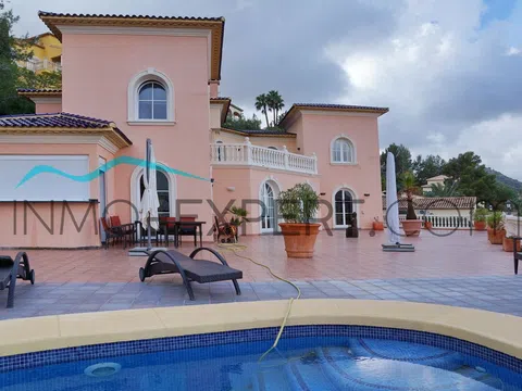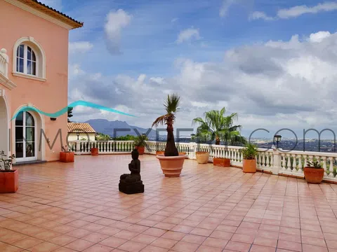 Mansión de alto standing en una de las zonas residenciales más valoradas de la Costa Blanca: La Sella Golf Resort, una urbanización privada situada entre Dénia y Jávea. Construida y diseñada por un constructor y diseñador europeo con más de 40 años de experiencia, la casa está terminada con materiales de primera calidad de distinguidas fábricas y casas de diseño de Alemania, Francia, Bélgica y España. Espacios abiertos y gran luminosidad, son dos de las principales características de esta casa. Cuenta con dos salones equipados con chimenea: uno principal con espectaculares vistas panorámicas al valle, las montañas y la costa y con conexión a un despacho; y un segundo salón más pequeño que transmite una mayor sensación de privacidad. La mansión posee un total de 5 dormitorios, 3 de ellos con su cuarto de baño privado y 2 con un gran cuarto de baño compartido. Todas las puertas son de seguridad, con doble revestimiento de hierro. Las ventanas, de fabricación alemana, también son de seguridad. Piso de mármol con suelo radiante, aire acondicionado, satélite, internet, líneas de teléfono, etc. Además, toda la casa (incluidas las terrazas) está equipada con un hilo musical. En el exterior encontramos dos amplias terrazas, una piscina y una cocina completamente equipada para realizar barbacoas y comidas al aire libre, garaje y parking. En el semisótano, de 120 metros, existe la posibilidad de construir o 4 habitaciones, o una sala de gimnasio con piscina climatizada y sauna, o una sala de cine, etc. (a elección del comprador). A solo 5 minutos en coche de Denia, la urbanización cuenta con seguridad privada las 24 horas. Dispone de pistas de tenis, un centro de hípica, varios restaurantes y un campo de golf. Además, a un par de kilómetros, se encuentra el famoso hotel Marriot (con servicio de Spa), el centro comercial Marina Alta y el hospital comarcal. Con una antigüedad de poco más de una década, pero con un aspecto impecable, este es el hogar perfecto para las personas que aprecian la privacidad, la seguridad y la calidad bajo el cálido sol de la Costa Blanca.