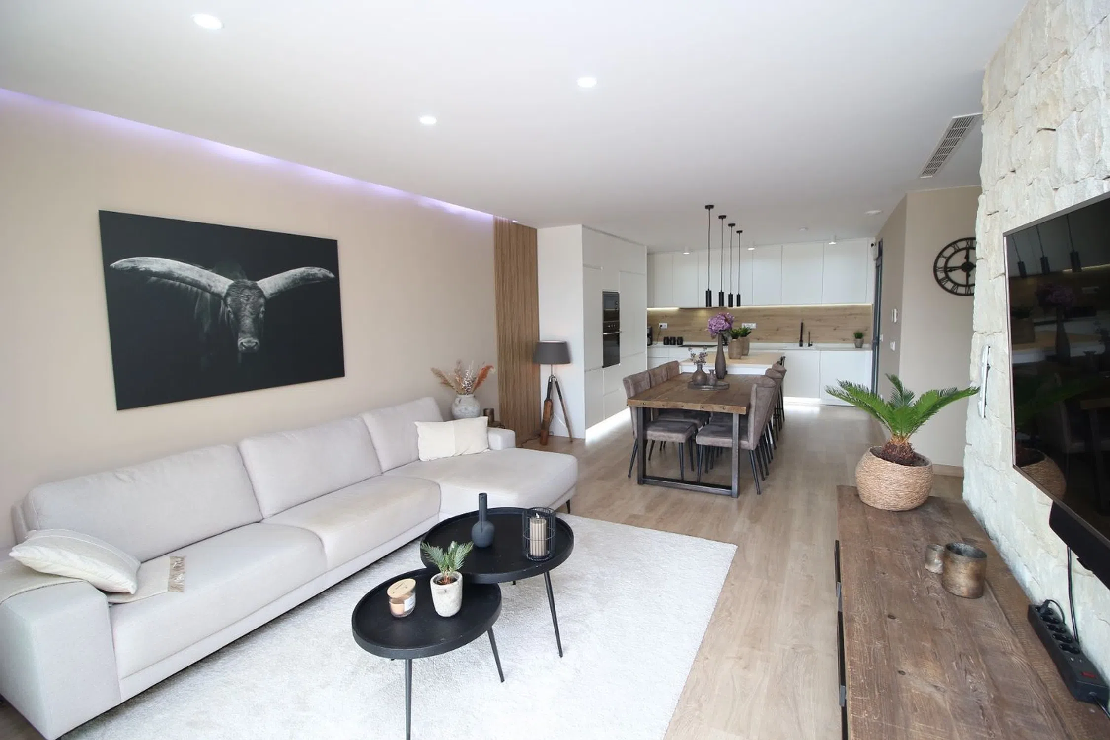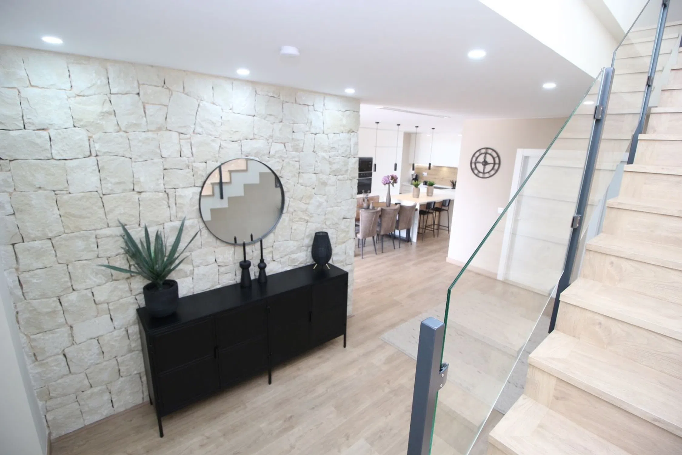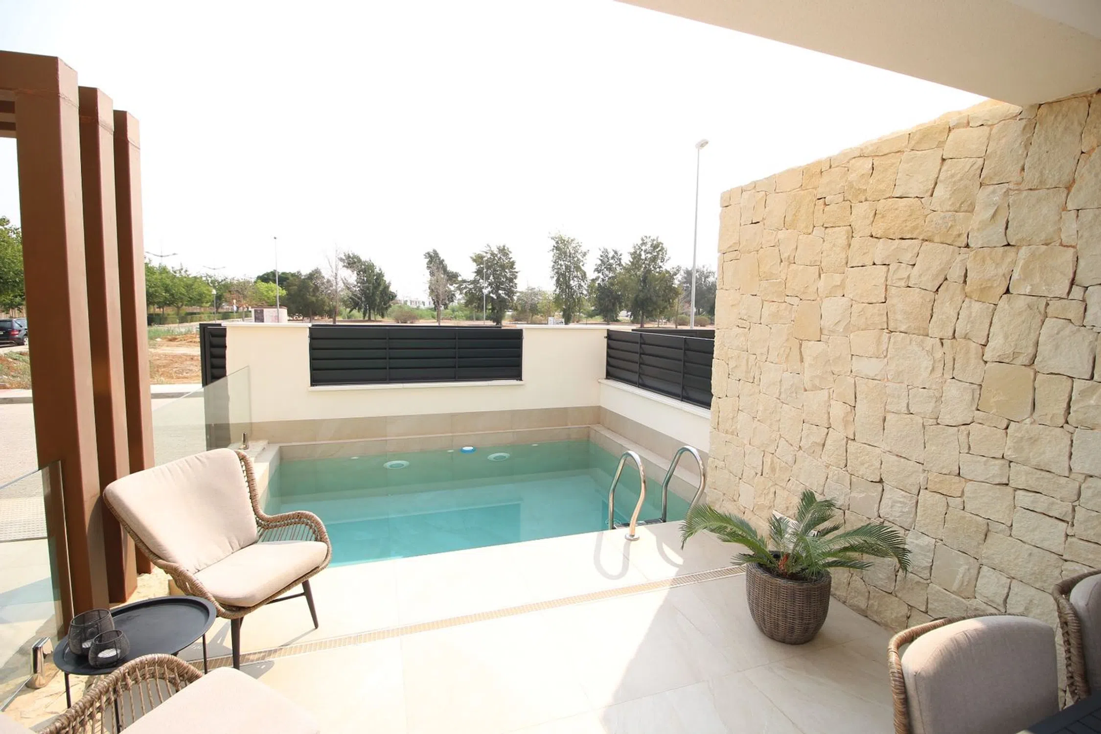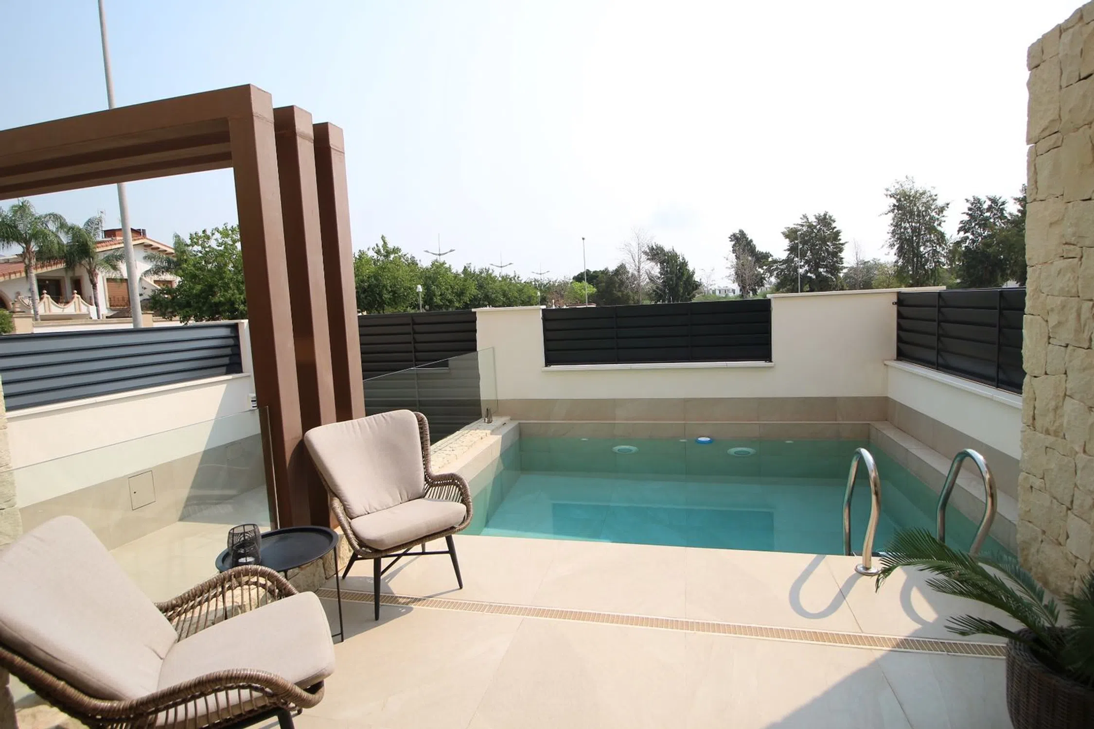 Esta elegante villa combina la comodidad moderna con el estilo de vida mediterráneo, ofreciendo interiores luminosos y excelentes espacios al aire libre. En la planta baja se encuentra un amplio vestíbulo que conduce a un gran salón-comedor con puertas panorámicas que se abren directamente a la piscina y a la terraza. También hay una cocina moderna, patio, lavadero y un baño, todo diseñado con practicidad y estilo. La planta superior dispone de tres dormitorios y dos baños. La suite principal incluye un vestidor, baño privado en suite y acceso a un balcón. Los otros dos dormitorios cuentan con armarios empotrados y comparten un baño. Desde esta planta también se accede directamente al gran solárium privado, perfecto para relajarse o recibir invitados. Entre los extras se incluyen paneles solares, descalcificador de agua, sistema de agua potable y dos aparatos de aire acondicionado por conductos con función frío/calor. En el exterior destaca la piscina privada con su terraza soleada, ideal para disfrutar del clima mediterráneo en total privacidad. Esta casa lo tiene todo para ser una residencia permanente cómoda o un refugio vacacional ideal en la encantadora zona de Dolores.