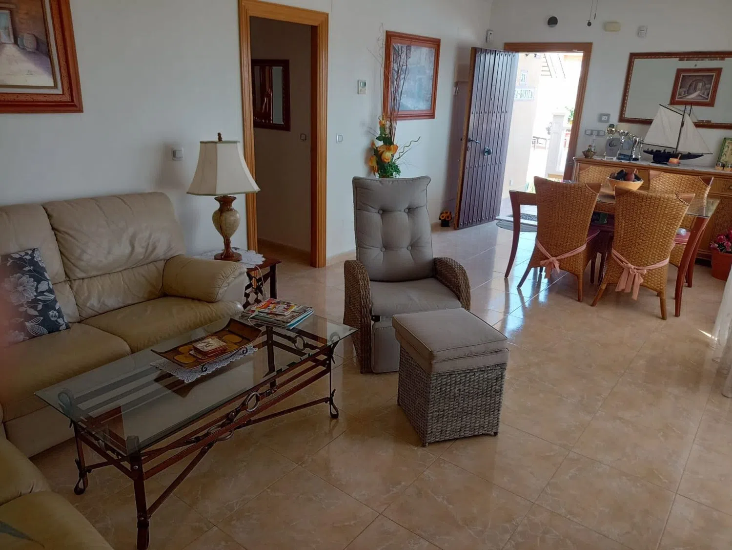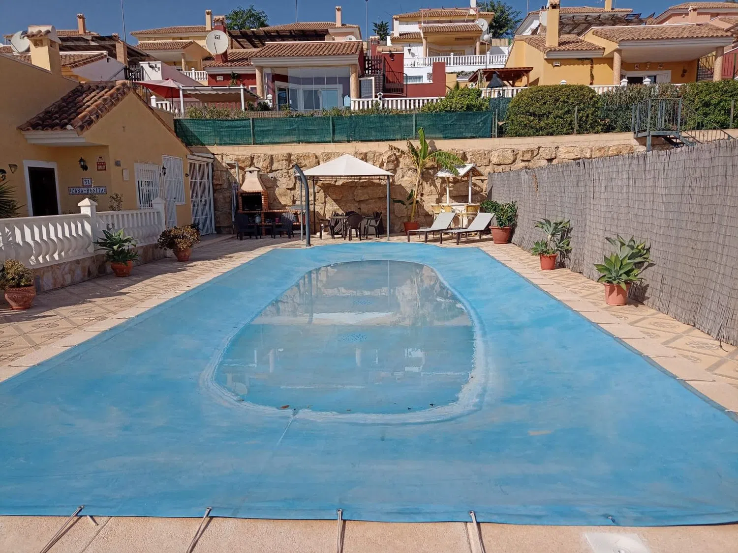 Onder de extra kenmerken biedt het pand een privé-zwembad, een solarium, een opslagruimte en een barbecue, evenals airconditioning met cold/heat kanalen. Er zijn ook ramen met hoge efficiëntie, horren, veiligheidsluiken en een alarmsysteem inbegrepen. Op de begane grond bevindt zich de woon-/eetkamer, de keuken, de drie slaapkamers, de twee badkamers en de terras die toegang biedt tot het zwembad- en barbecuegebied. Boven is er een privé-solarium, dat ook toegang biedt tot een kleine tuin met fruitbomen.