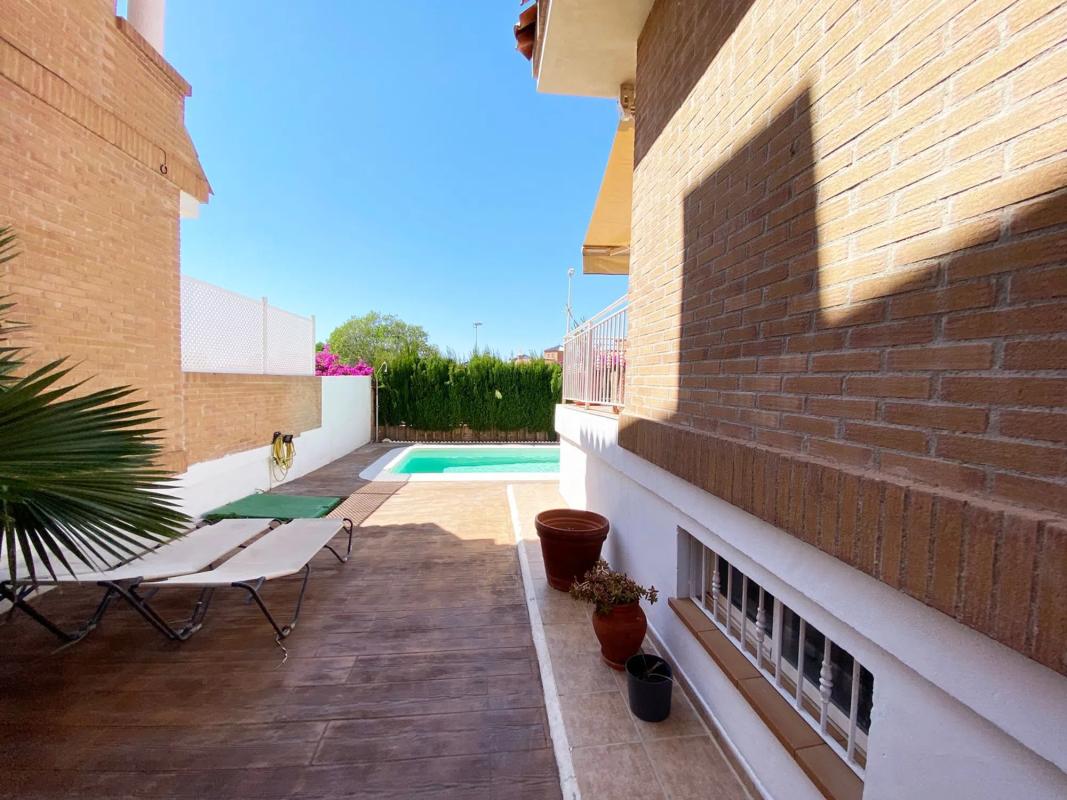 Presentamos un maravilloso chalet con piscina ideal para disfrutar del buen clima durante todo el año. Una vivienda completamente exterior que cuenta con espacios amplios y está llena de lu...