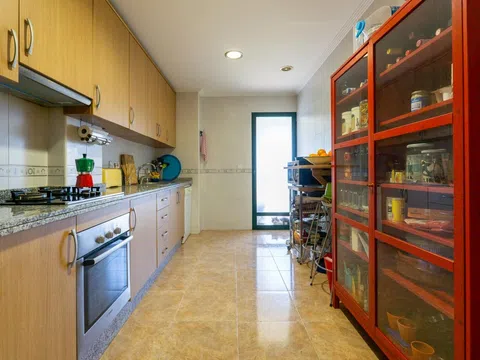 De indeling is uitstekend, met drie ruime, tweepersoons slaapkamers die allemaal van buitenaf zichtbaar zijn. Bovendien beschikt de hoofdslaapkamer over een ruime en-suite badkamer, volledig uitgerust met een douche. De woonkamer-eetkamer is een goed ingedeelde ruimte met grote ramen rondom, die overvloedig natuurlijk licht bieden. De keuken is momenteel onafhankelijk, ingericht en uitgerust met apparatuur, en heeft directe toegang tot de galerij. De keuken en de woonkamer worden gescheiden door een muur die kan worden verwijderd om een grote open ruimte te creëren.