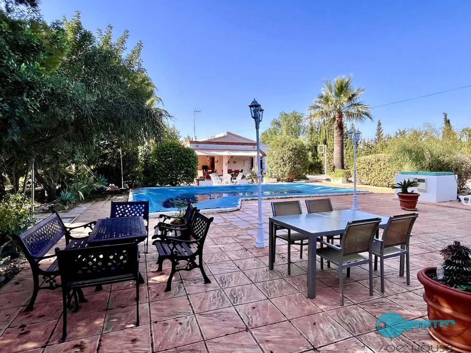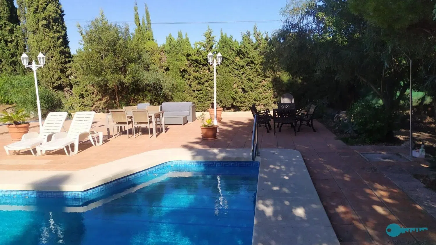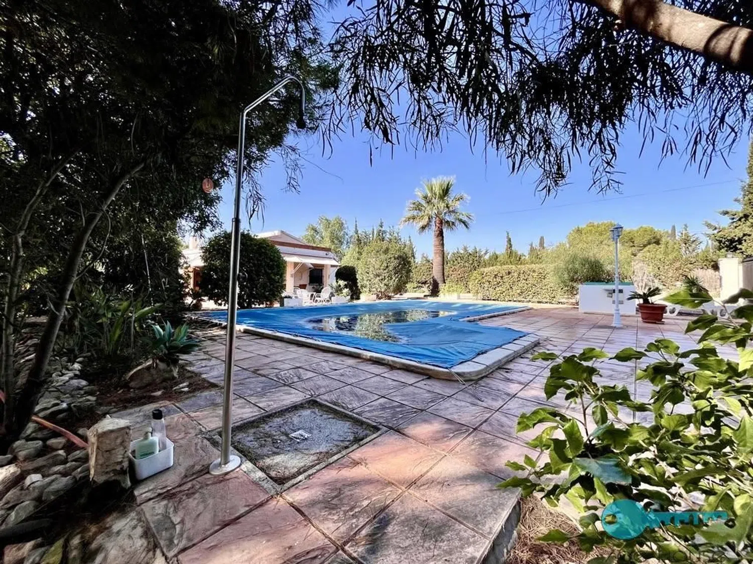 Het privézwembad van ongeveer 40 m² is verlicht met schijnwerpers die de omgeving 's avonds verfraaien, waardoor er op elk moment plezier gemaakt kan worden. De woning beschikt over een omheind terrein dat geschikt is voor drink- en irrigatiewater, evenals een kleine boomgaard met typische regionale fruitbomen.