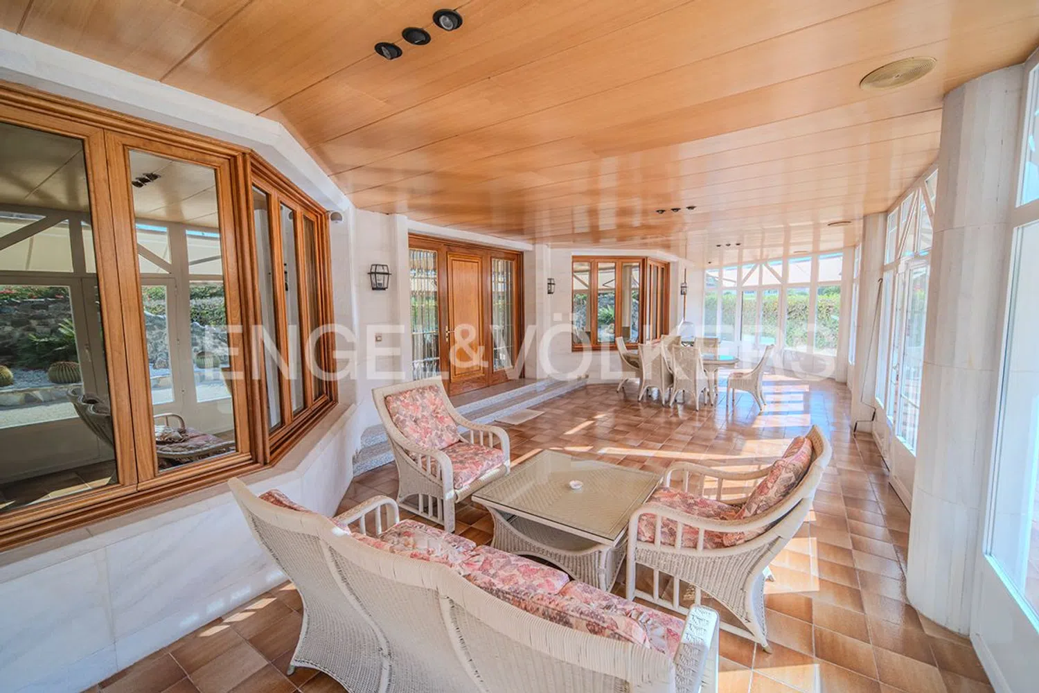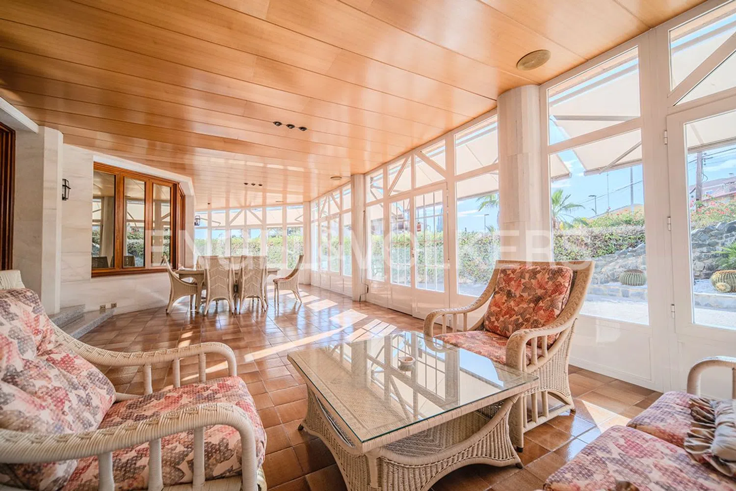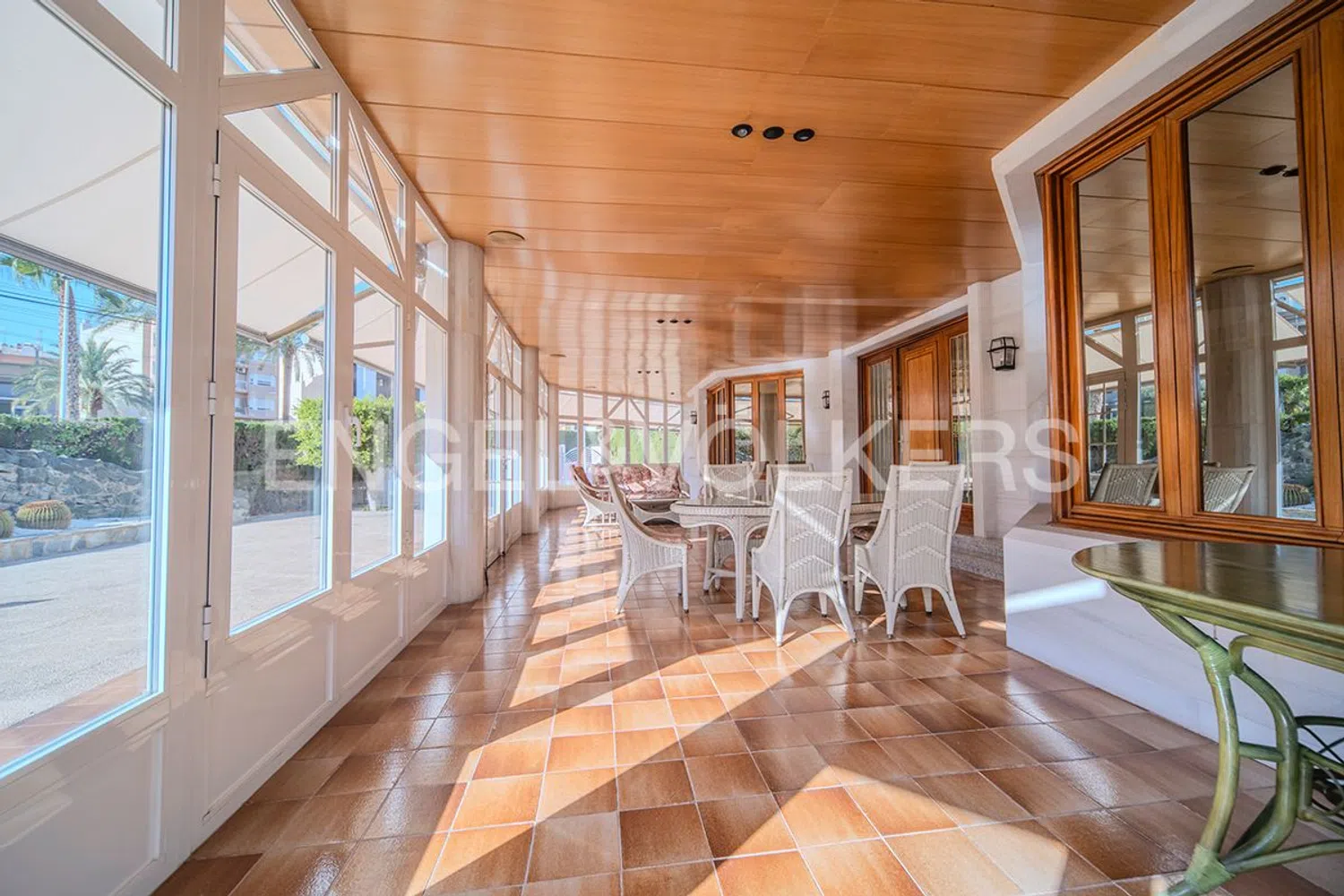 Een prachtige terras of veranda siert de voorgevel, die dankzij de grote ramen, een lichte en aangename ruimte biedt gedurende het hele jaar, zowel in de zomer als in de winter. Het perceel dat deze indrukwekkende woning herbergt, strekt zich uit tot duizend vierkante meter, en omvat een privézwembad en een buitenparkeerplaats met capaciteit voor drie voertuigen.