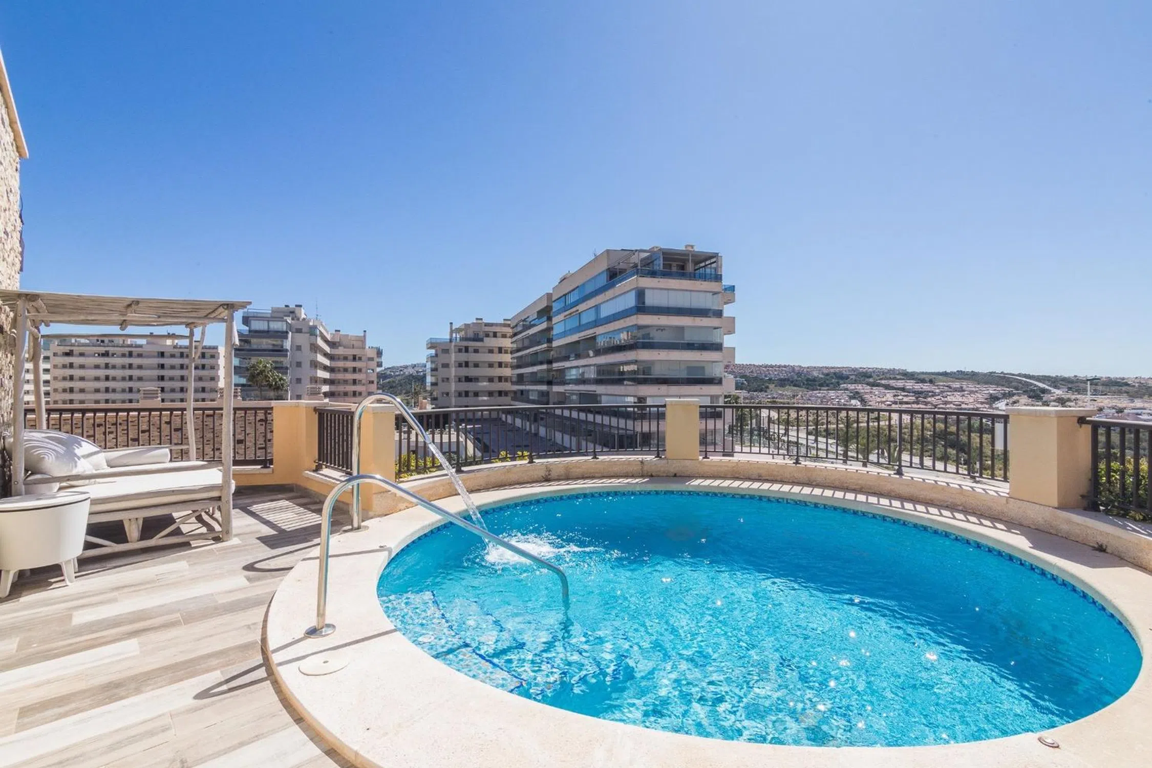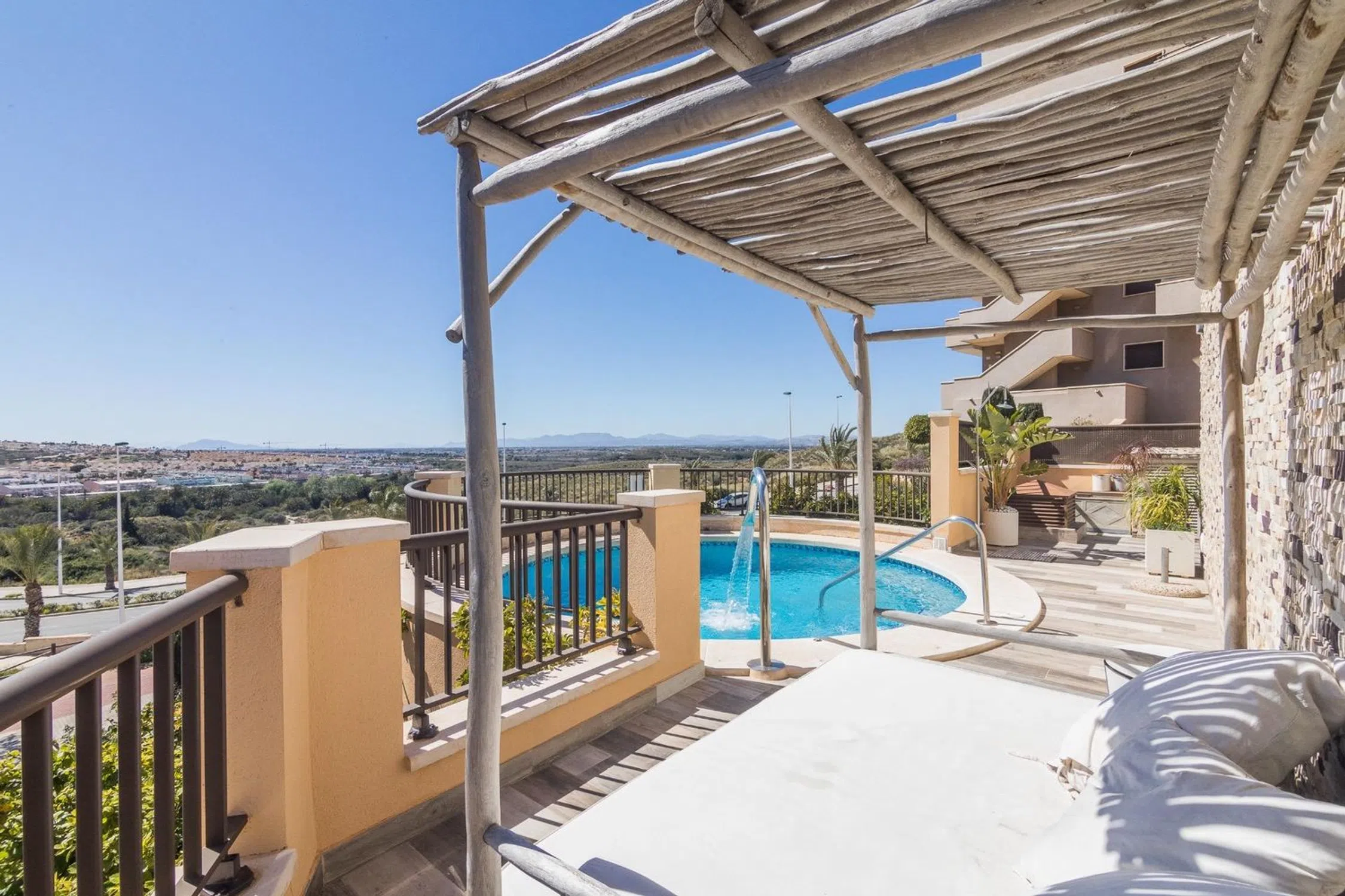 Esta joya te espera en Los Arenales del Sol, una ubicación que combina la tranquilidad de la playa con la comodidad de estar cerca de todo. Aquí tienes más detalles para enamorarte aún más: Pareado de esquina se destaca por su diseño elegante y moderno. La fachada, con líneas limpias y detalles en piedra, crea una primera impresión inolvidable. La amplia terraza con piscina privada es el lugar perfecto para relajarte y disfrutar de las vistas panorámicas. Imagina las tardes de verano sumergido en la piscina mientras el sol se pone en el horizonte. El salón-comedor, con grandes ventanales que permiten la entrada de luz natural, es ideal para reuniones familiares o cenas íntimas. La cocina independiente, equipada con electrodomésticos de alta gama, es un sueño para los amantes de la gastronomía. •Los tres amplios dormitorios ofrecen espacio más que suficiente para toda la familia. El dormitorio principal, con baño en suite, es un oasis de tranquilidad. Extras que marcan la diferencia, además de las dos plazas de garaje, el residencial cuenta con piscinas, zonas de ocio y pistas deportivas. No pierdas la oportunidad de vivir en esta exclusiva propiedad. VISITA VIRUTAL Para más información, por favor, ponte en contacto con ¿Quieres más detalles? Agente responsable Marina Abril Oficina � Nos encontrarás en �Calle Velarde 1, Elche (Alicante). Síguenos en Instagram.