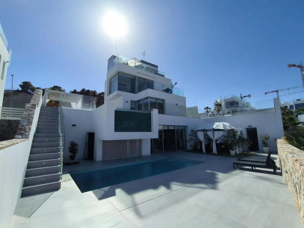 Deze indrukwekkende eigentijdse villa aan de Costa Blanca beschikt over 3 stijlvolle slaapkamers en 3 badkamers, waarvan er 2 en suite zijn. Alle ruimtes zijn voorzien van vloerverwarming, w...